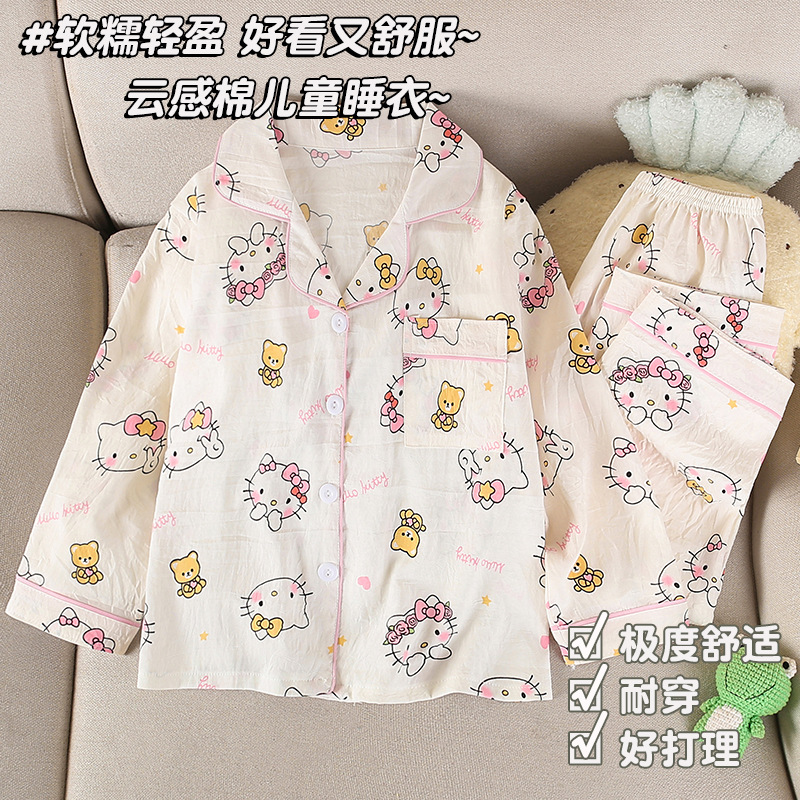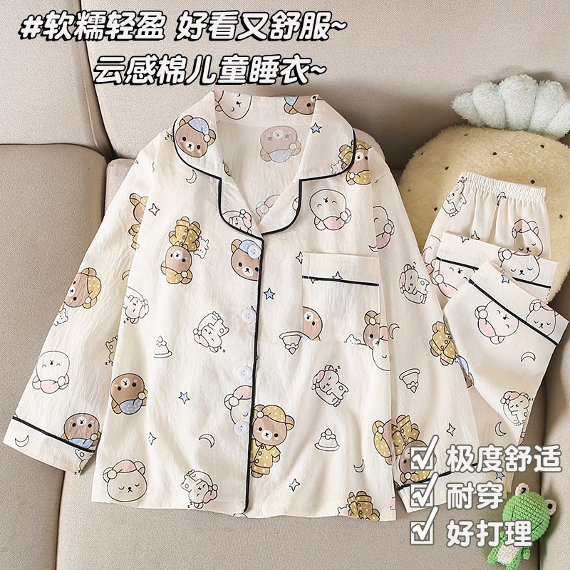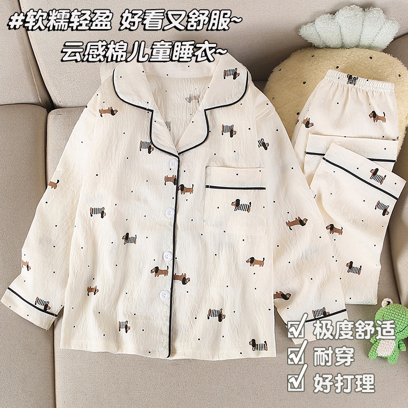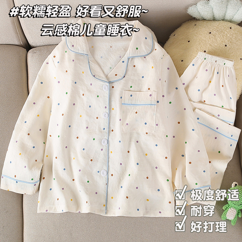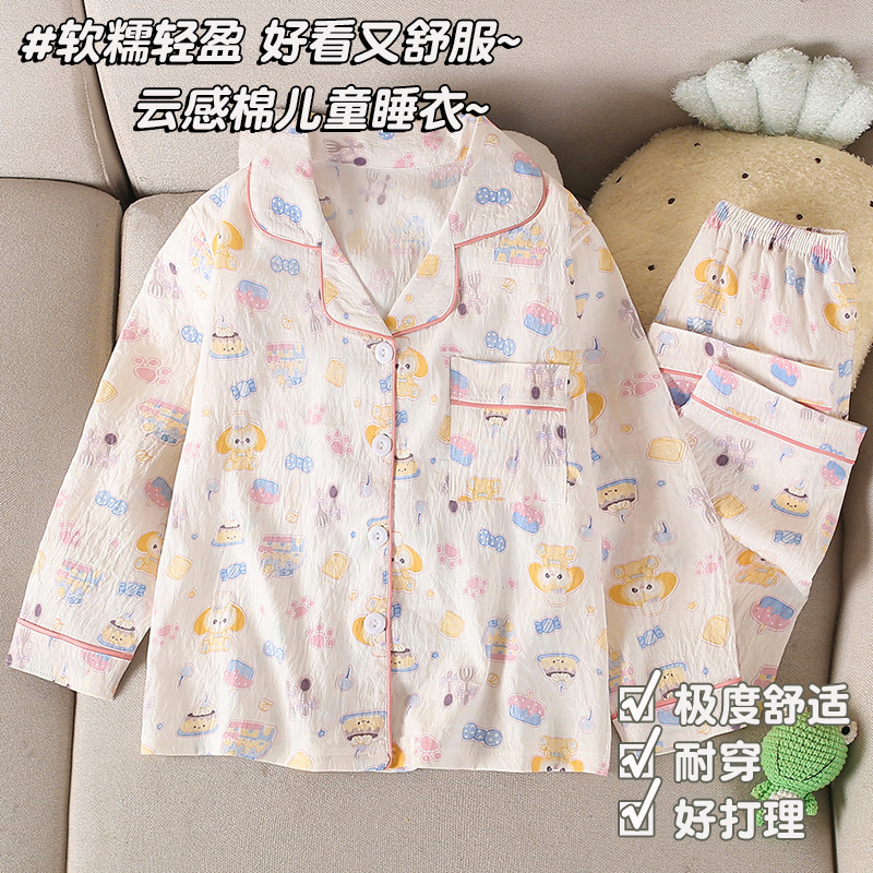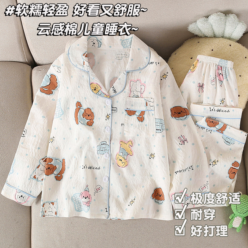 어린이용 구름무늬 면 잠옷, 여아용 봄 여름 긴팔 공주풍 여아복, 2025년 신상 가을 스타일 홈웨어, 외출복스토어 가기