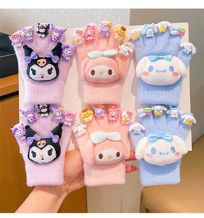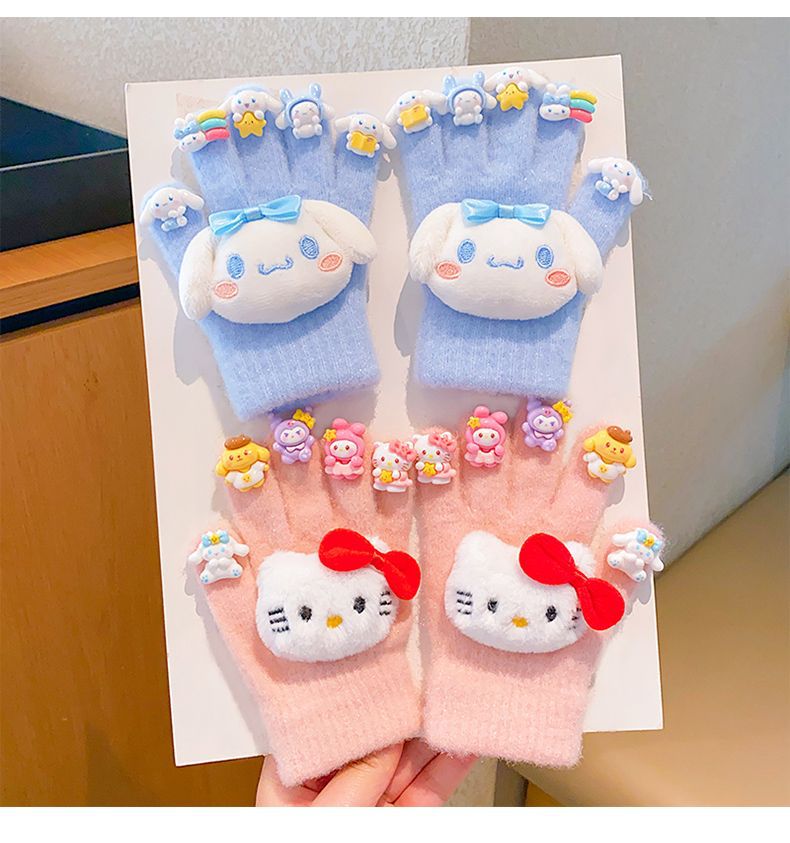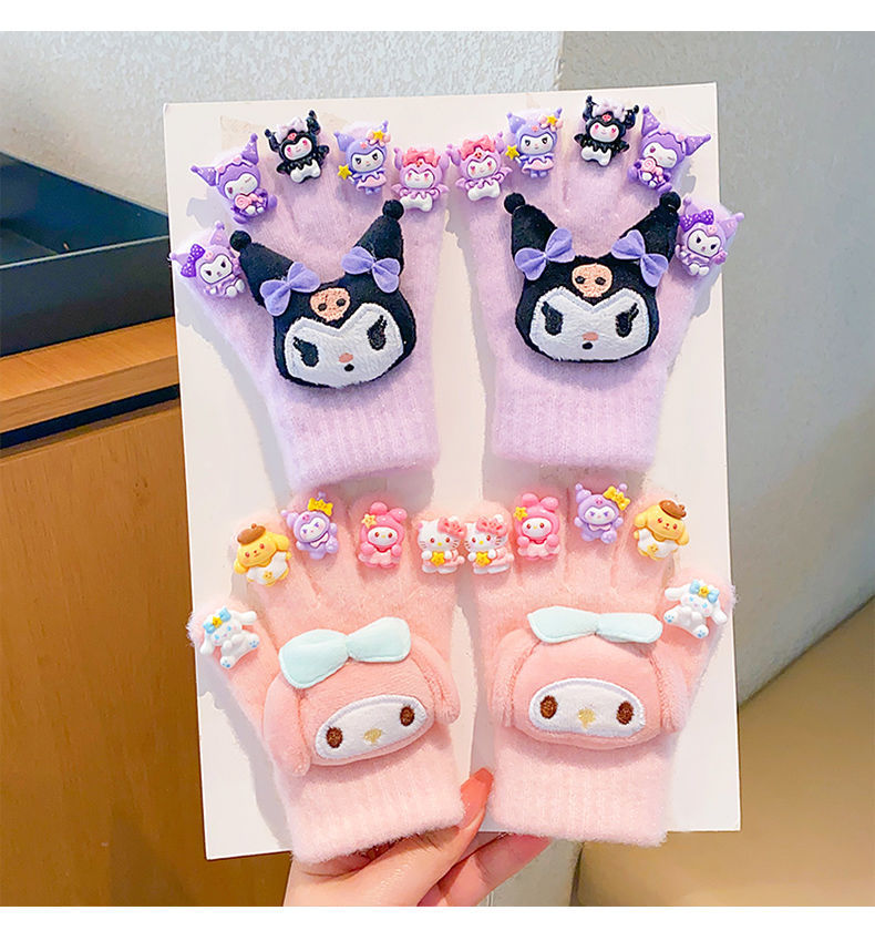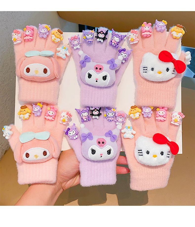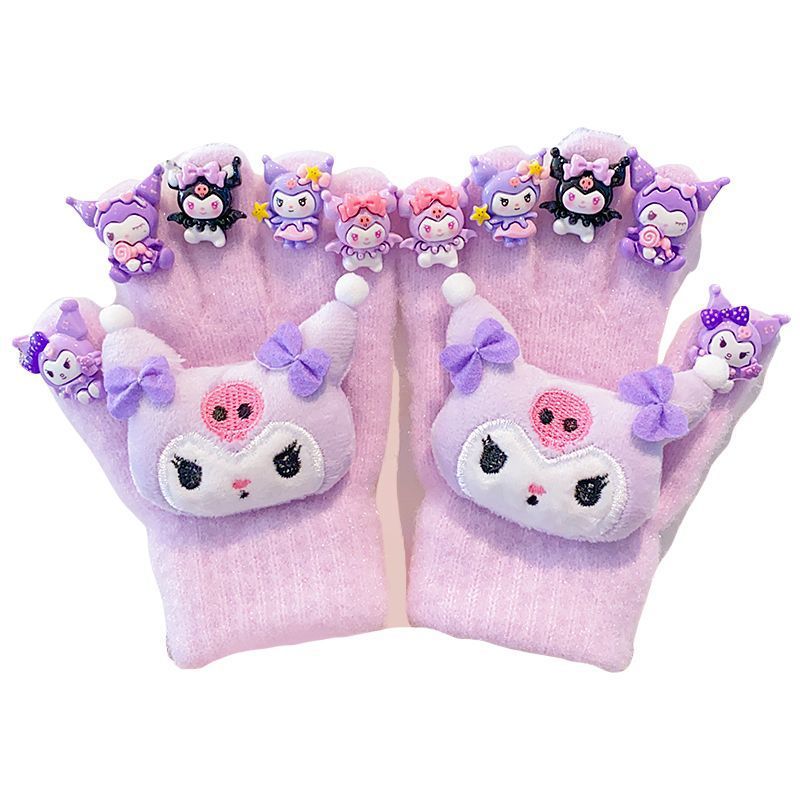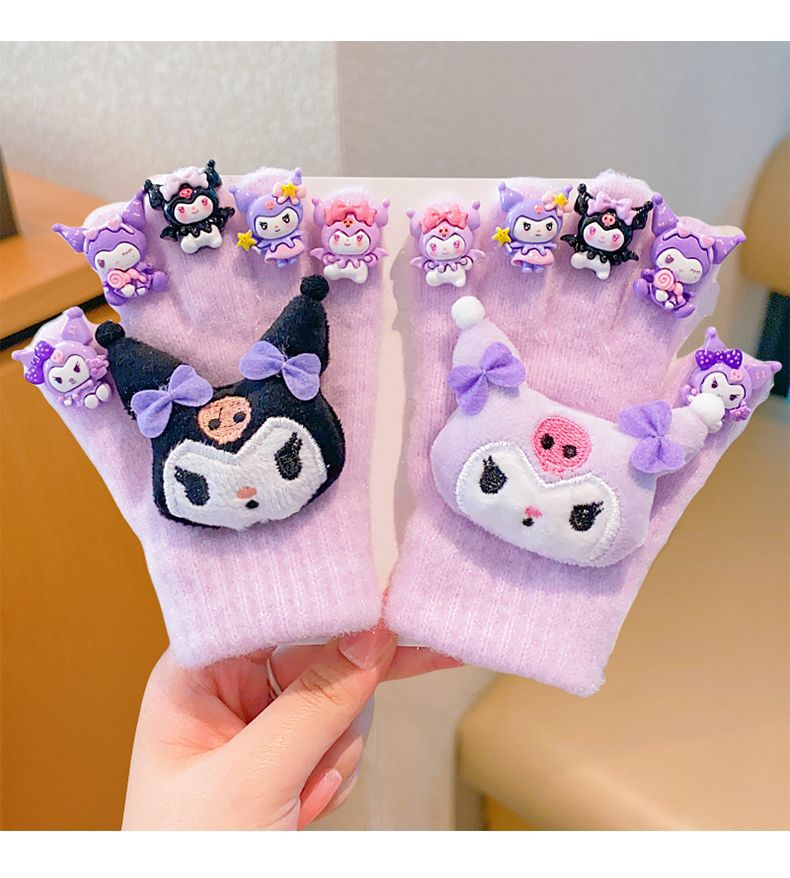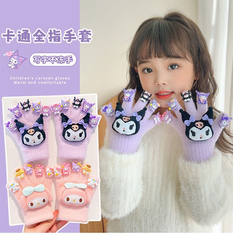 새로운 어린이 장갑 만화 쿠로미 장갑 겨울 보온 방한 남녀 아동용 두꺼운 다섯 손가락 장갑스토어 가기