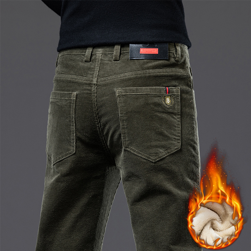 남자 겨울 비즈니스 기모 남자 바지 아빠의 캐주얼 바지 스트레이트 바지 봄과 가을 코듀로이 바지