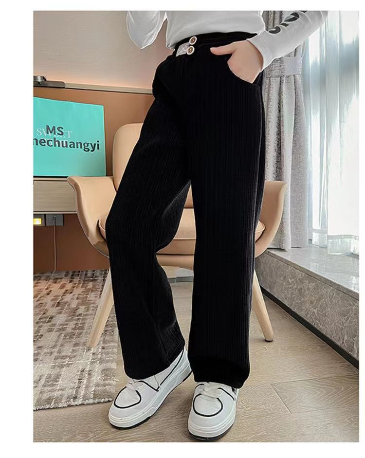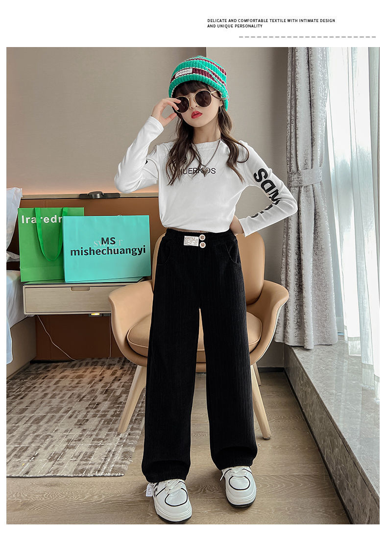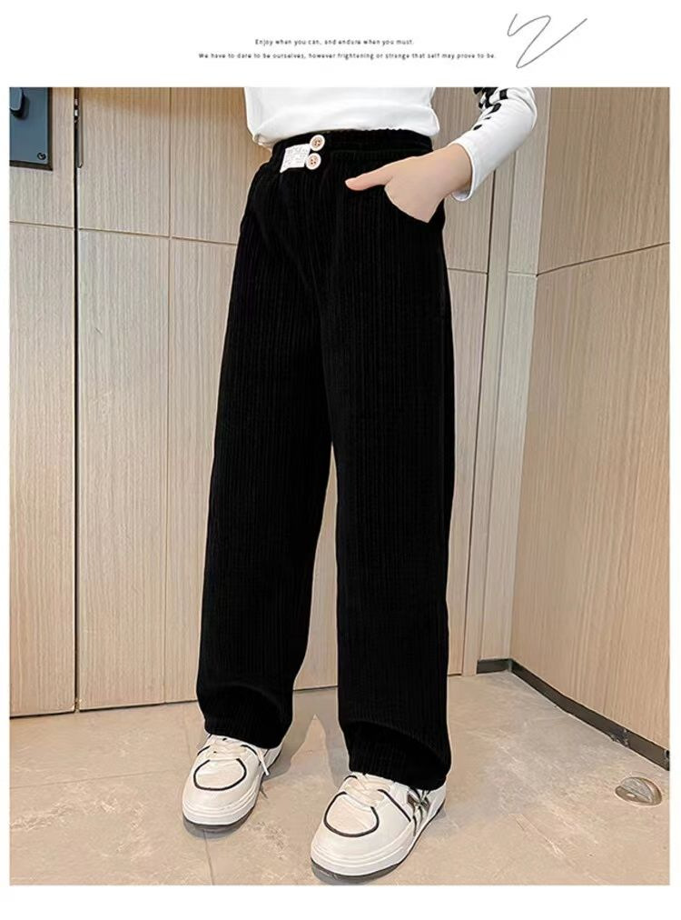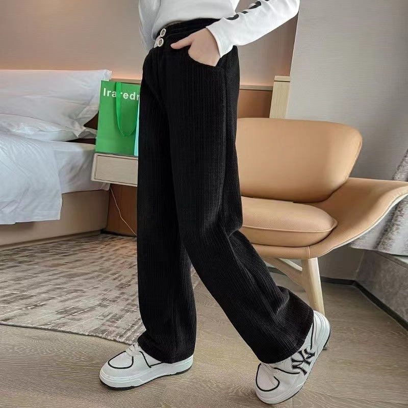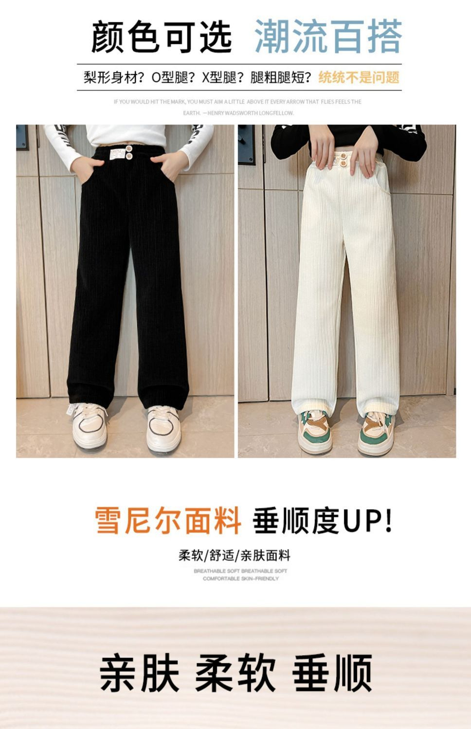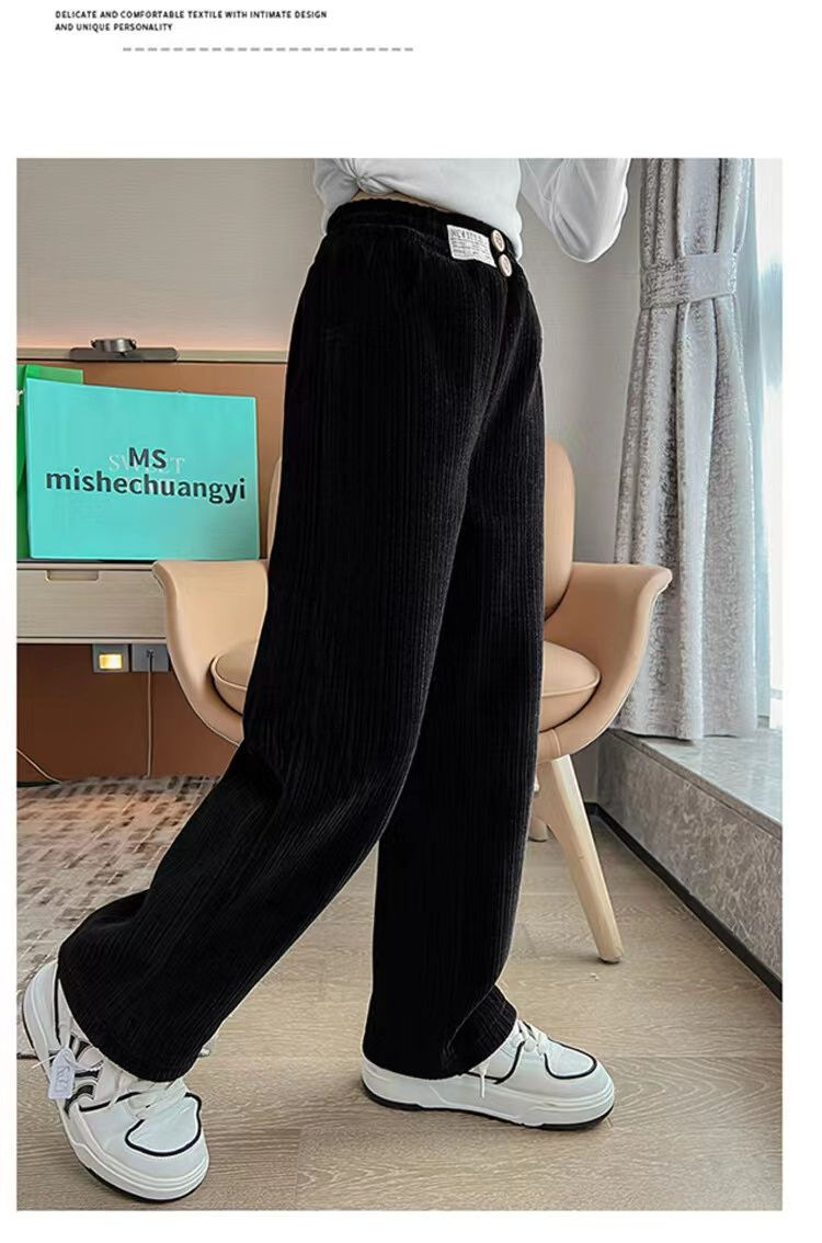 걸스 바지 2023 가을과 겨울 기모 두꺼운 코듀로이 바지 중형 및 대형 어린이 캐주얼 올 매치 유행 스트레이트 와이드 레그 바지