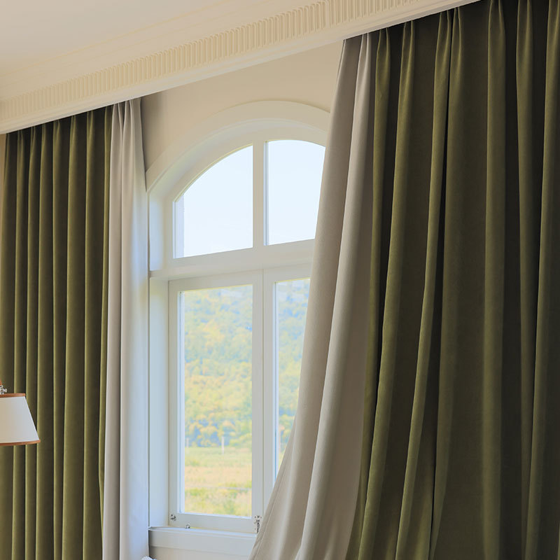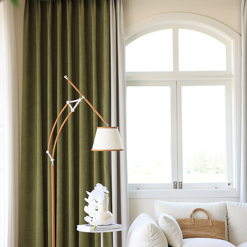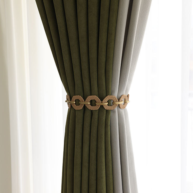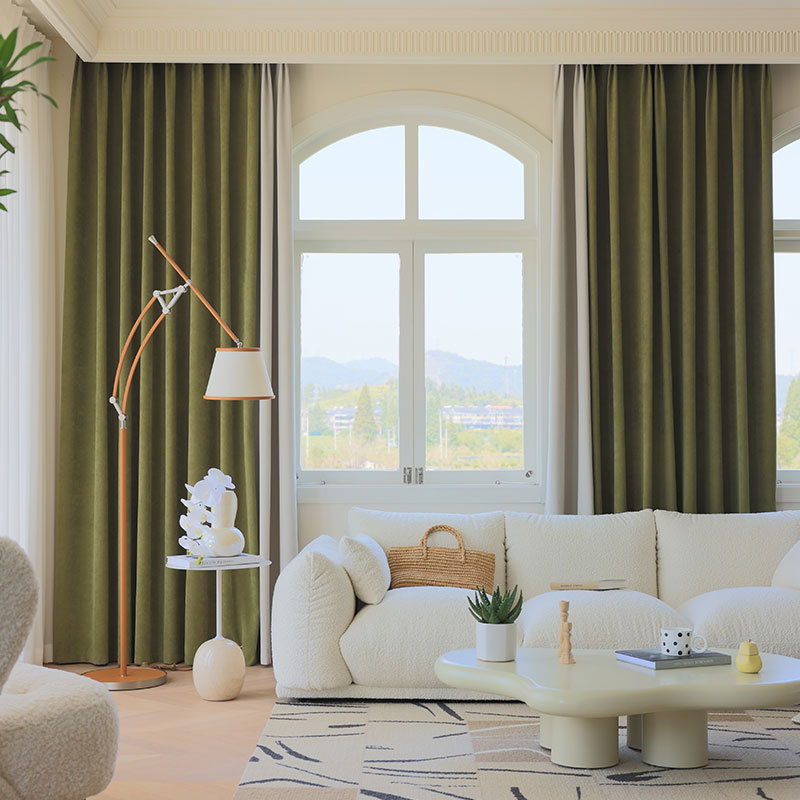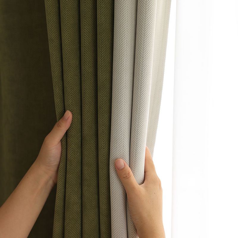 커튼 공장 터키 자카드 체닐 두껍게 헤링본 말차 녹색 거실 베이 창 커튼 완제품,
