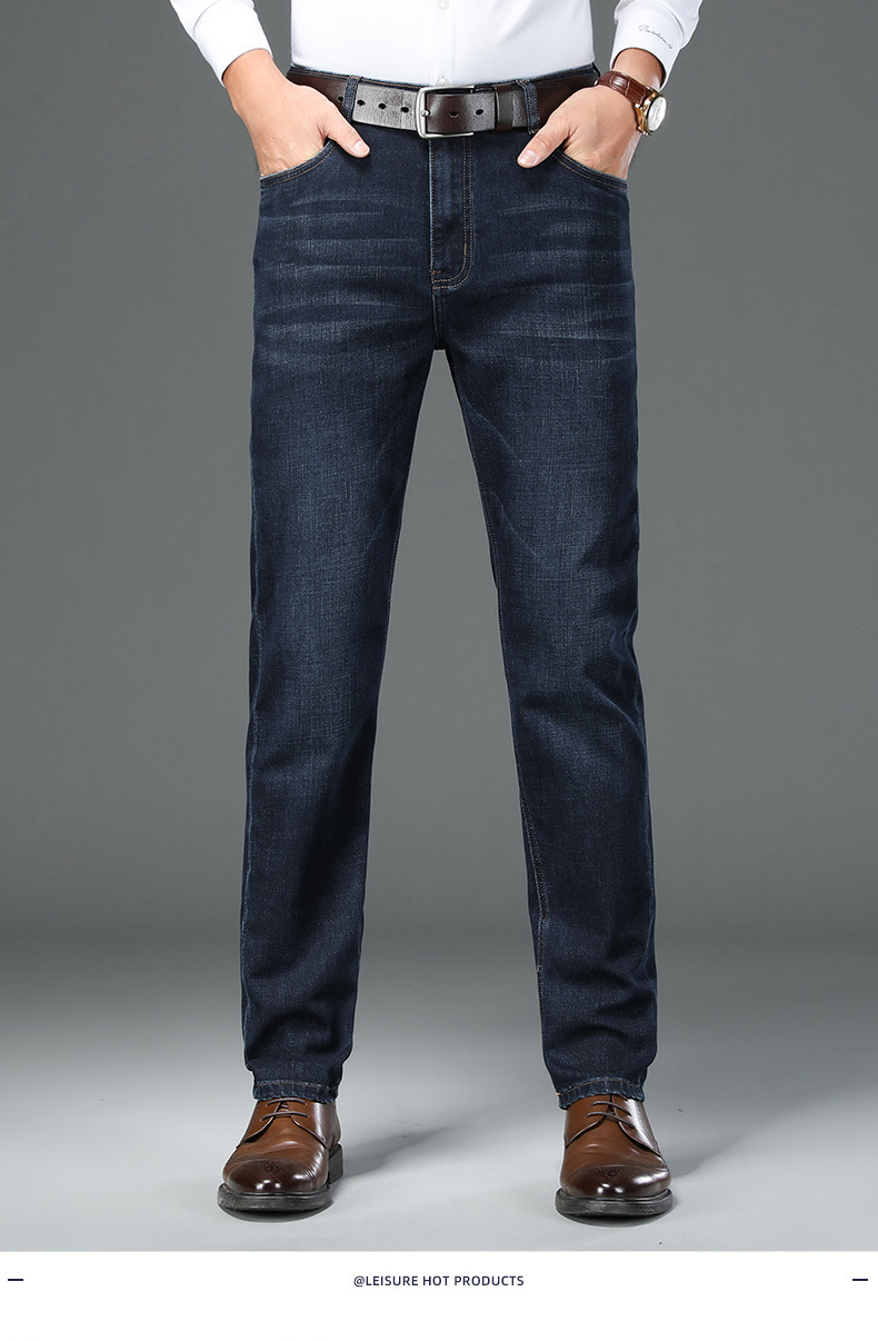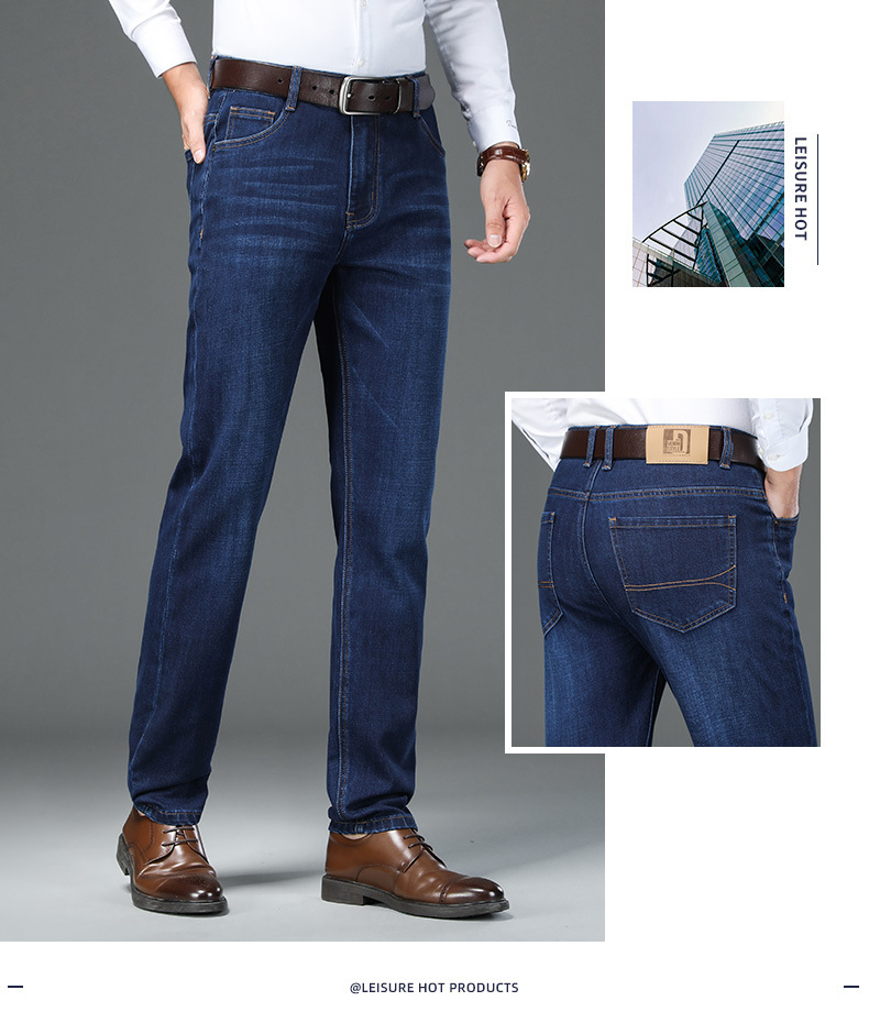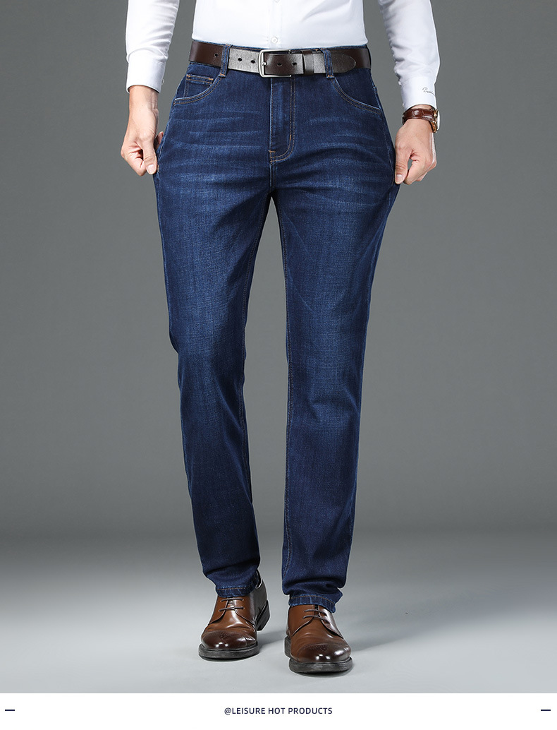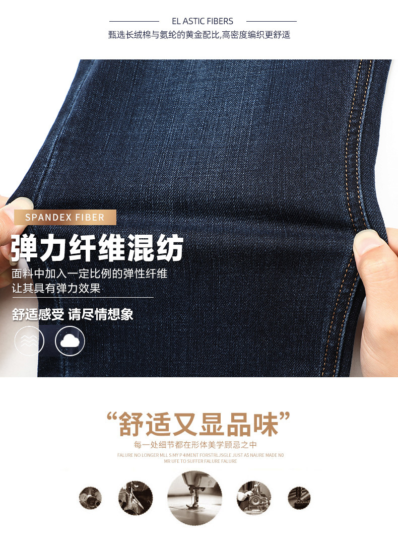 가벼운 고급 봄 청바지 남성용 면 탄성 편안한 중년 캐주얼 바지 라이트 비즈니스 슬림 핏 작은 스트레이트 바지 남성용스토어 가기