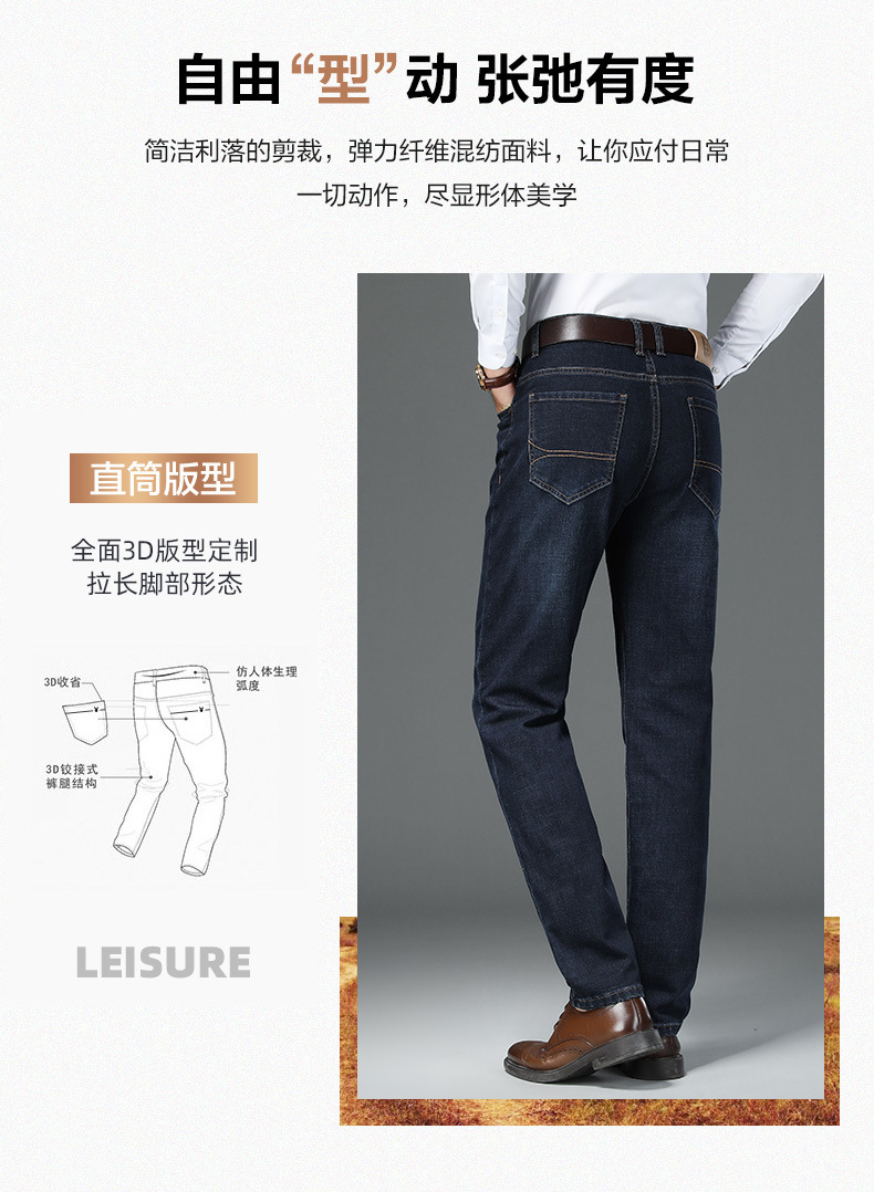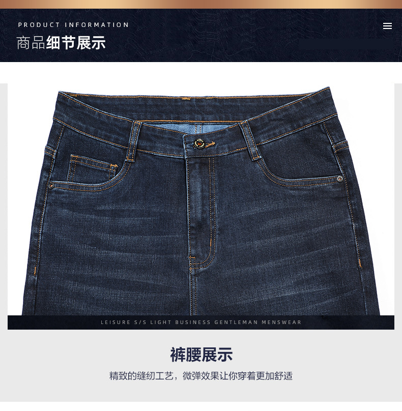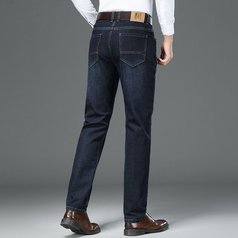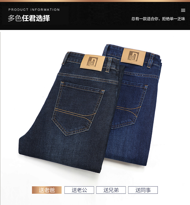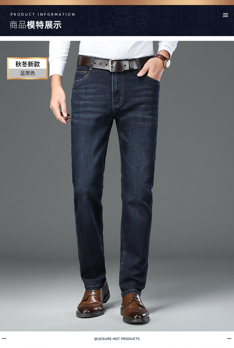 가벼운 고급 봄 청바지 남성용 면 탄성 편안한 중년 캐주얼 바지 라이트 비즈니스 슬림 핏 작은 스트레이트 바지 남성용스토어 가기