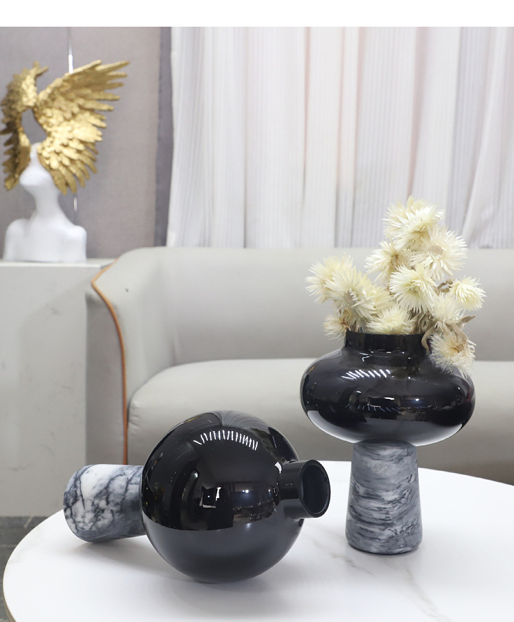 현대 미니멀 한 기하학적 유리 대리석 꽃 배열 꽃병 장식 거실 식당 침실 입구 홈 장식스토어 가기
