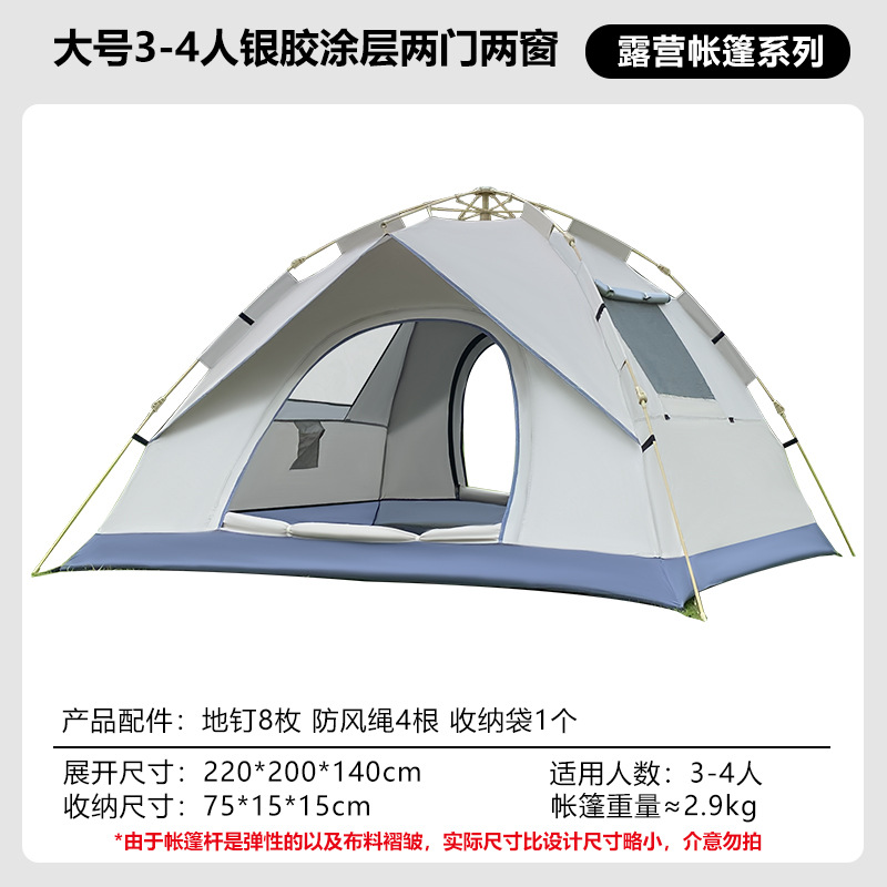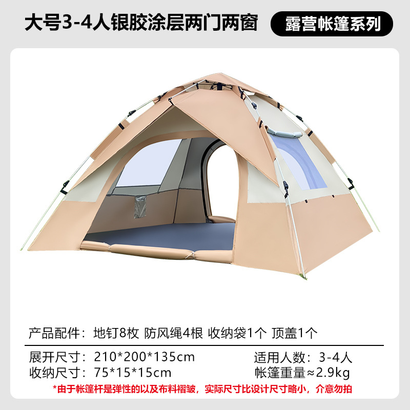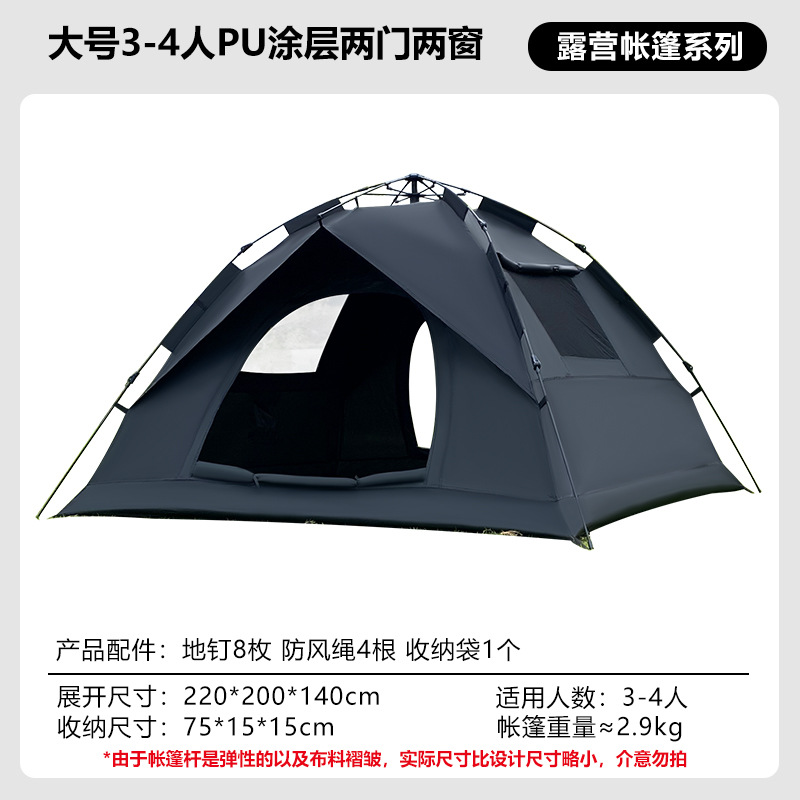 • 3-4인용 대형 자동텐트, 두꺼운 210D [가짜복층, 문2개, 창문없음] [유사금]