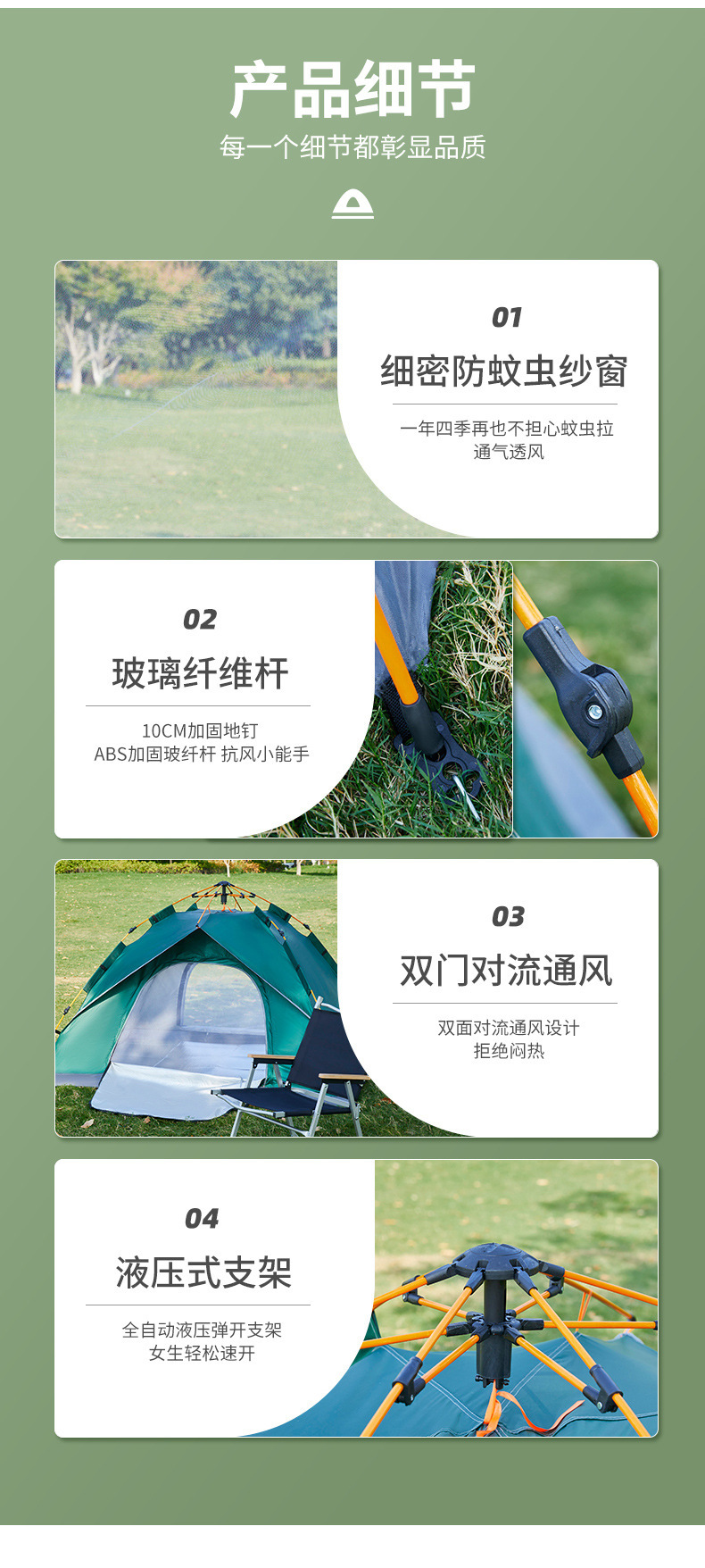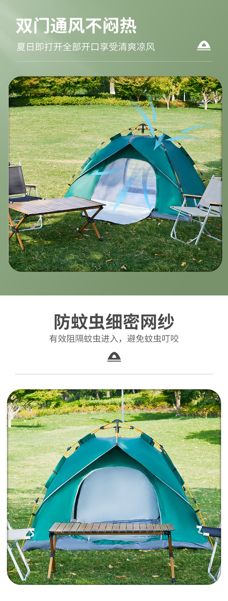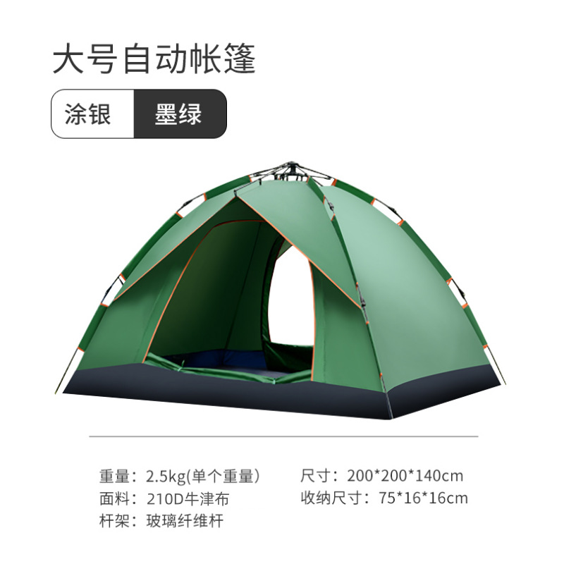 • 3~4인용 대형 자동텐트, 두꺼운 210D [가짜복층, 문 2개, 창문 없음] [짙은 녹색]