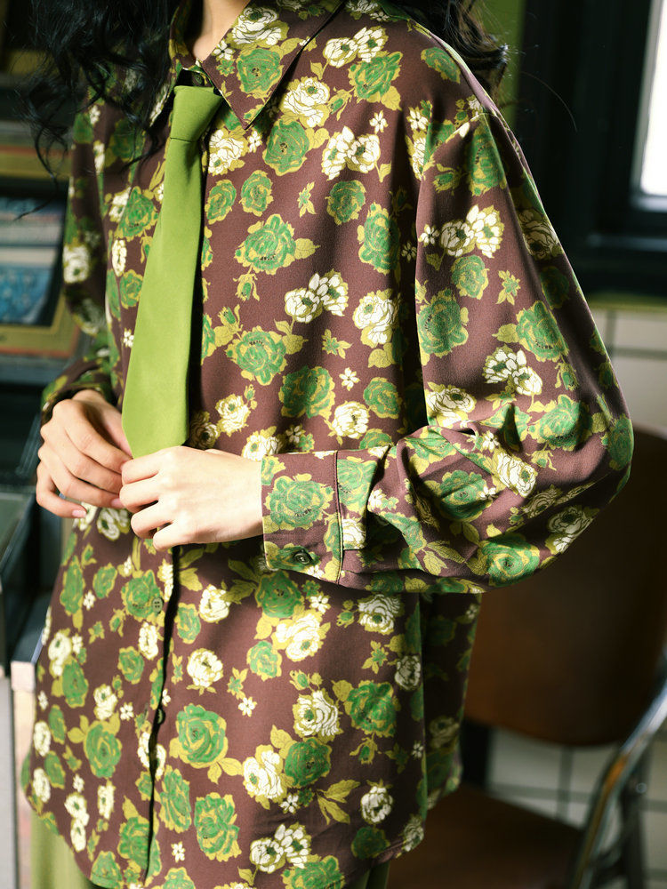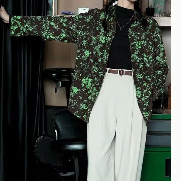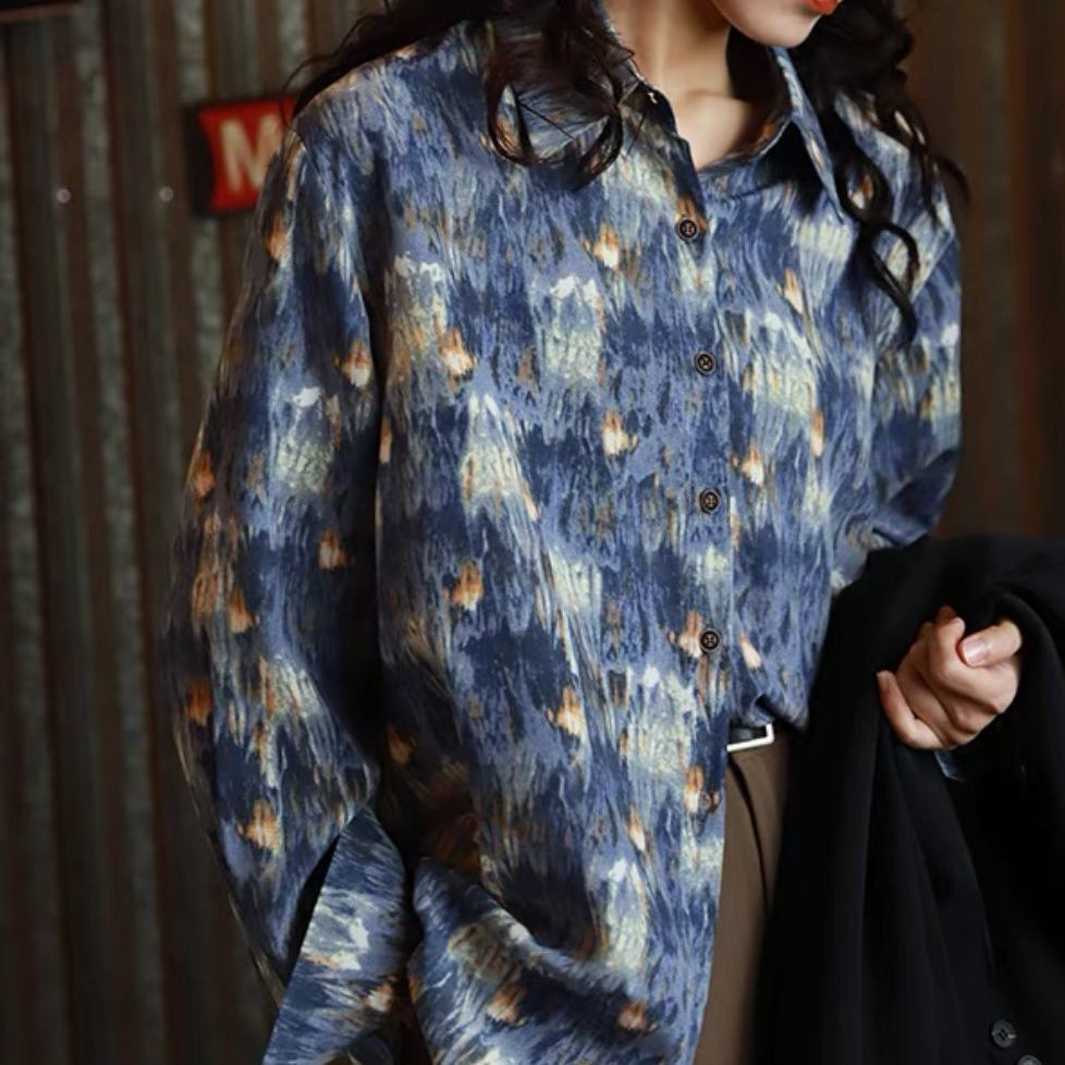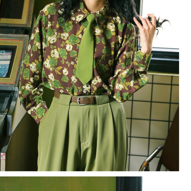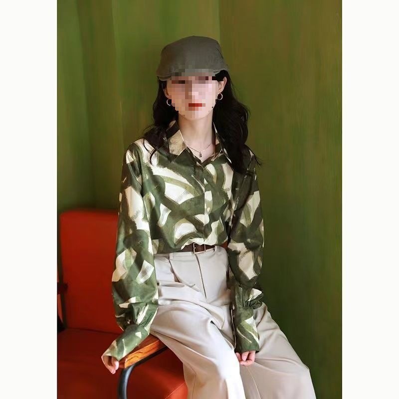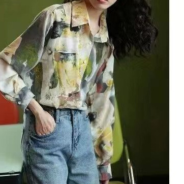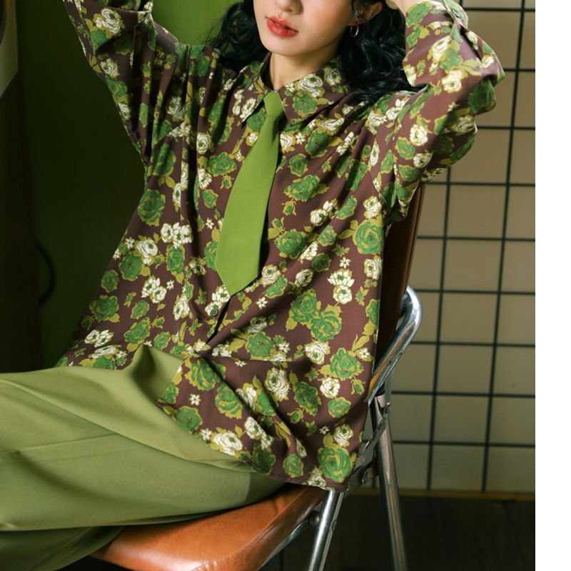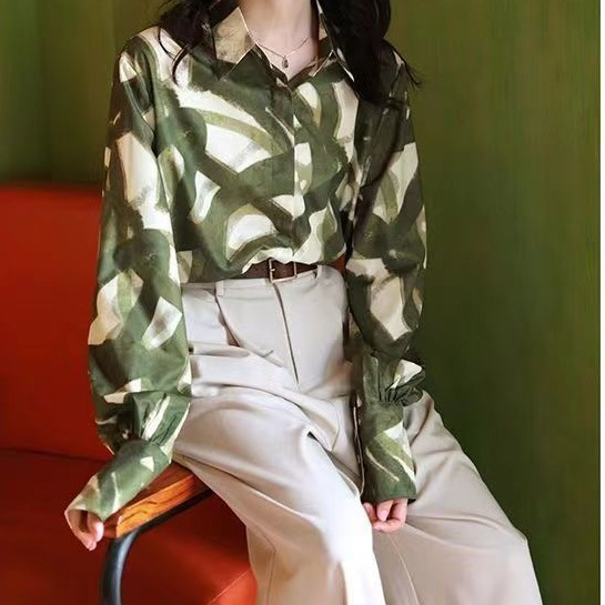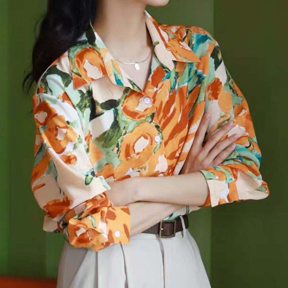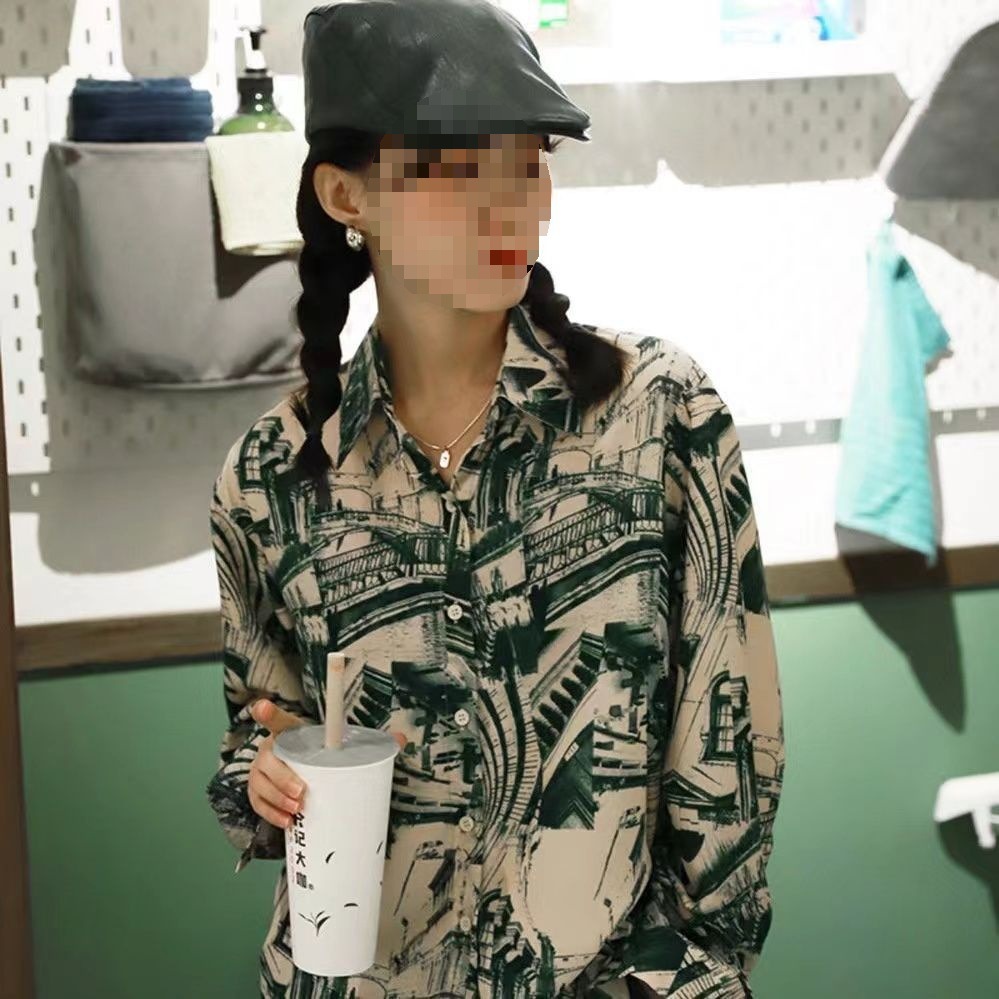 빈티지 홍콩 스타일 긴팔 인쇄 셔츠 여성용 봄 새로운 프랑스 유행 서양식 옷깃 탑 내부 착용 셔츠스토어 가기