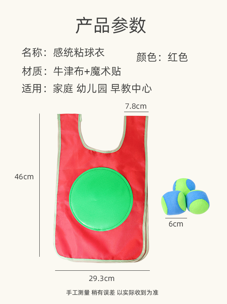 • 어린이용 끈끈이 유니폼 단면 벨크로 레드(공은 포함되지 않음)
