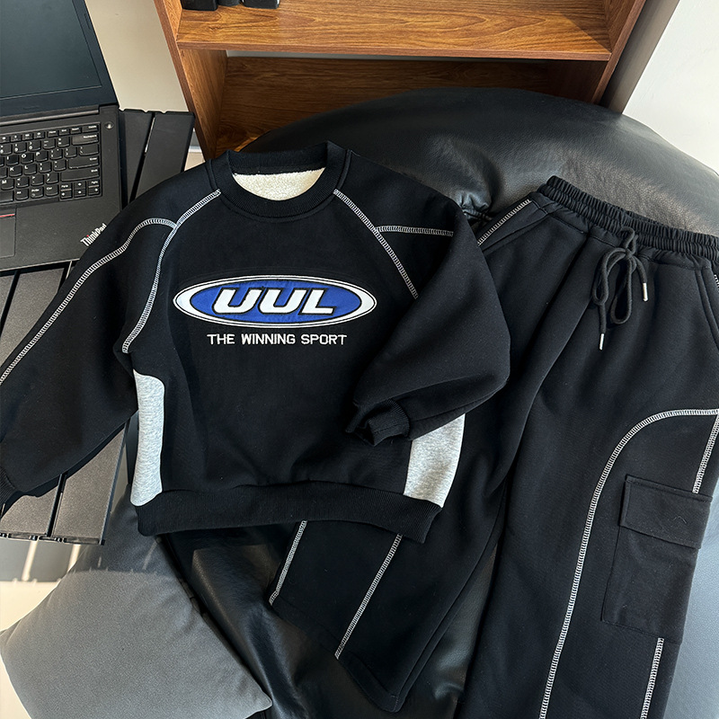 2023 가을과 겨울 소년 스포츠 세트 새로운 올림픽 양털 어린이 기모 두꺼운 서양식 캐주얼 스웨터 투피스 세트
