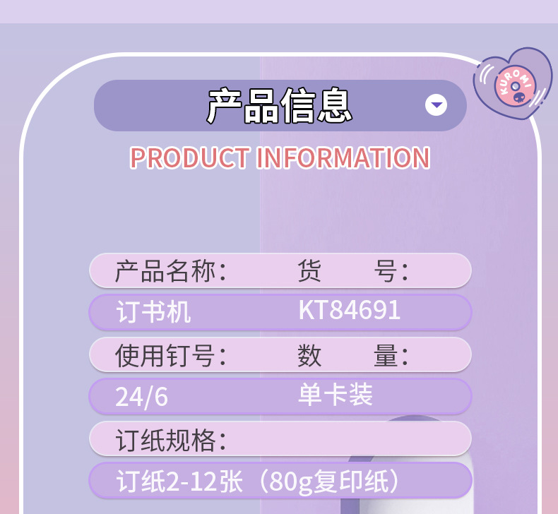 광보 멜로디 kulomi 옥 GUI 개 높은 색상 가치 귀여운 만화 소형 휴대용 스테이플러 네일 세트