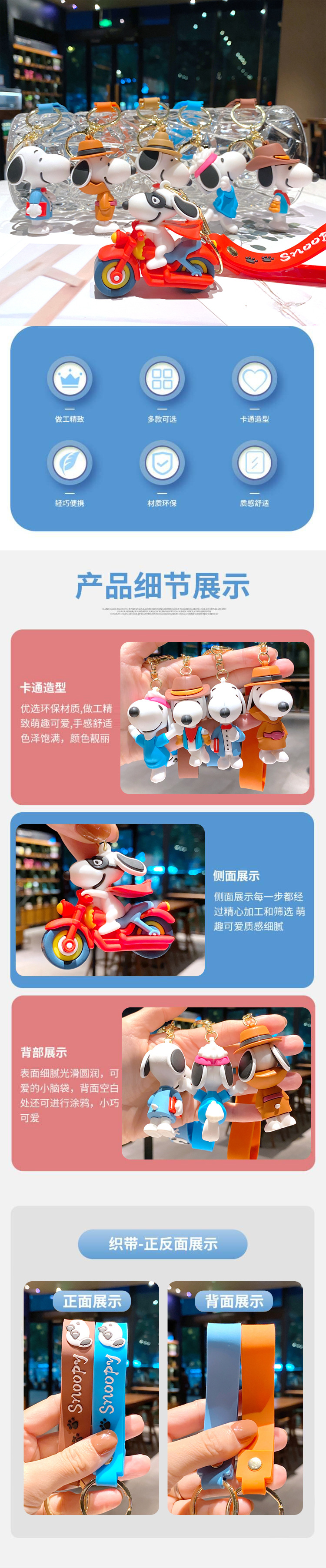 새로운 스누피 찰리 키 체인 만화 자동차 키 체인 귀여운 가방 펜던트 에폭시 인형 작은 선물