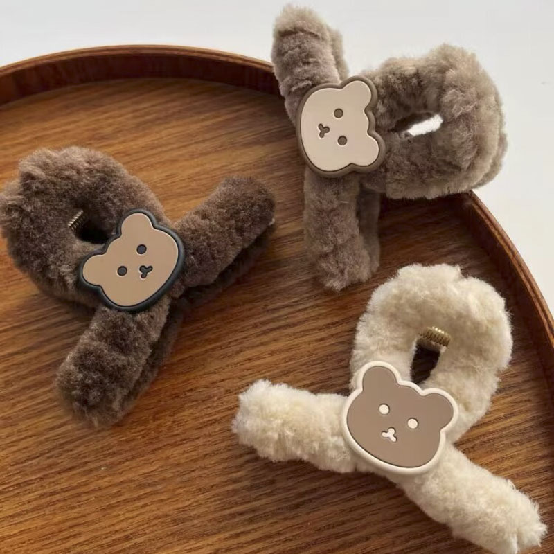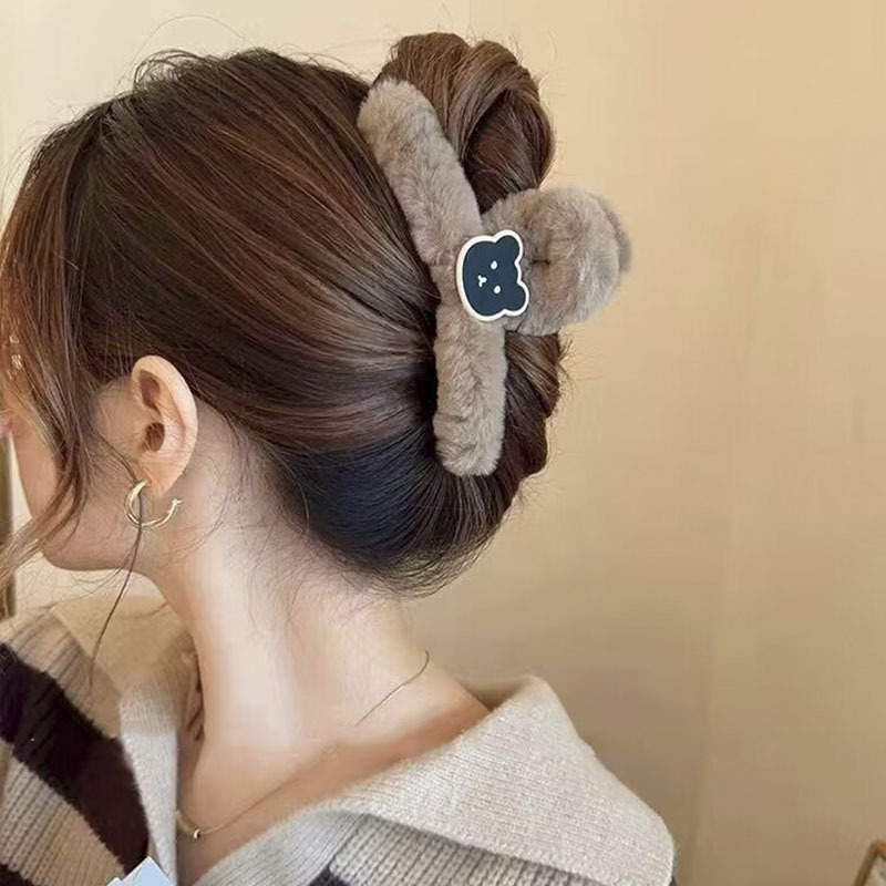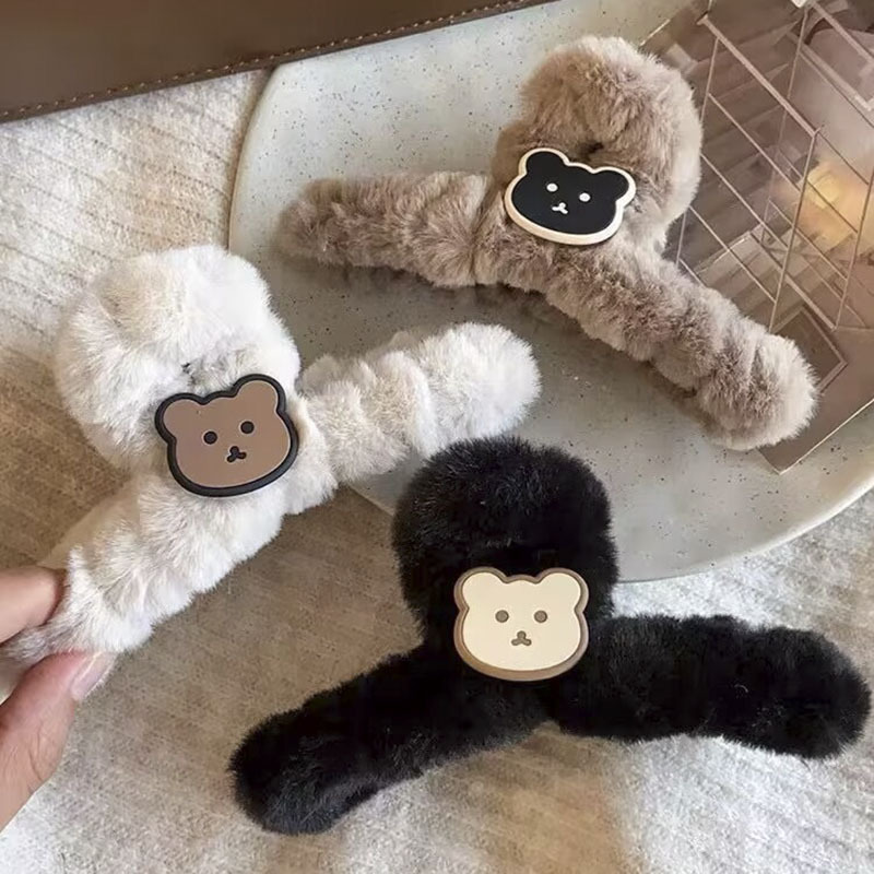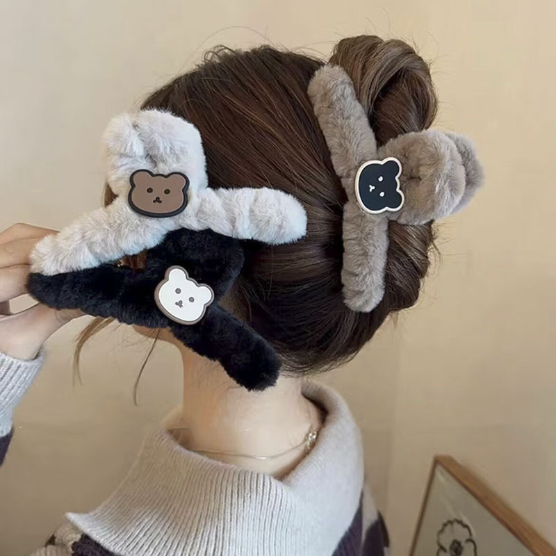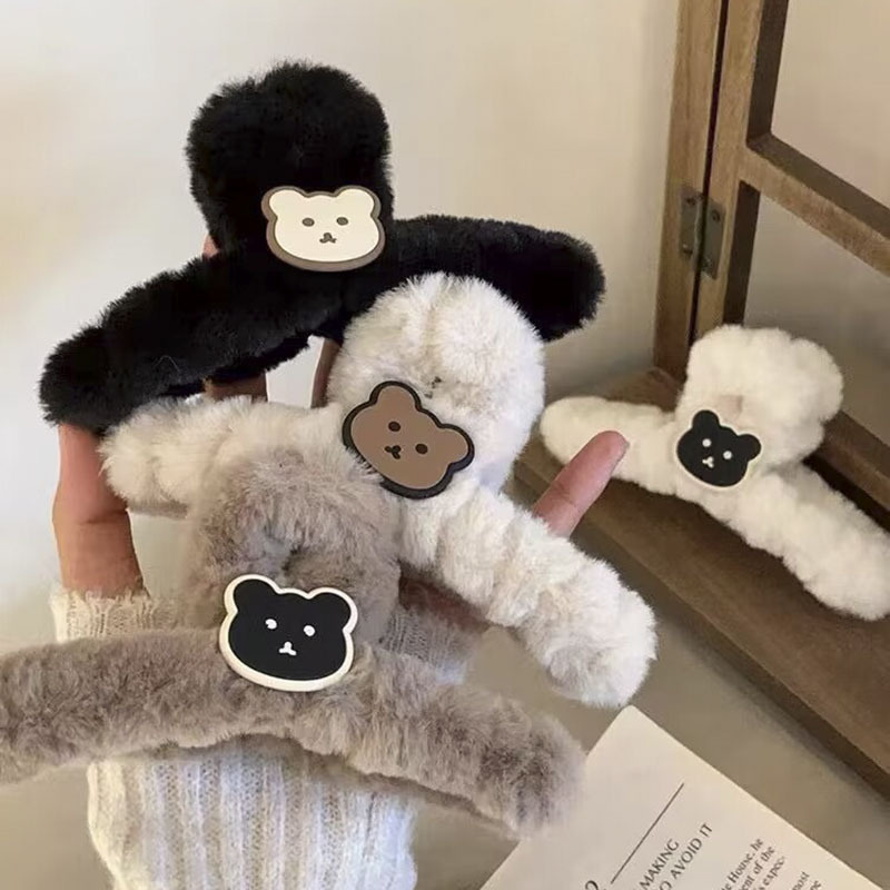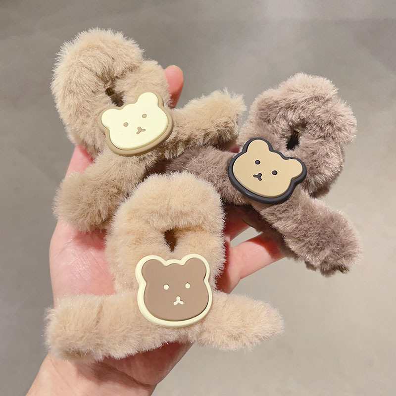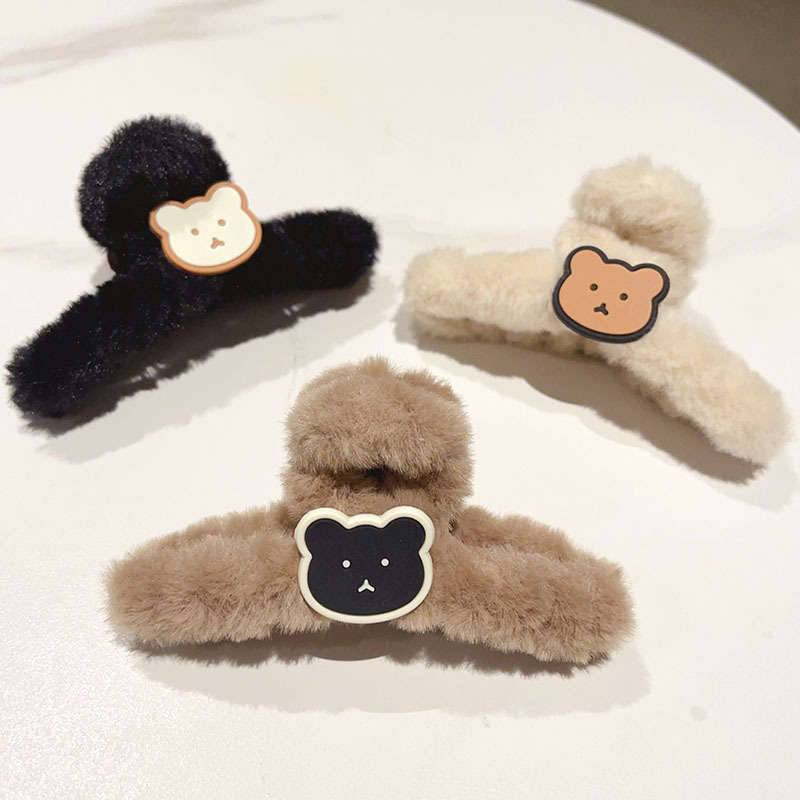 가을과 겨울 봉제 곰 그립 큰 상어 클립 머리 머리 그립 귀여운 머리핀 클립 여성 머리 머리핀 머리핀스토어 가기