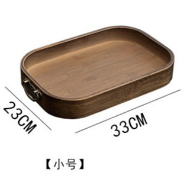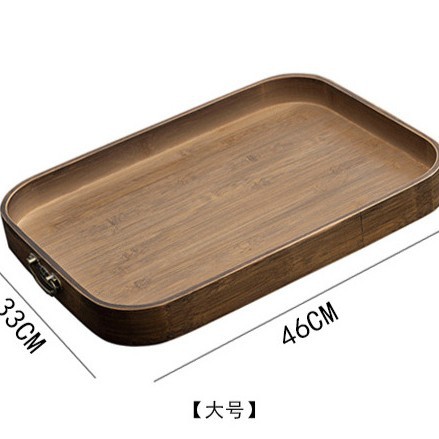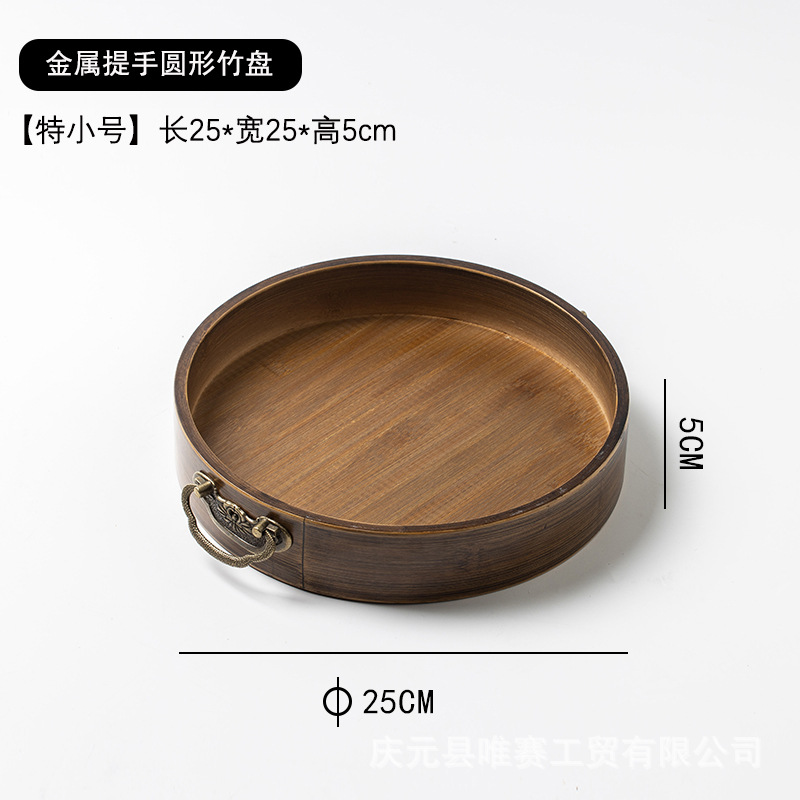 중국 복고풍 풀 대나무 차 트레이 호두 컬러 저장 트레이 빛 고급 금속 핸들 티 트레이 과일 플레이트 디너 플레이트