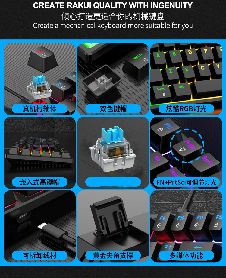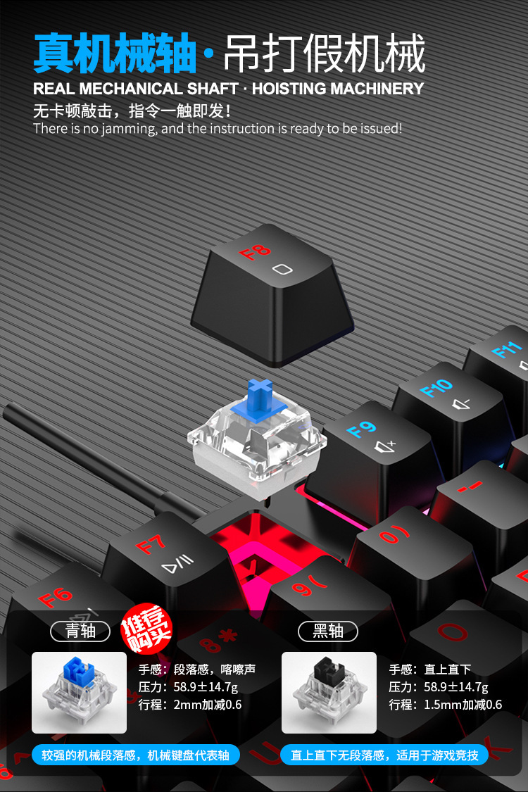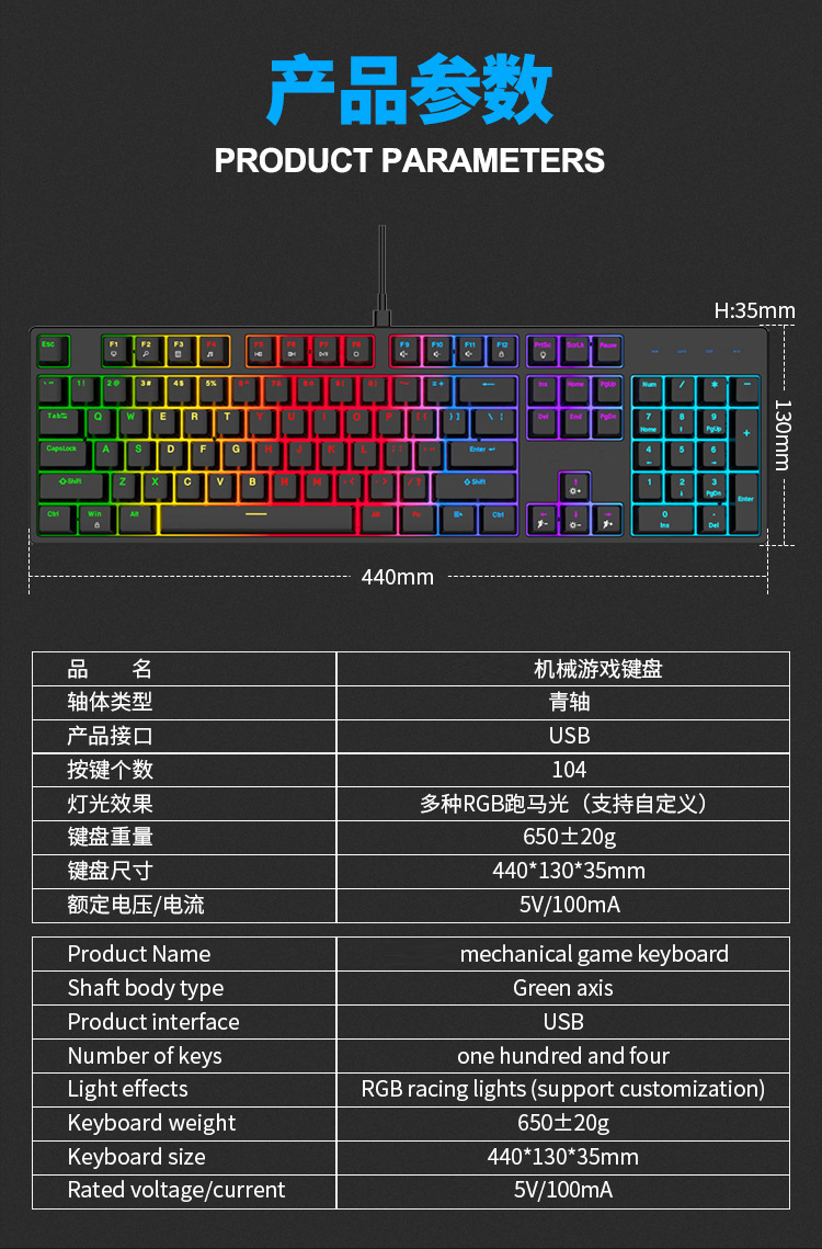 Typec 인터페이스 플러그인 녹색 축 104 키 기계식 키보드 e-스포츠 게임 RGB 랜턴 게임 기계식 키보드스토어 가기