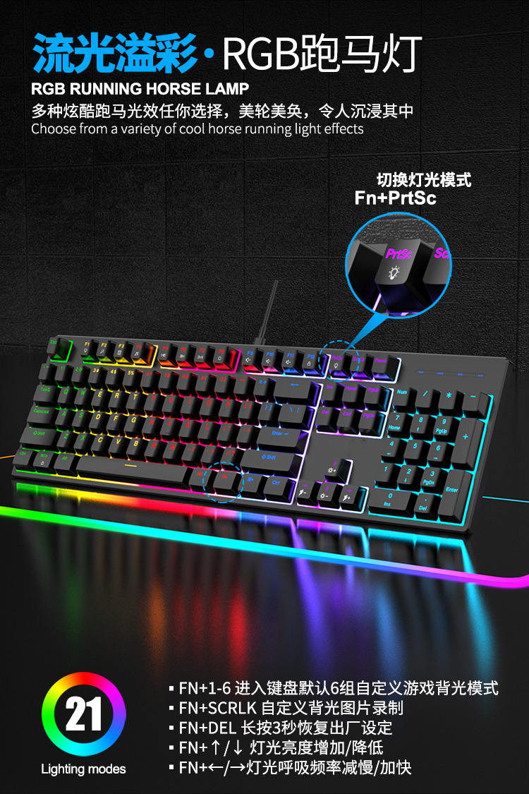 Typec 인터페이스 플러그인 녹색 축 104 키 기계식 키보드 e-스포츠 게임 RGB 랜턴 게임 기계식 키보드