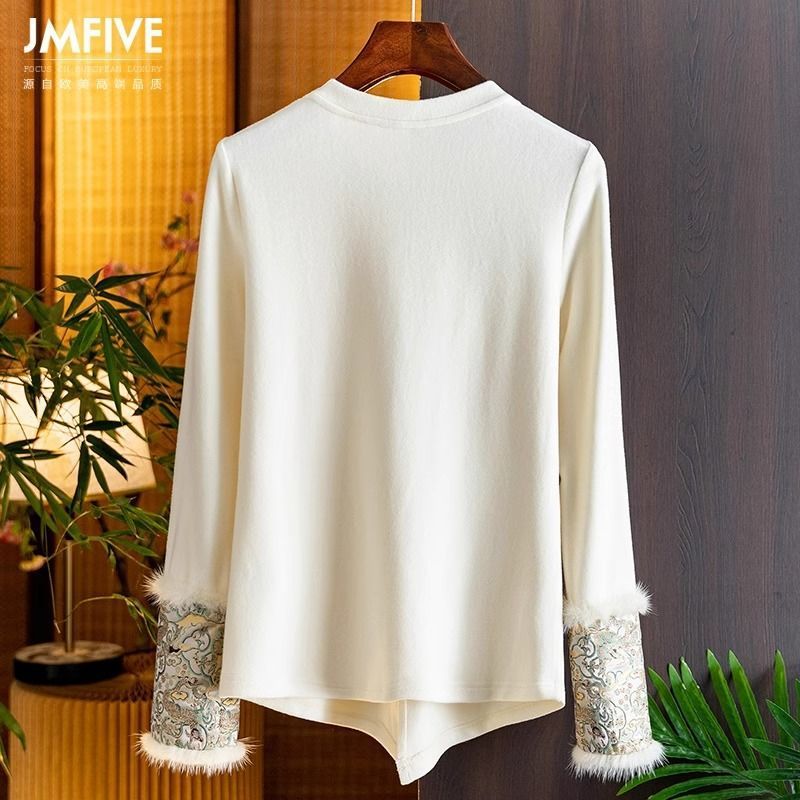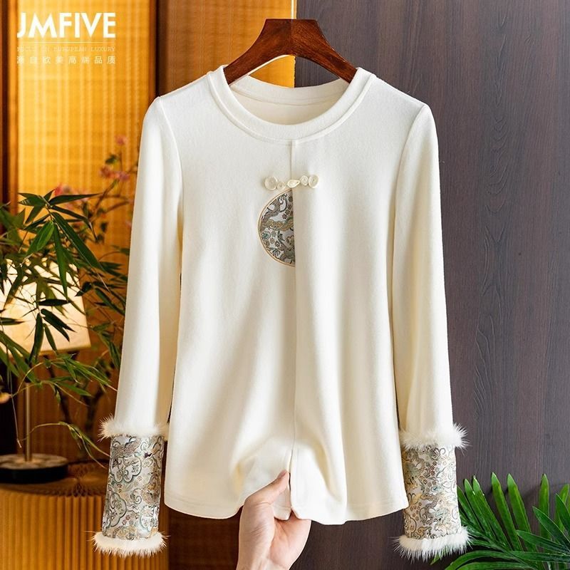가벼운 Guofeng 하이 엔드 내베이스 셔츠 여자 2023 가을 및 겨울 새로운 중국 라운드 넥 버클 자카드스토어 가기