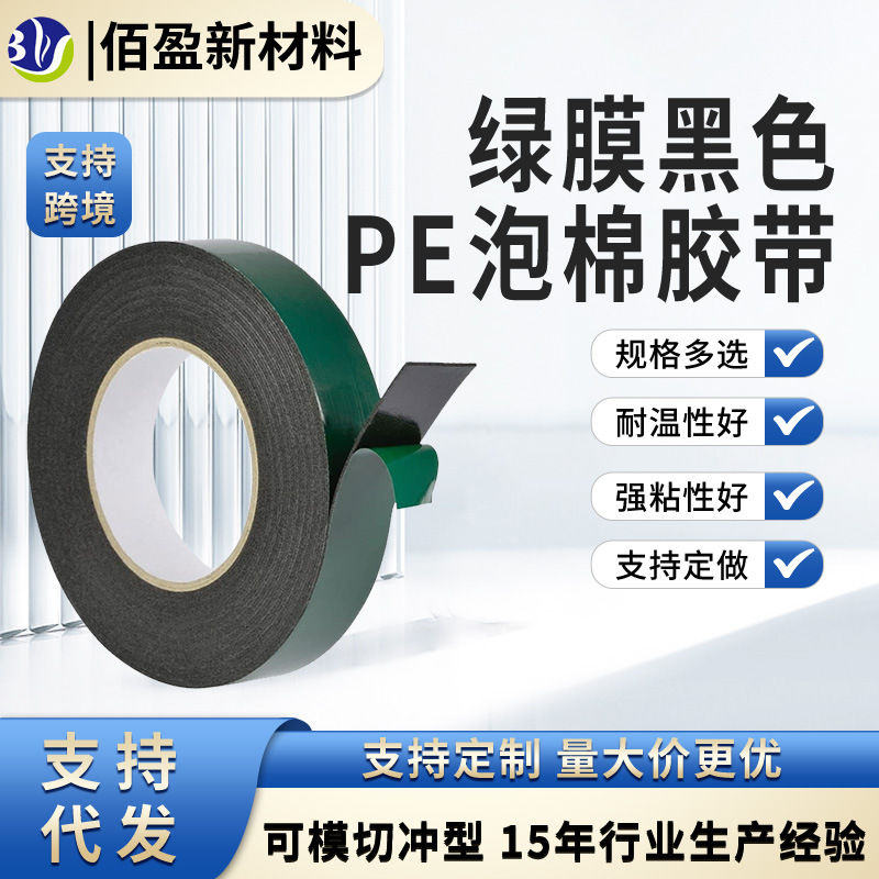 충격 흡수 및 충돌 방지 폼 접착제 씰링 스트립 녹색 필름 검정색 PE 폼 테이프 사진 프레임 접착 폼 테이프 제조업체스토어 가기