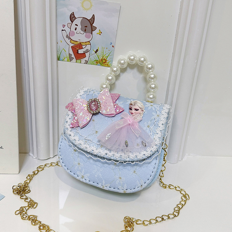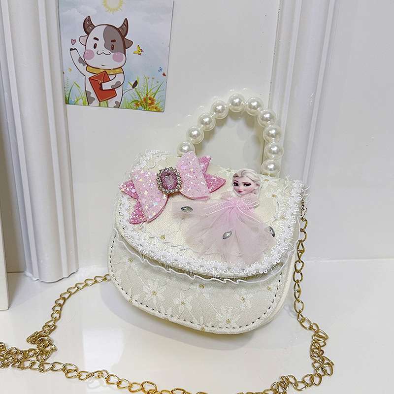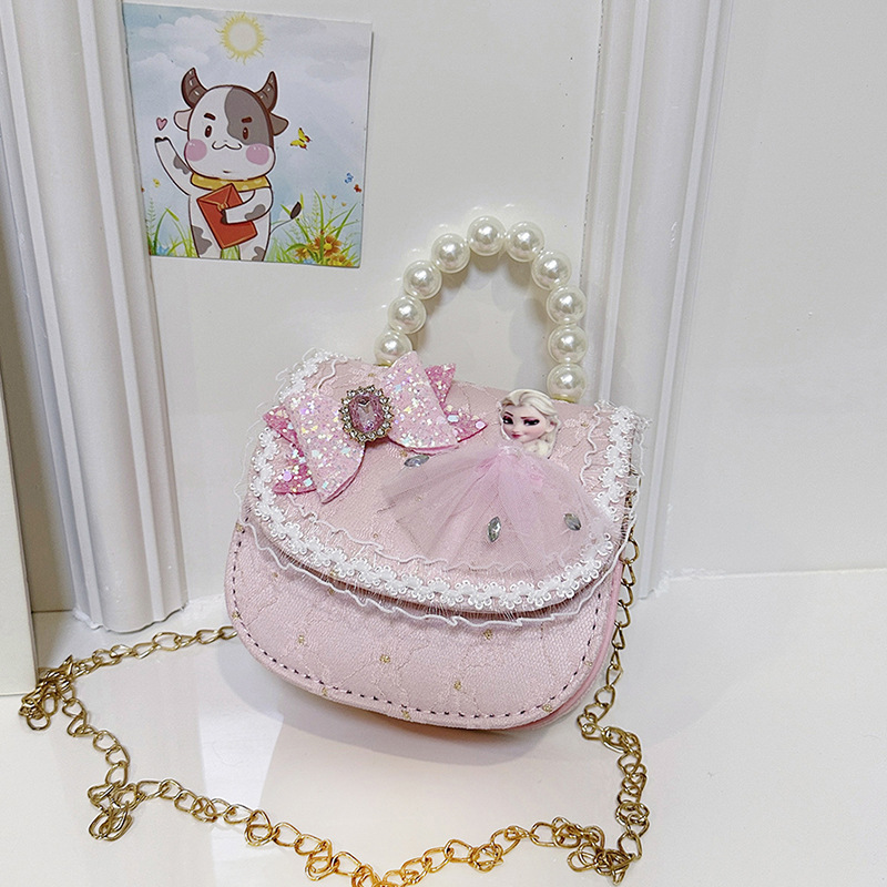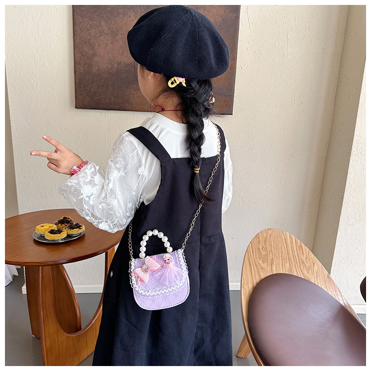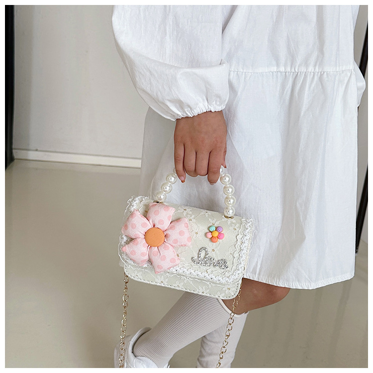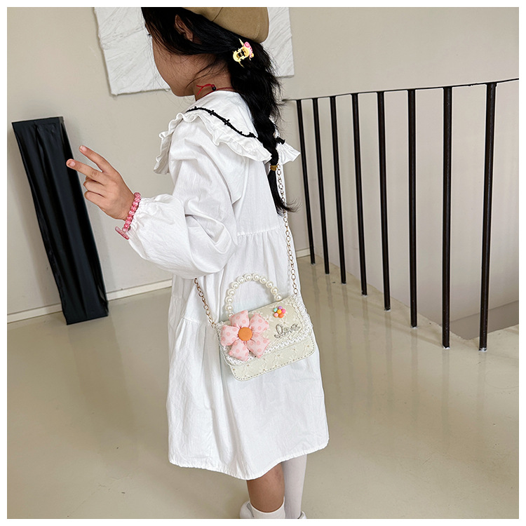 새로운 어린이 어깨 가방 귀여운 공주 동전 지갑 어린 소녀 진주 핸드백 어린이 꽃 샤넬 스타일 가방