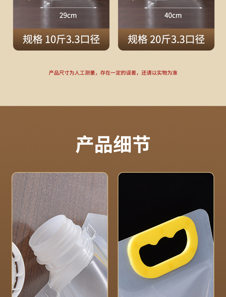 免责声明!因所装物品密度不同、(比如棉花和钢珠)同尺寸所能装的重量也会不同!