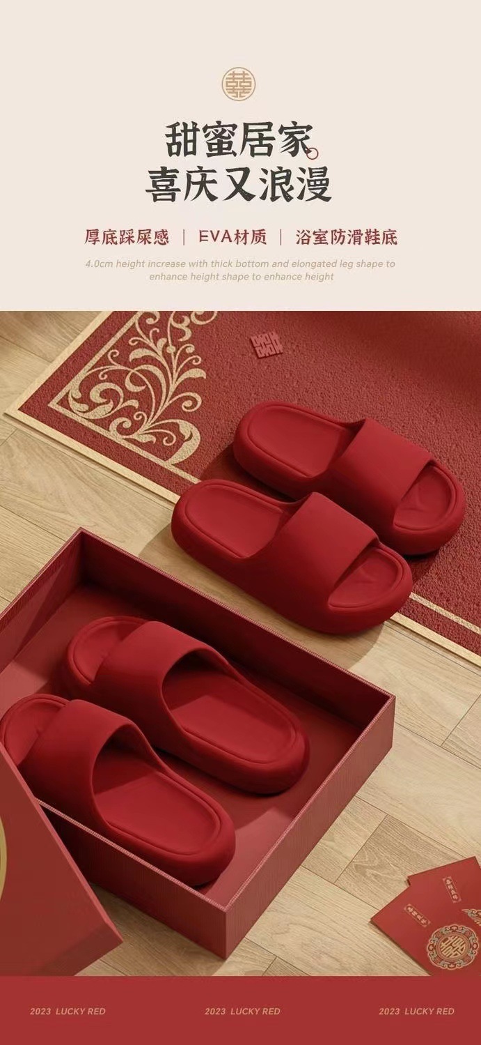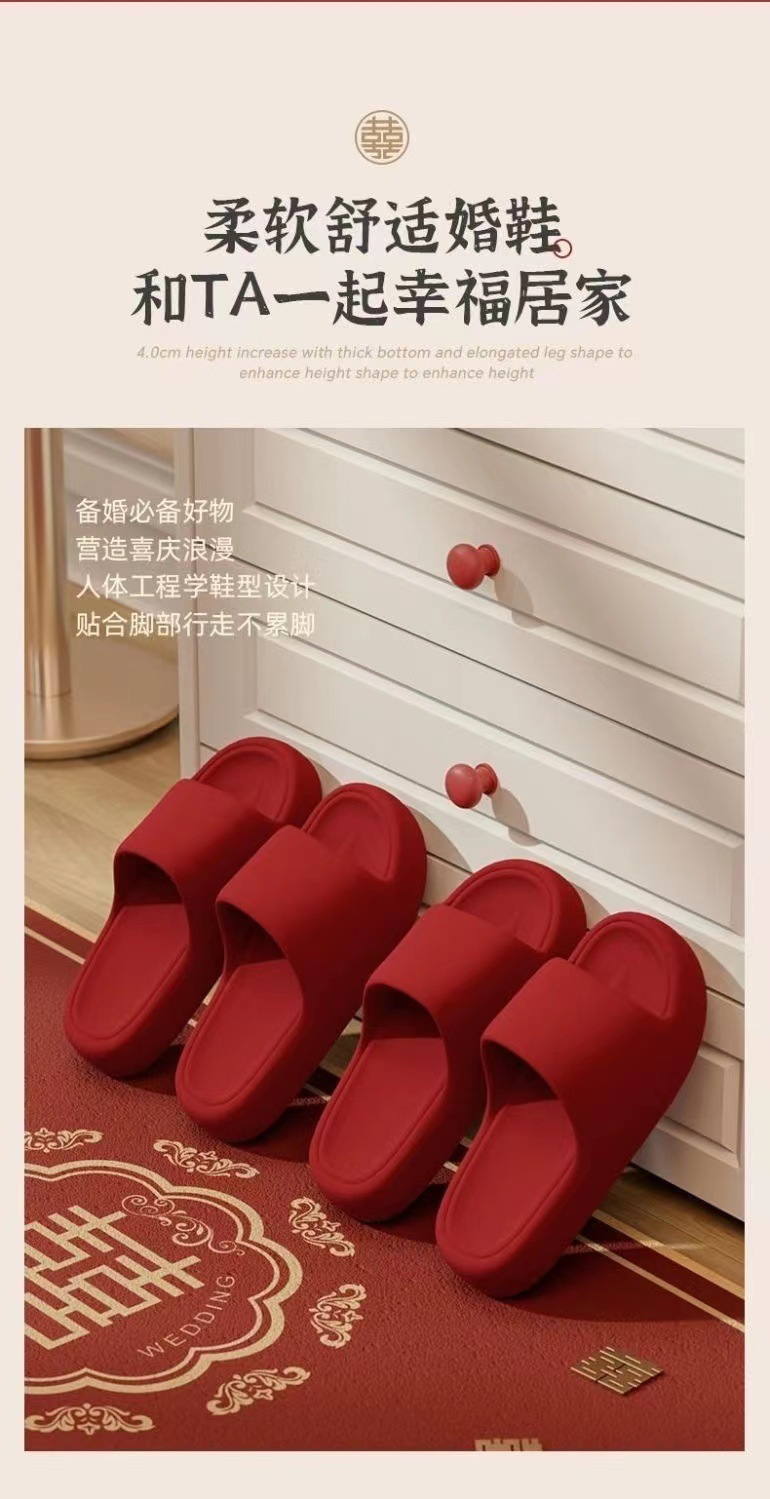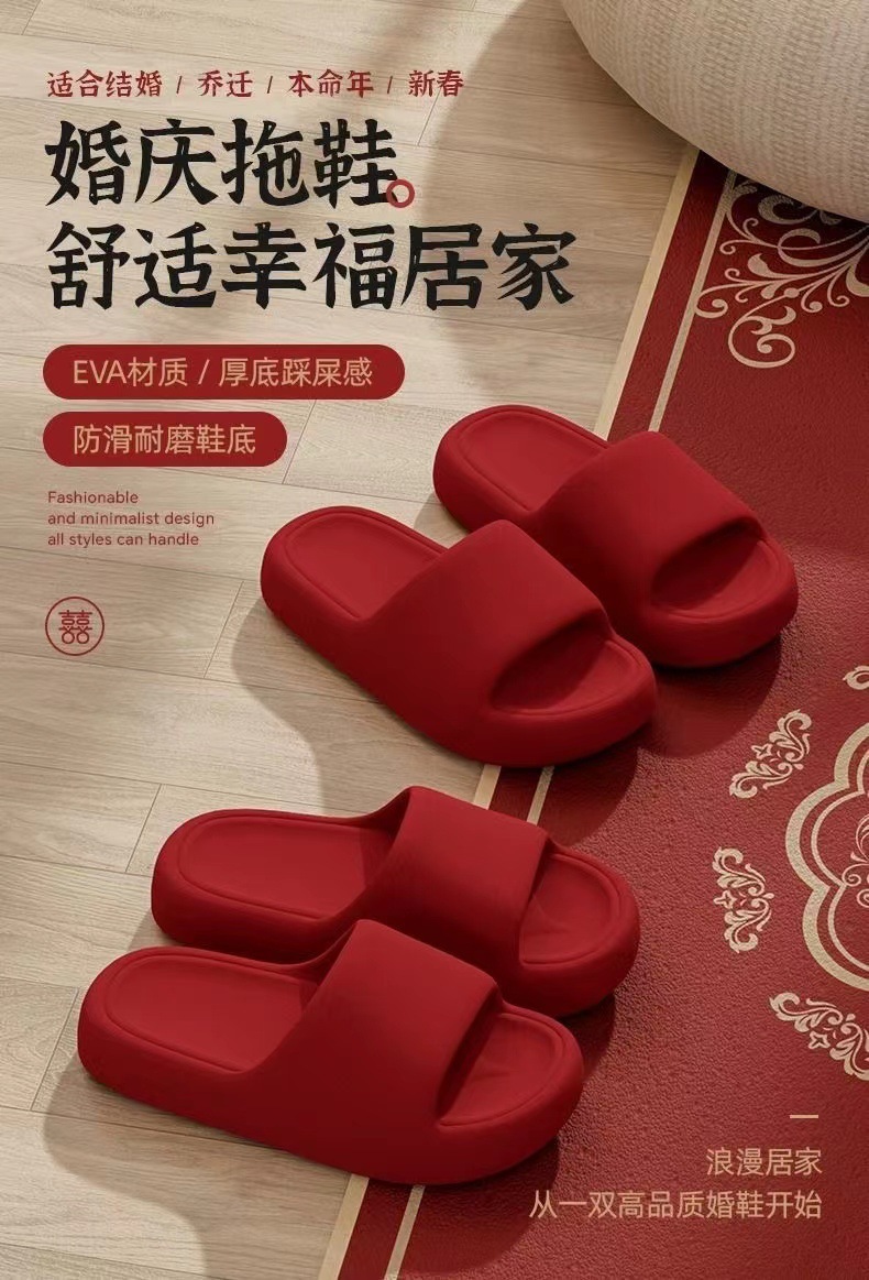 웨딩 레드 슬리퍼 축제 동반 웨딩 신부 커플 여름 실내 가정용 웨딩 슬리퍼 도매스토어 가기
