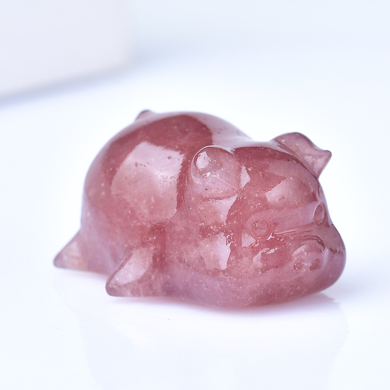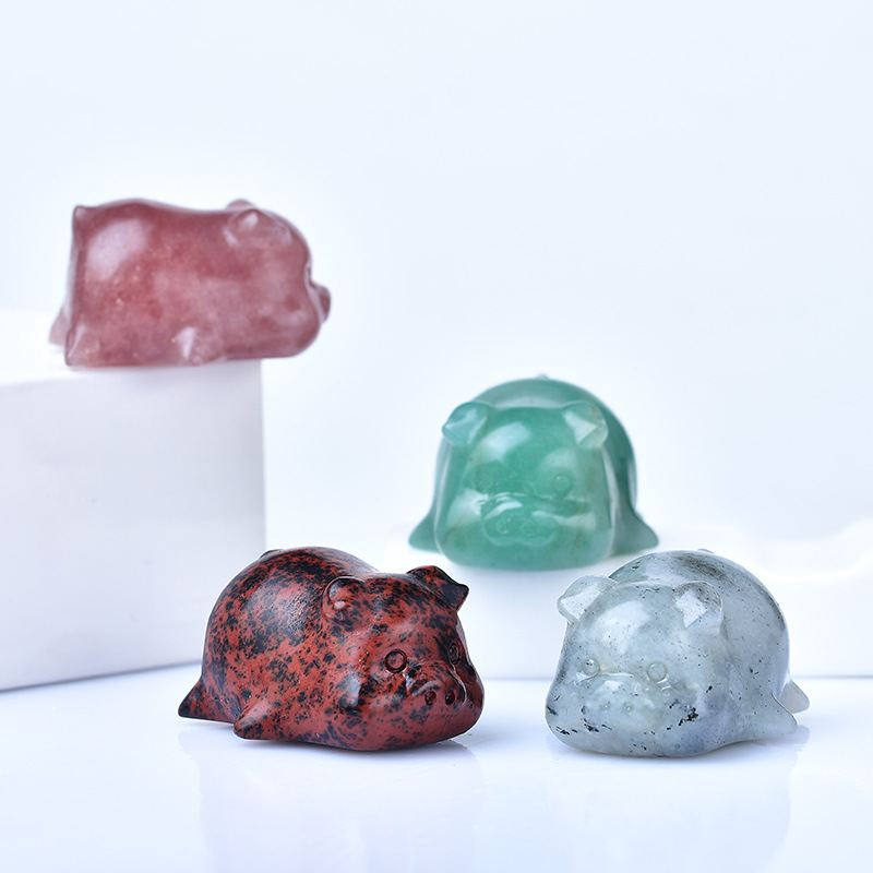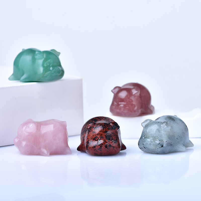 자연 크리스탈 귀여운 돼지 동물 조각 돼지 조각 에너지 석영 동물 장식 건강한 치유 돌 선물