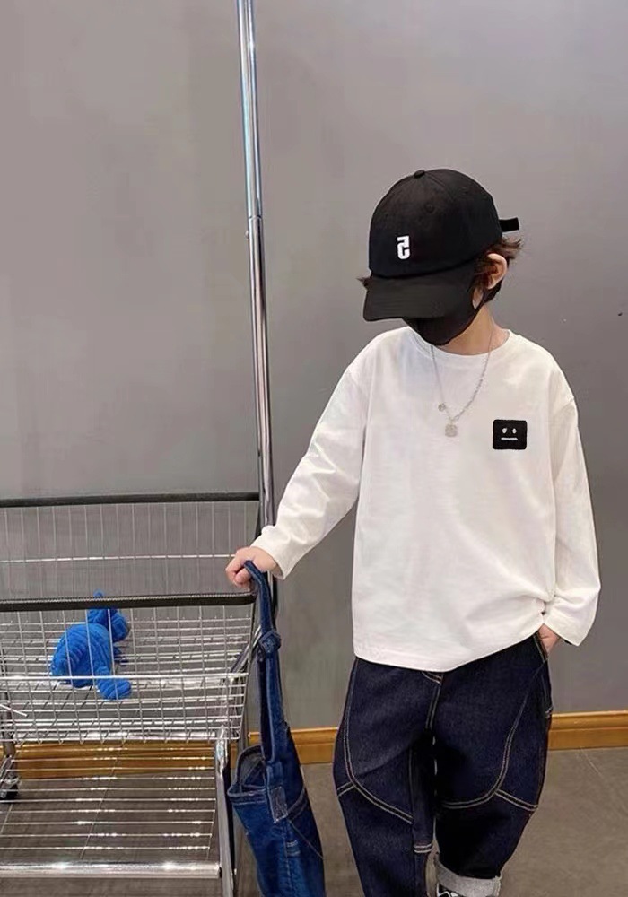 남학생 100 면 티셔츠 긴 소매 봄과 가을 스마일리 인쇄 된 옷 어린이 캐주얼 간단한 아동복 기본 셔츠스토어 가기