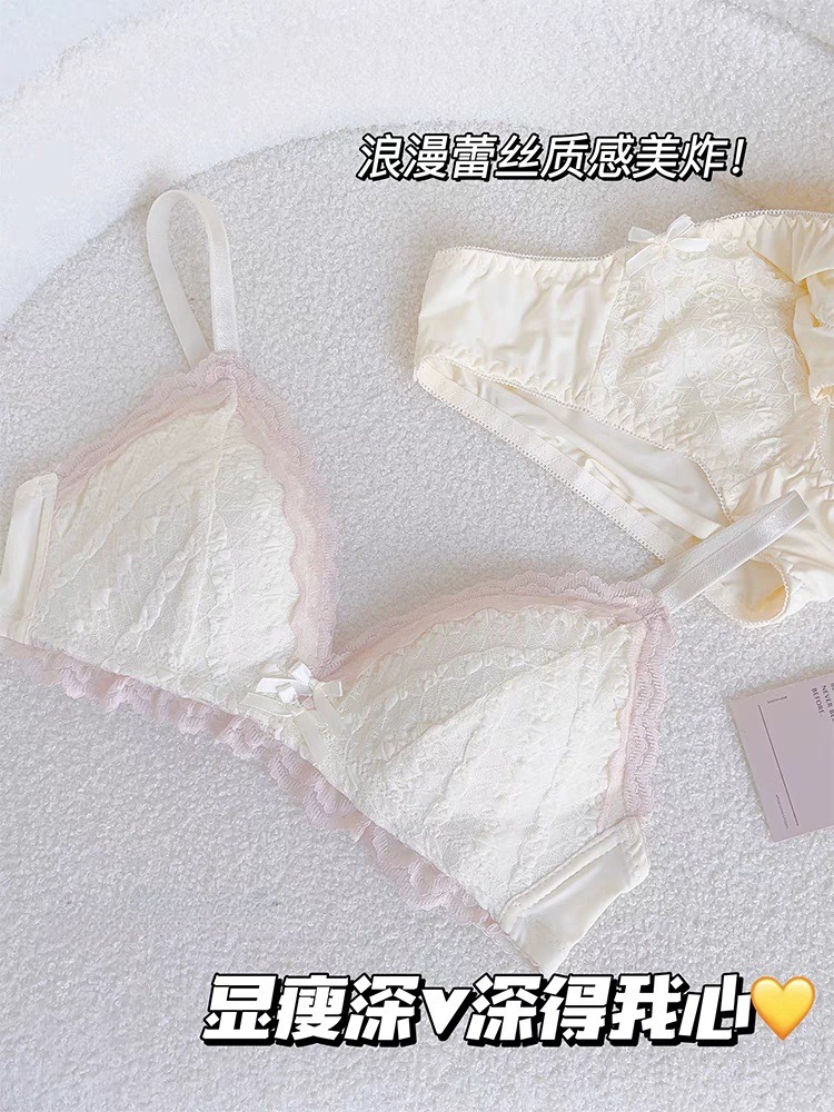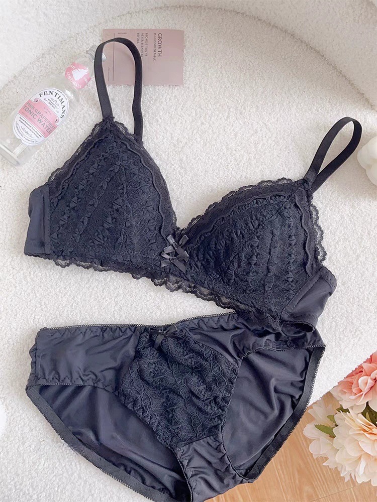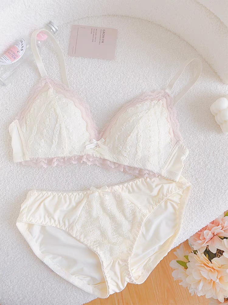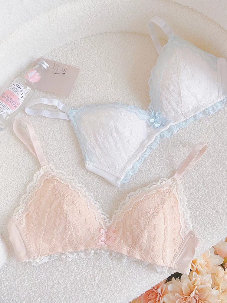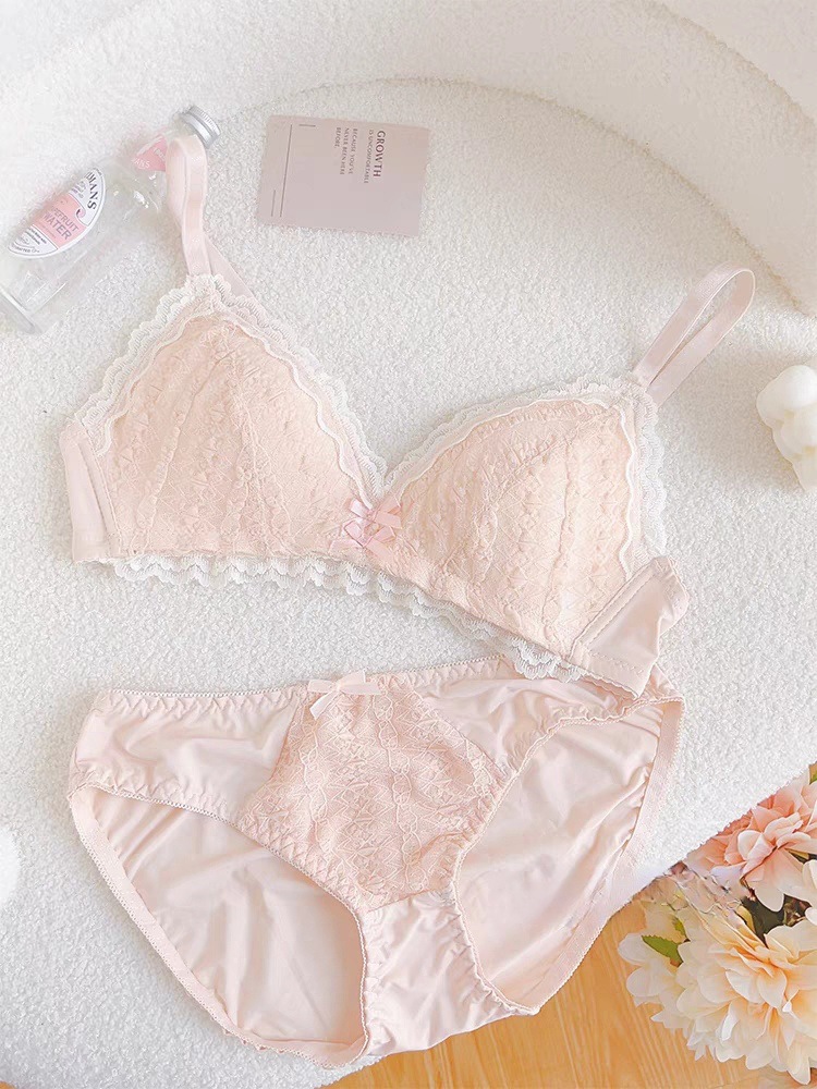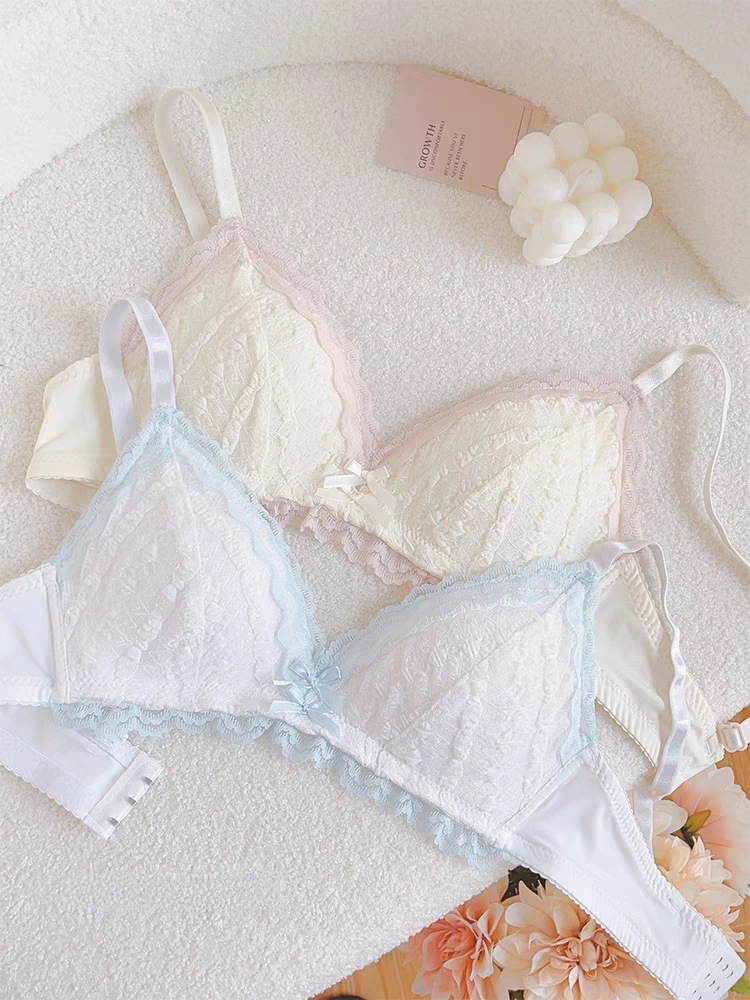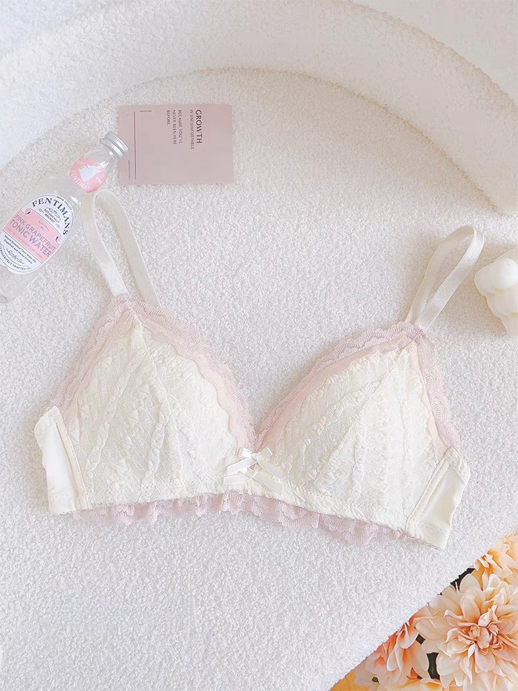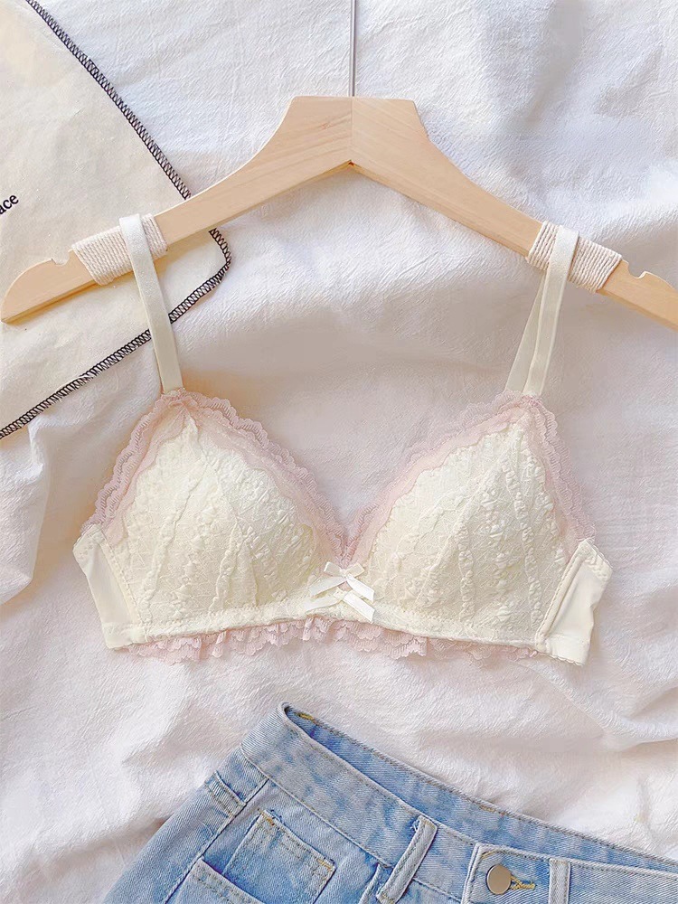 소녀 속옷 연인 버블 레이스 스틸 링 없음 귀여운 섹시한 달콤한 욕망 브래지어 세트 작은 가슴 위로 편안한 여성