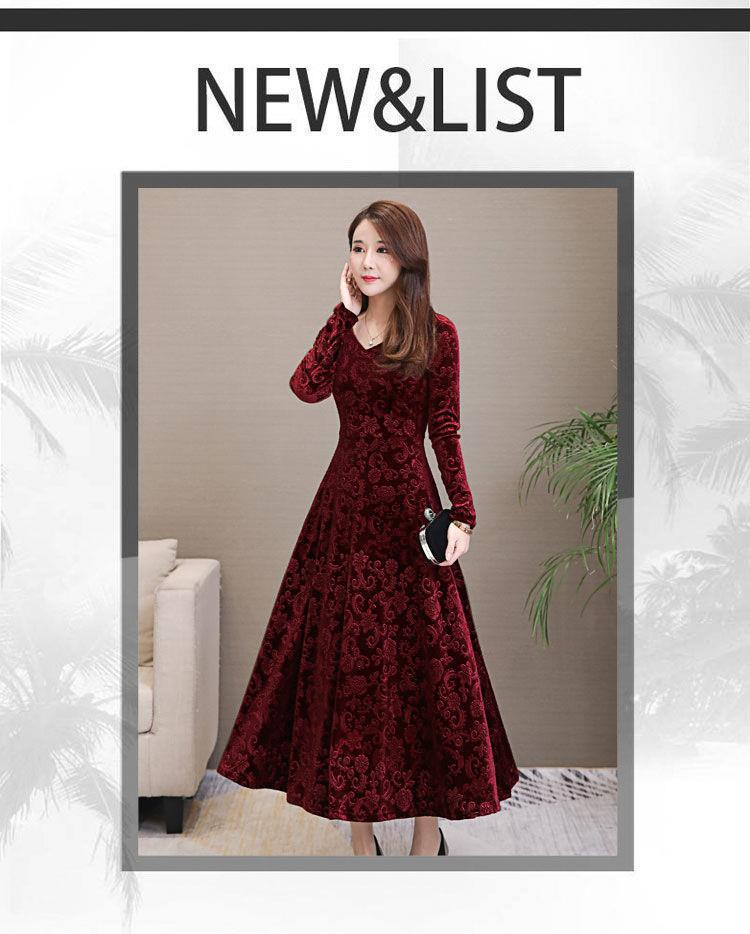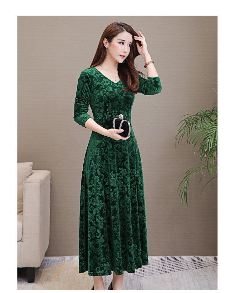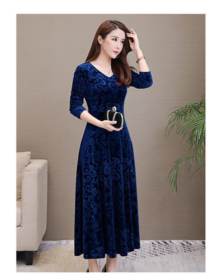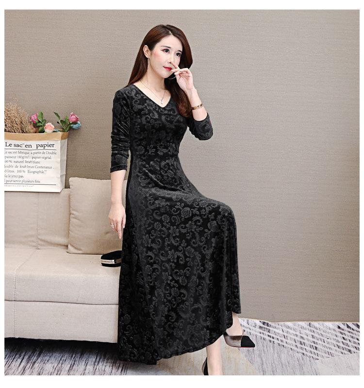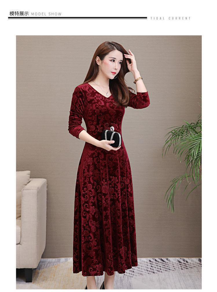 재고 있음 2024 봄, 가을 새로운 스타일 슬림핏 스커트 플러스 사이즈 여성 골드 벨벳 긴팔 드레스 롱 스타일스토어 가기