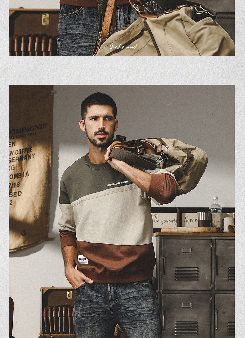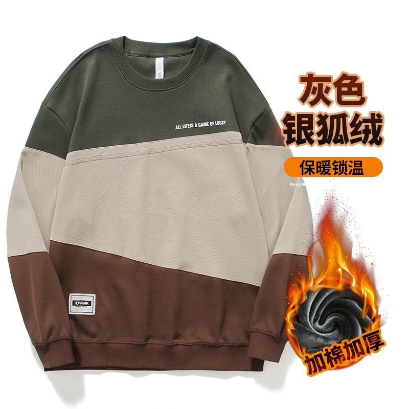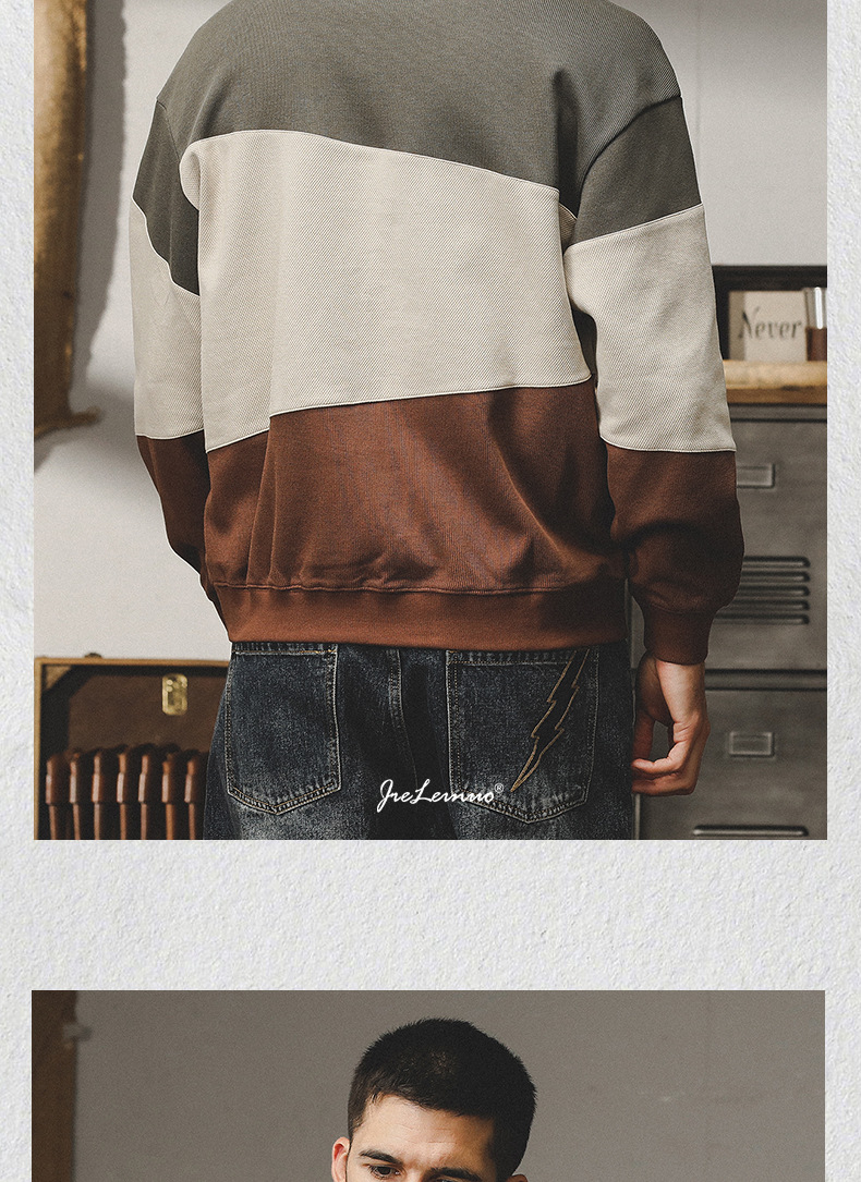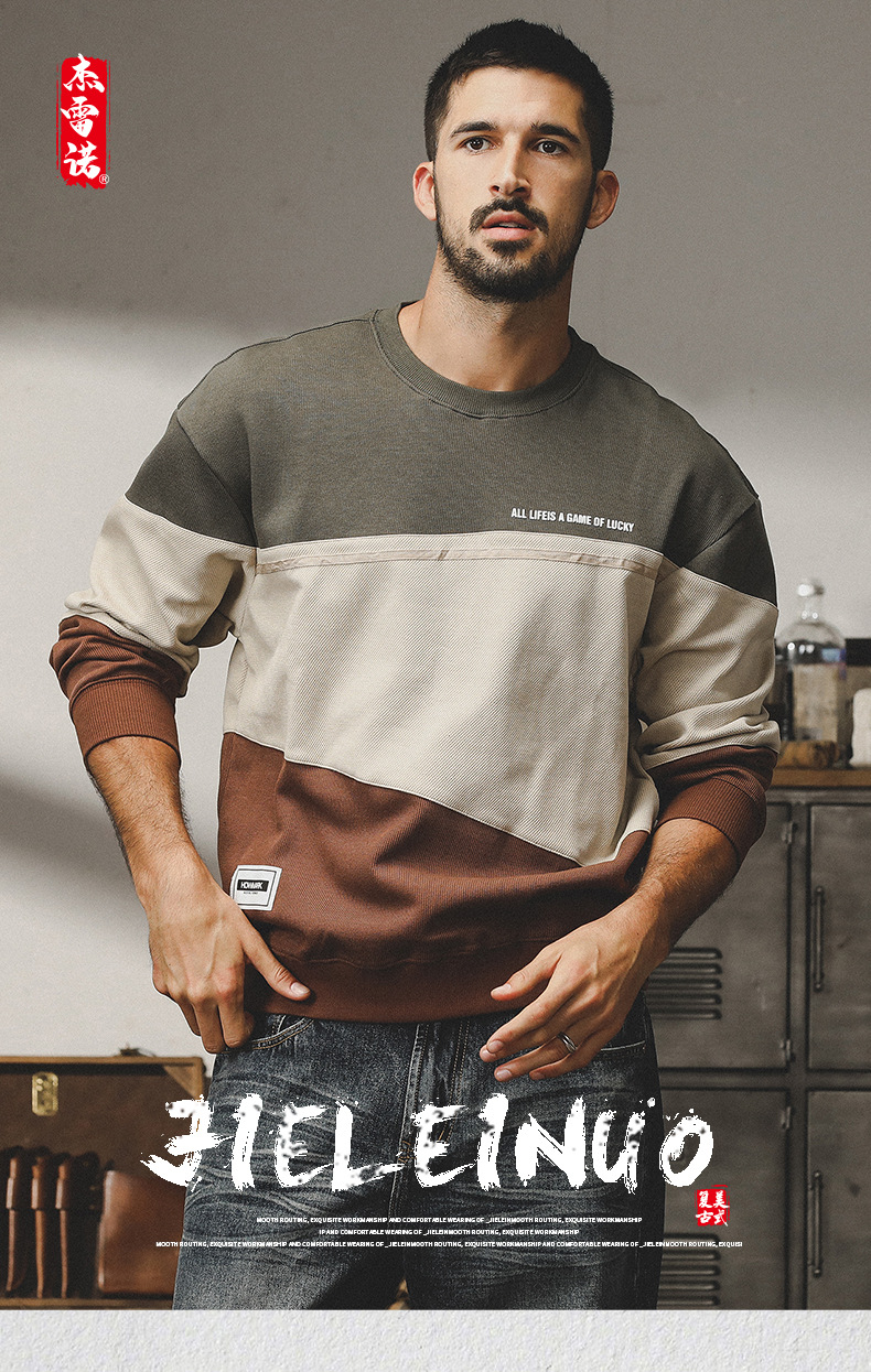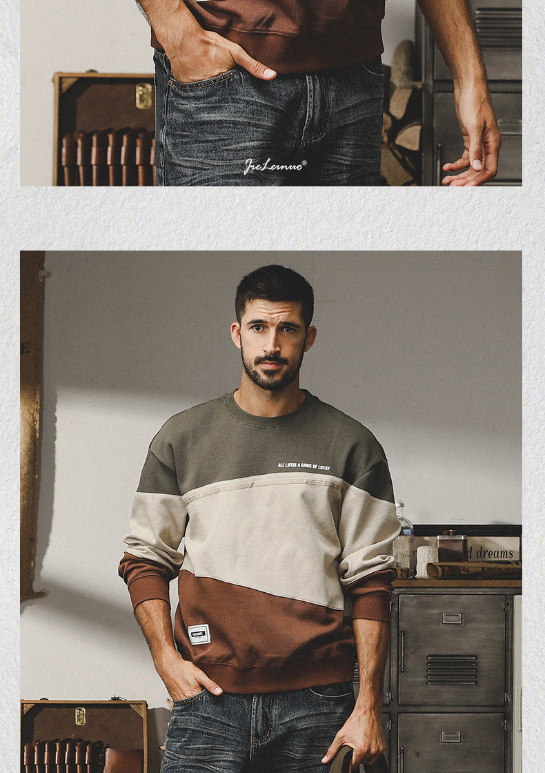 Jereno 330g 무거운 미국 기모 스웨터 남성 가을과 겨울 느슨한 패션 브랜드 대비 컬러 긴 소매 티셔츠 탑스토어 가기