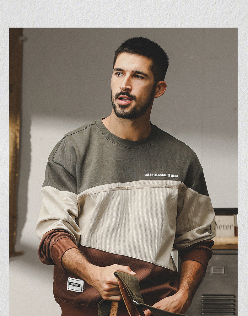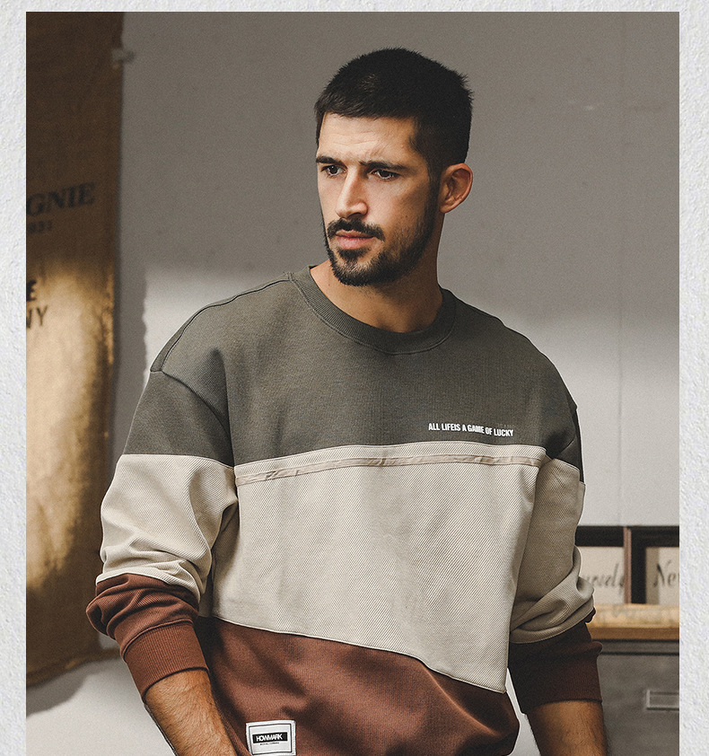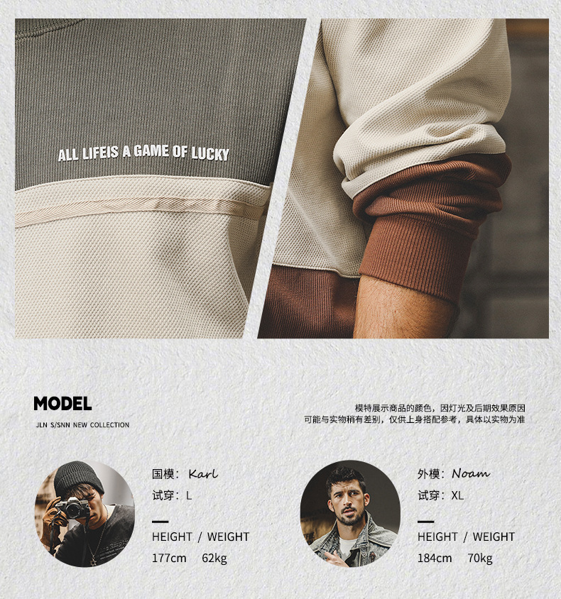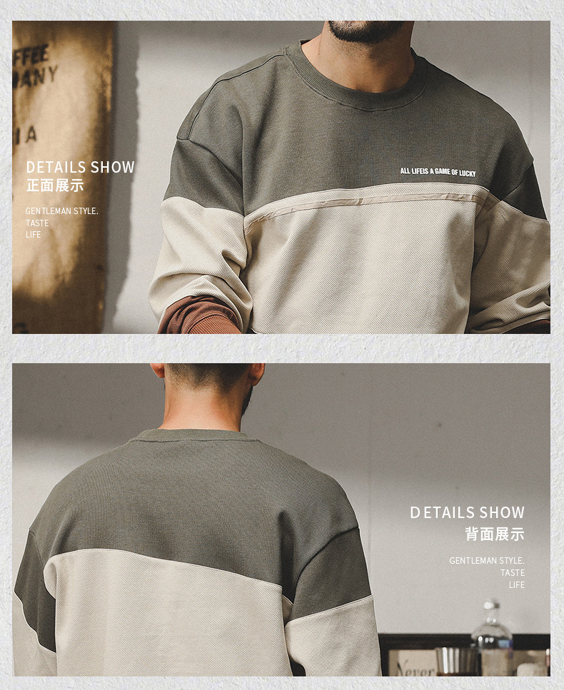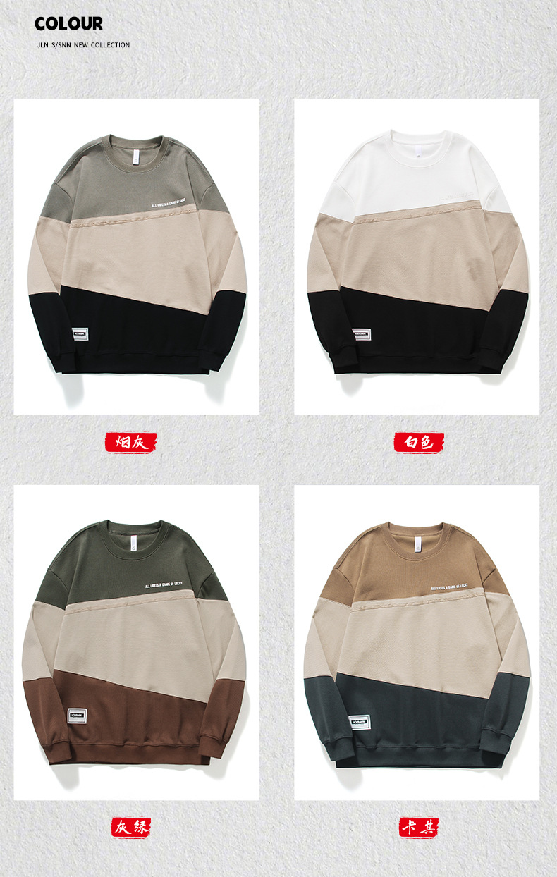 Jereno 330g 무거운 미국 기모 스웨터 남성 가을과 겨울 느슨한 패션 브랜드 대비 컬러 긴 소매 티셔츠 탑스토어 가기