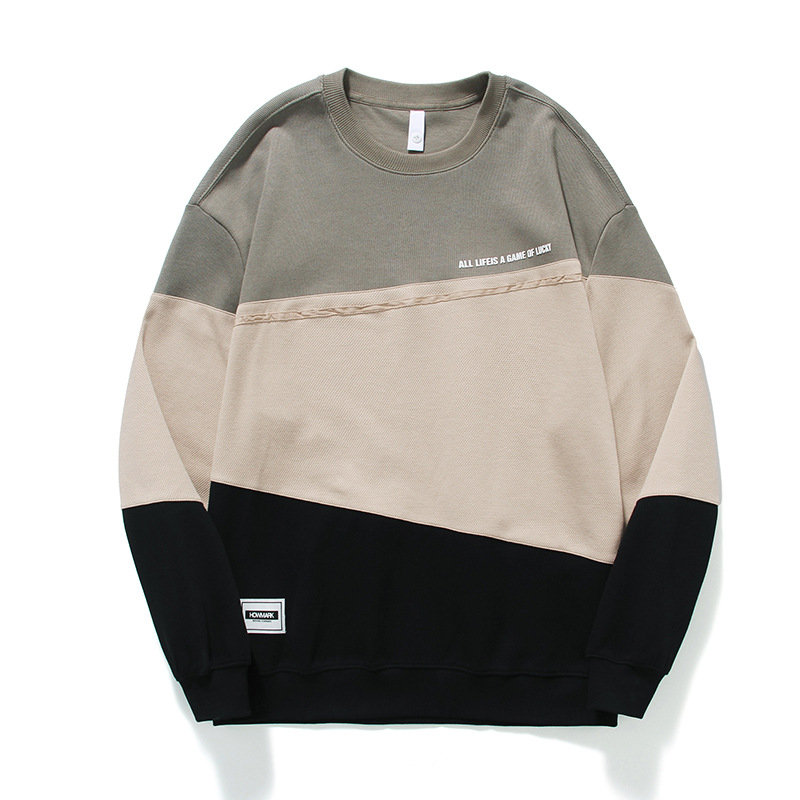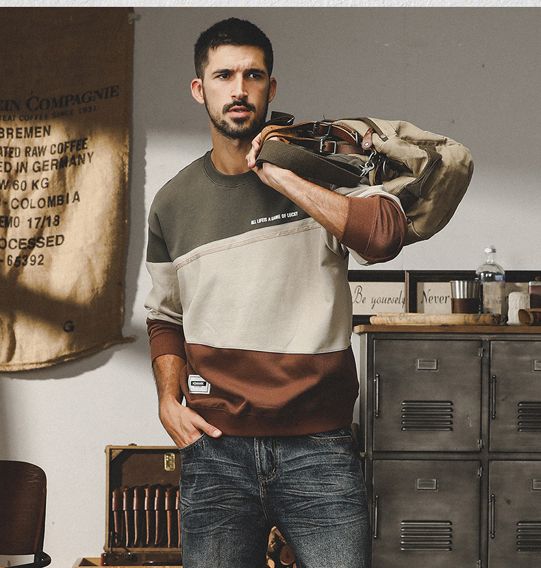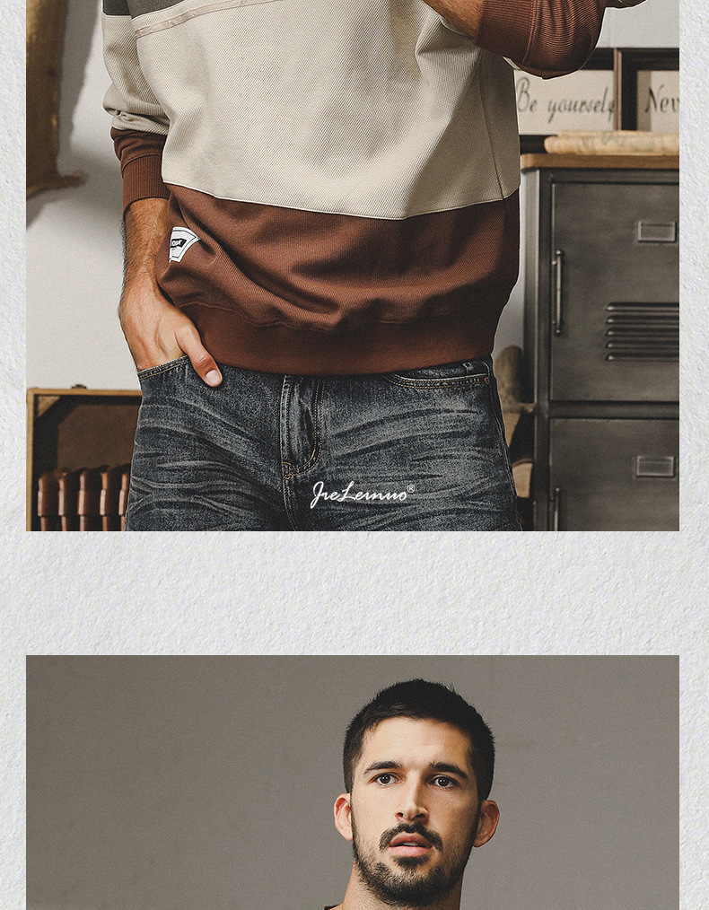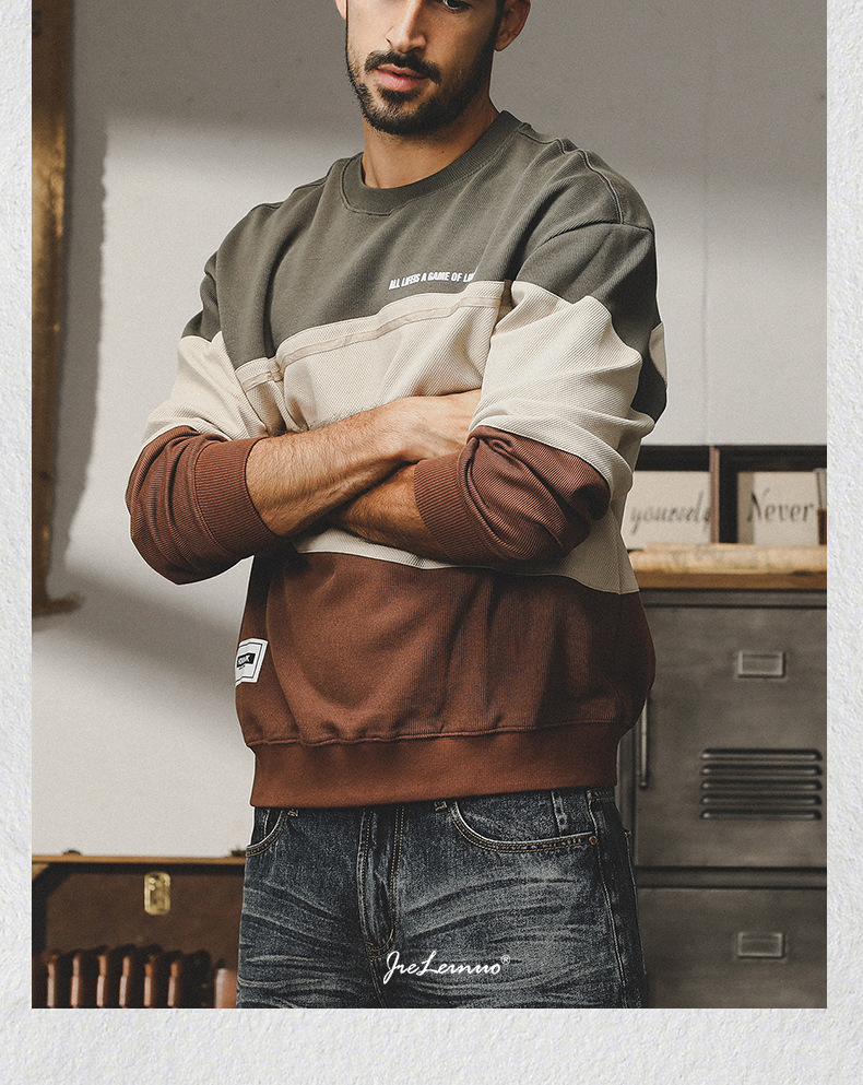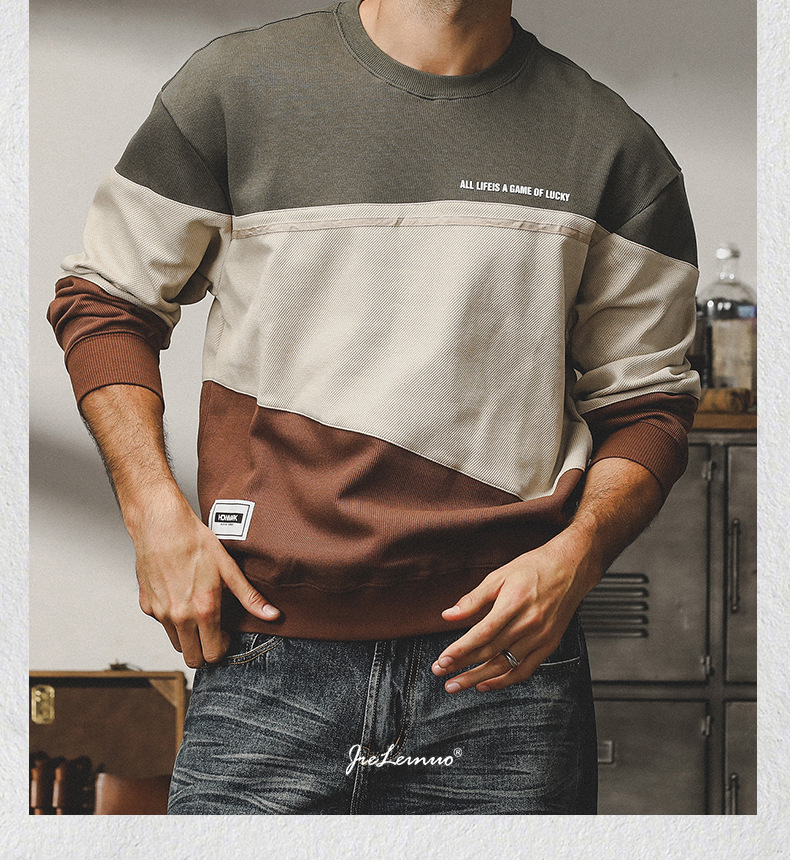 Jereno 330g 무거운 미국 기모 스웨터 남성 가을과 겨울 느슨한 패션 브랜드 대비 컬러 긴 소매 티셔츠 탑