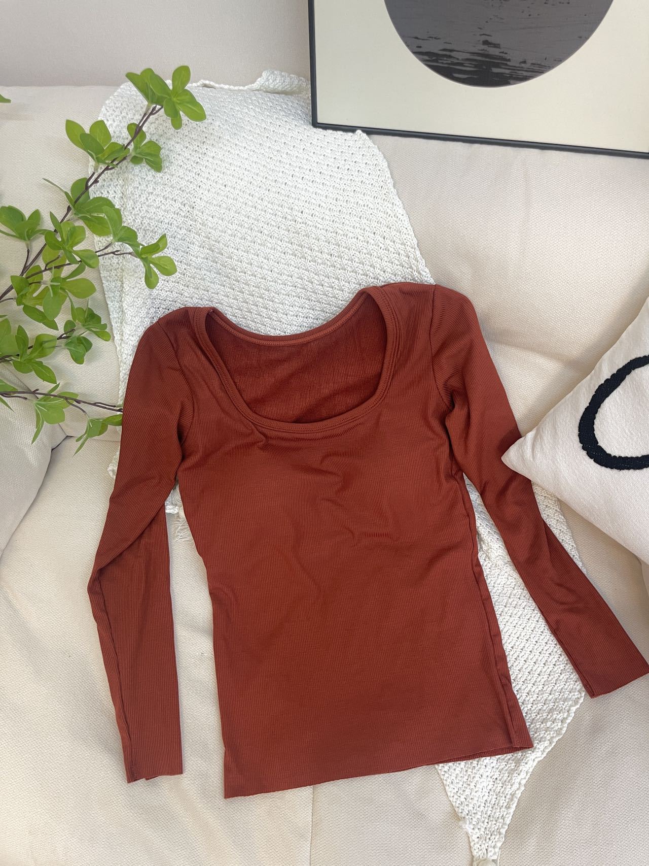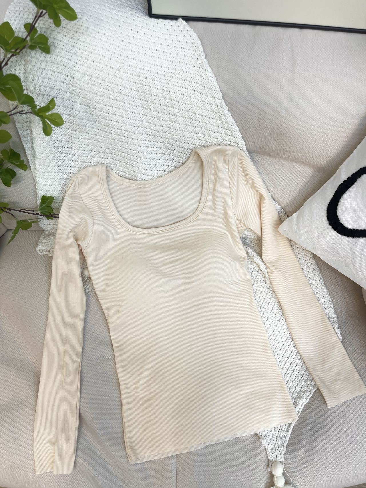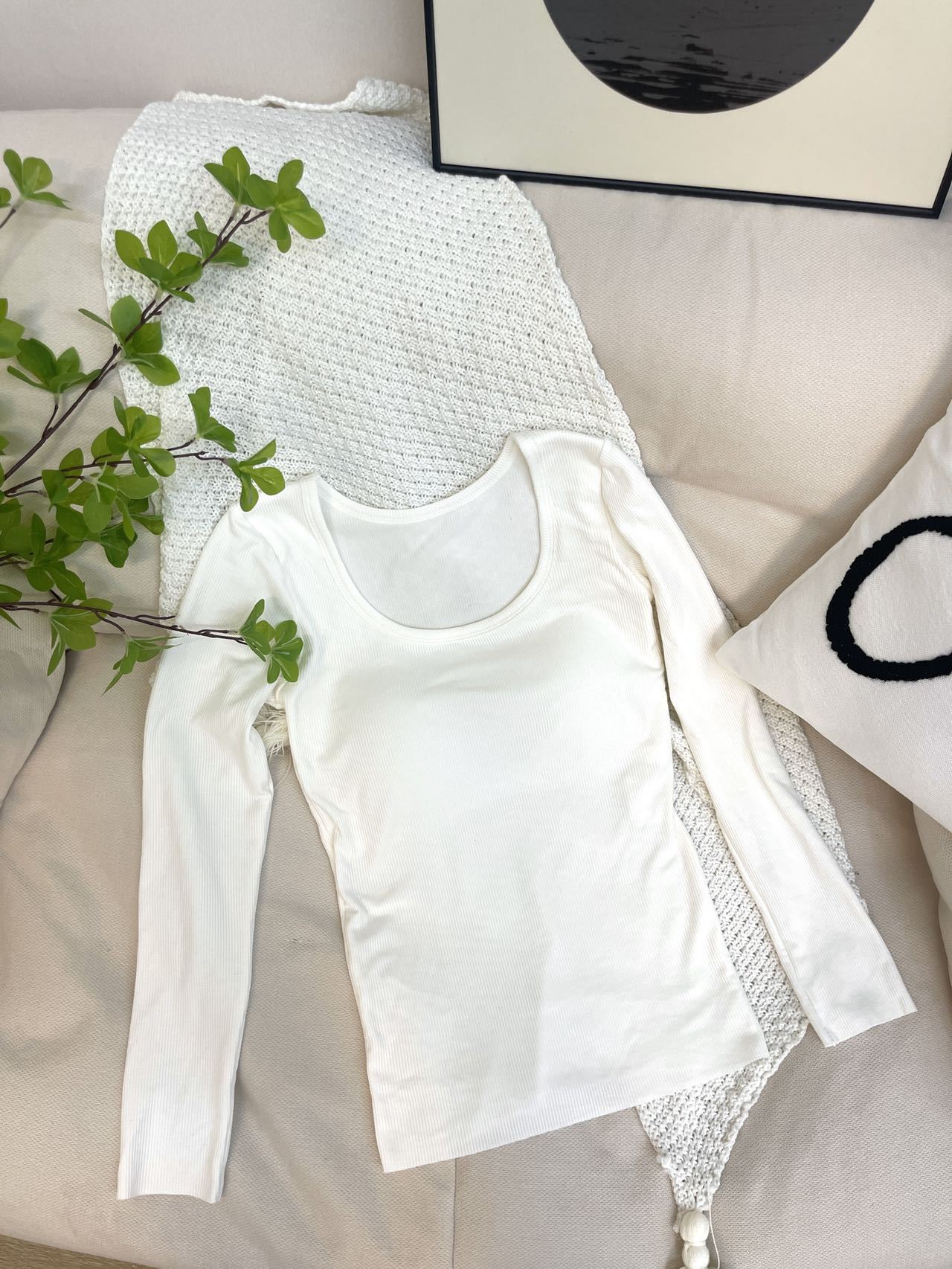 여성용 베이스 레이어 2025 가을 겨울 신작 기모 U 넥 긴팔 티셔츠 슬림핏 내부 스퀘어 넥 가슴 패드가있는 따뜻한 탑스토어 가기