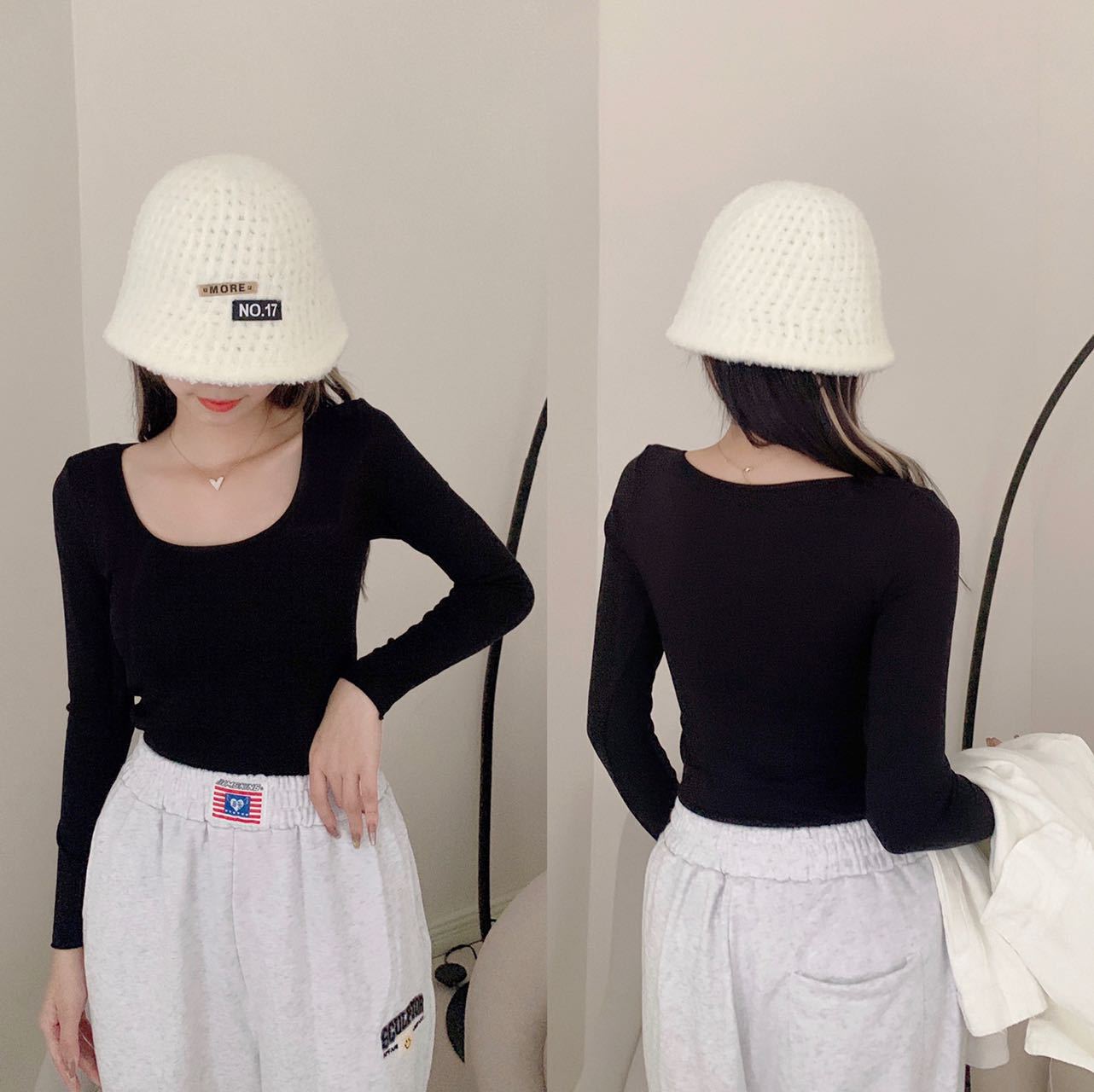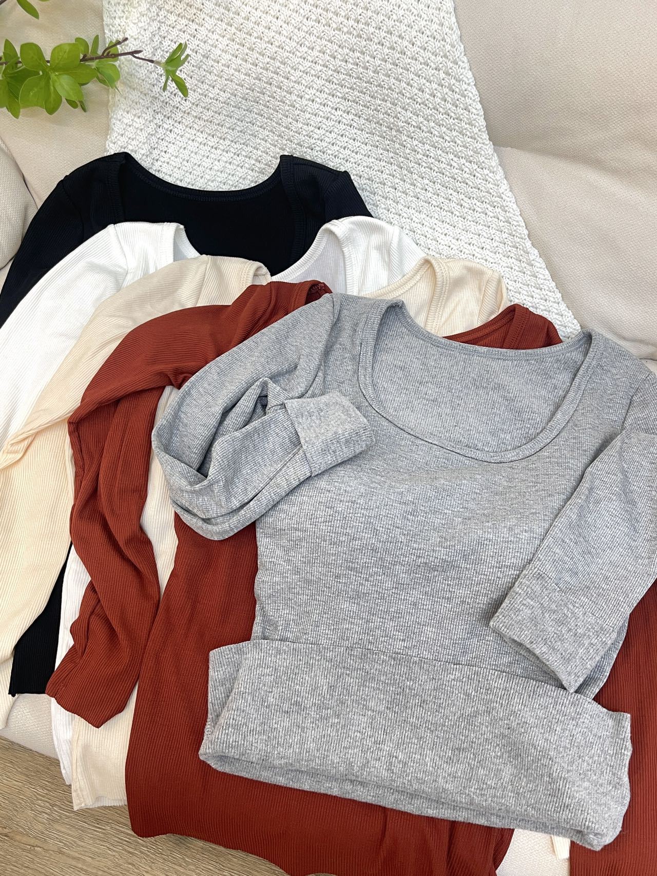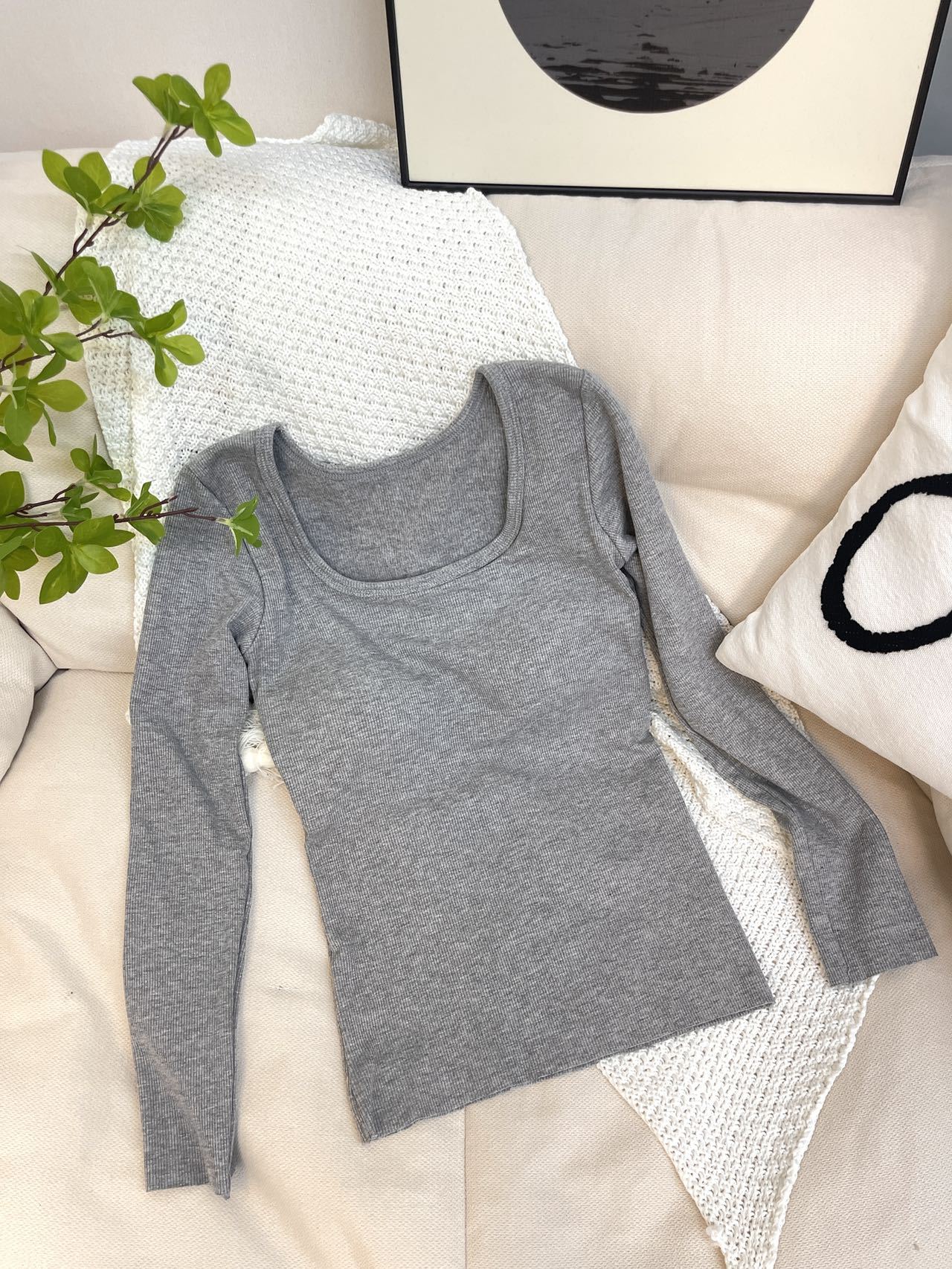 여성용 베이스 레이어 2025 가을 겨울 신작 기모 U 넥 긴팔 티셔츠 슬림핏 내부 스퀘어 넥 가슴 패드가있는 따뜻한 탑스토어 가기