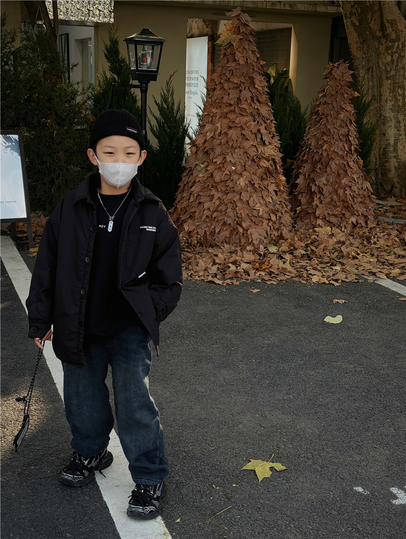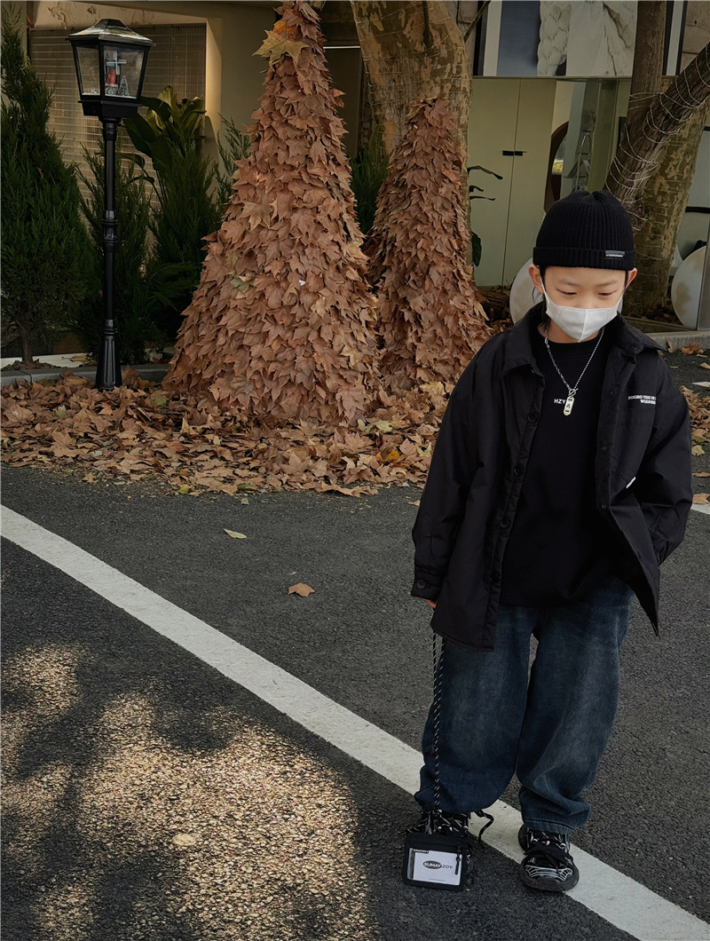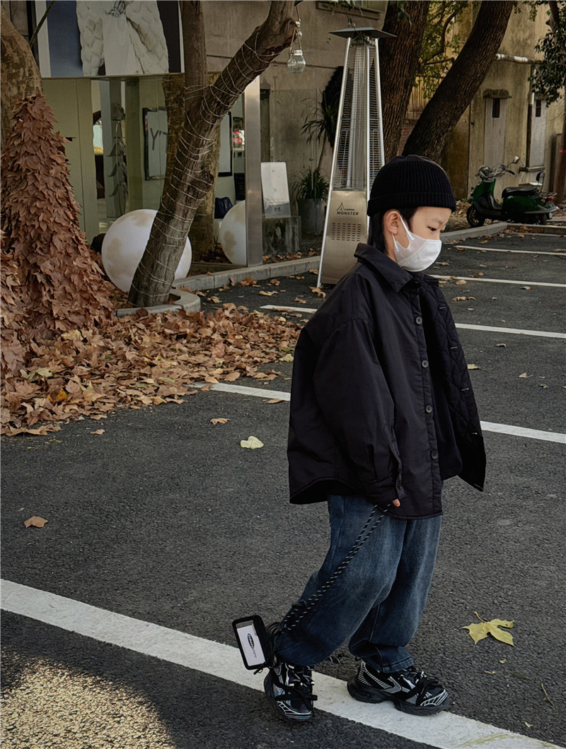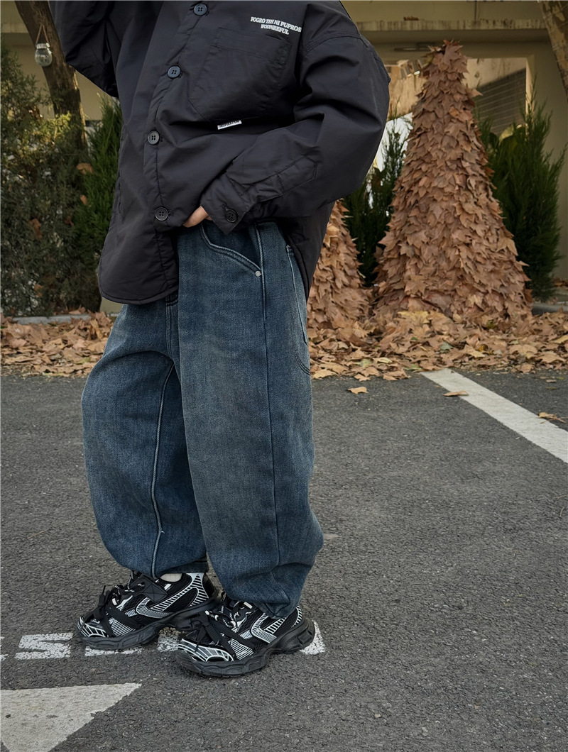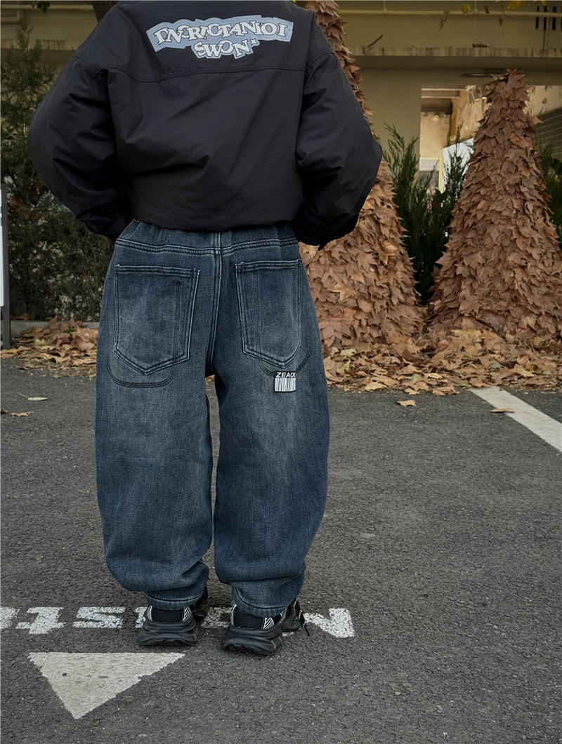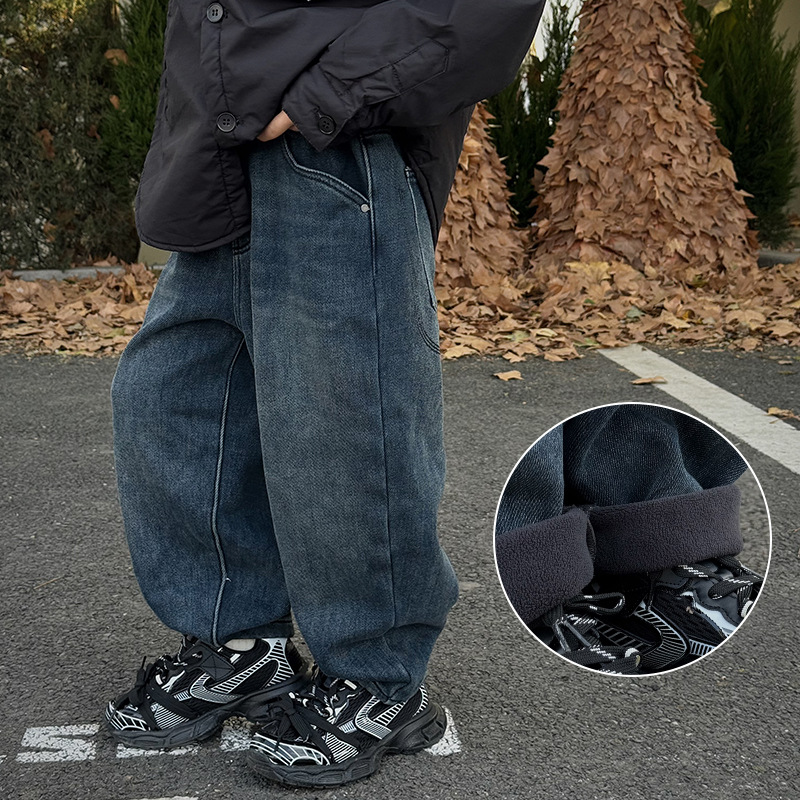Baoduo 아동복 소년 기모 바지 2023 겨울 아기 느슨한 바지를 두껍게 한 어린이 한국식 세련된 청바지스토어 가기