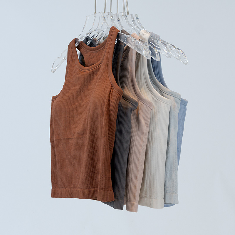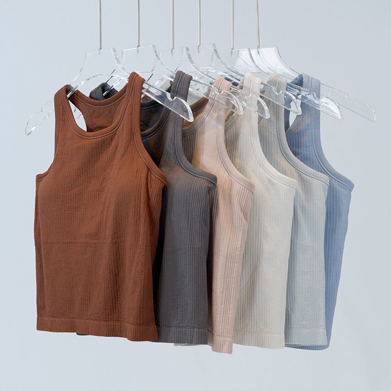 Lulu 요가 의류 스포츠 조끼 니트 원활한 I 자형 뷰티 스트랩 가슴 패드 타이트한 여성용 겉옷 높은 탄성 라벨