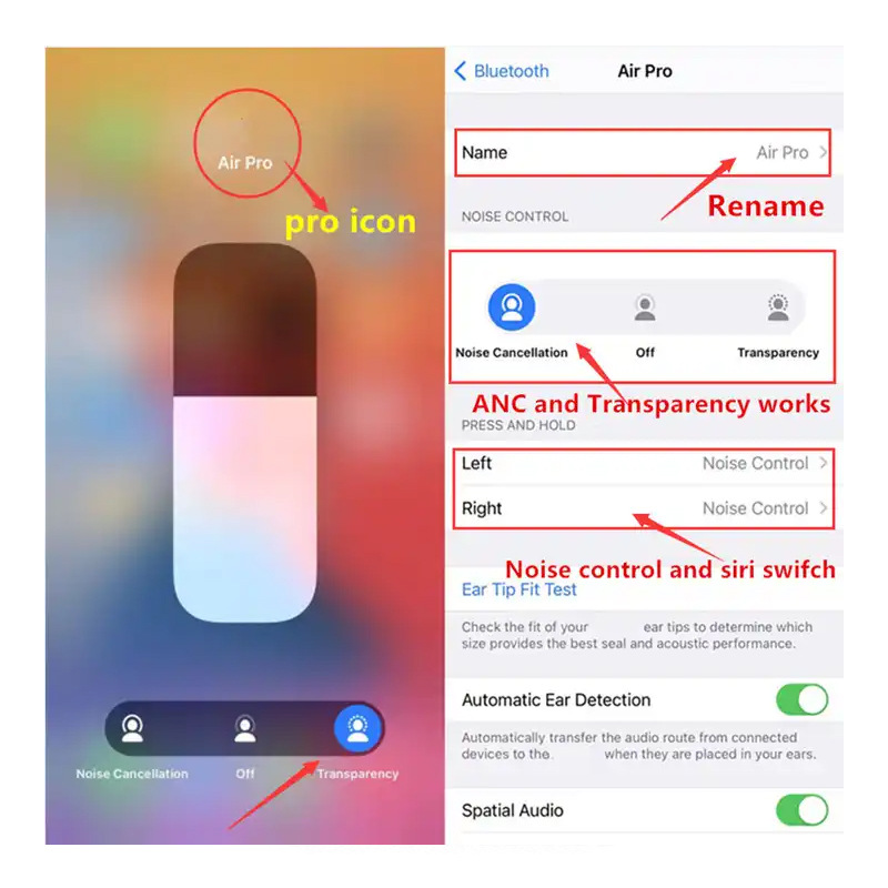 국경 간 Airpro Loda 1562A 2 세대 및 3 세대 무선 블루투스 헤드셋 5 세대 pro2 소음 감소 포드