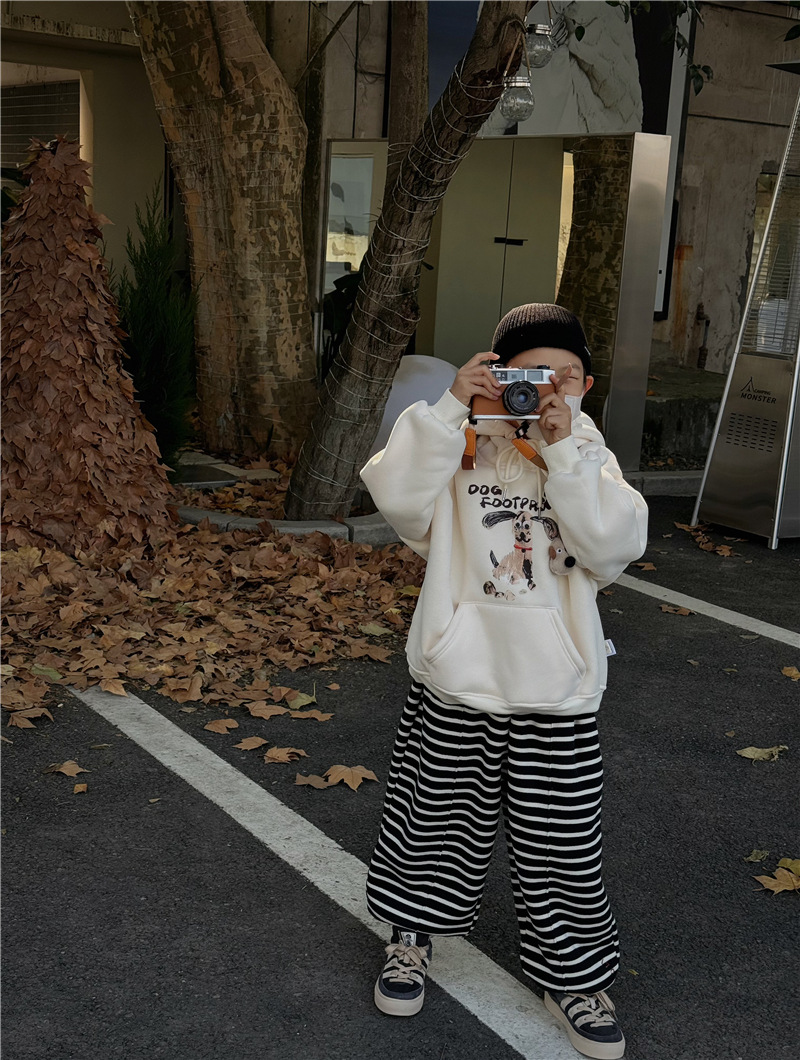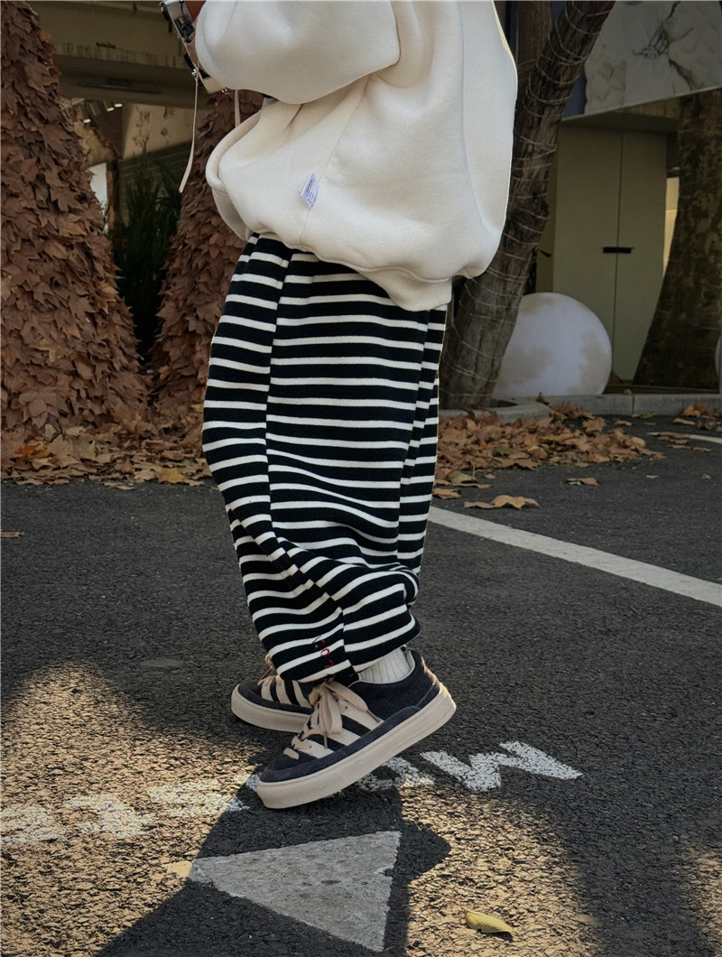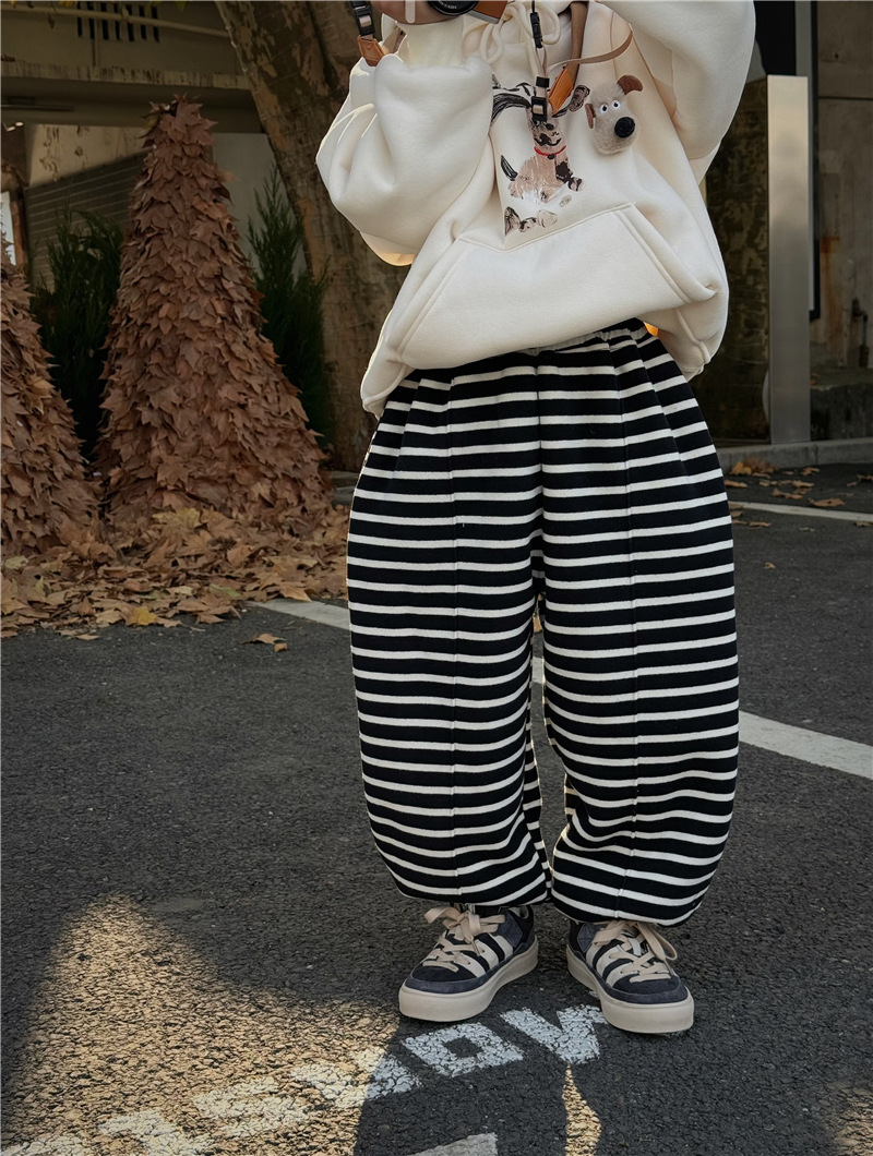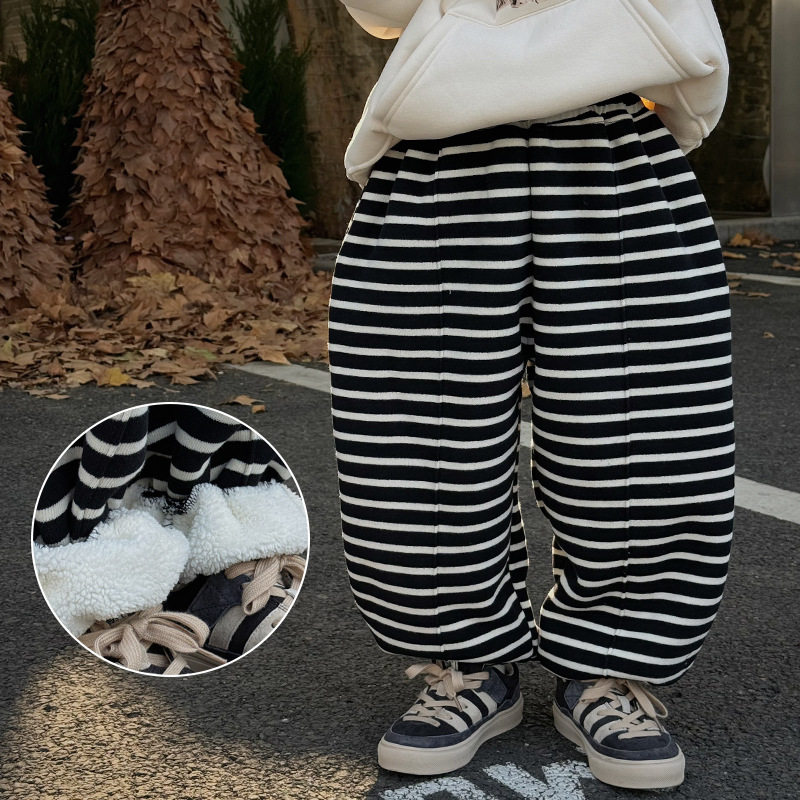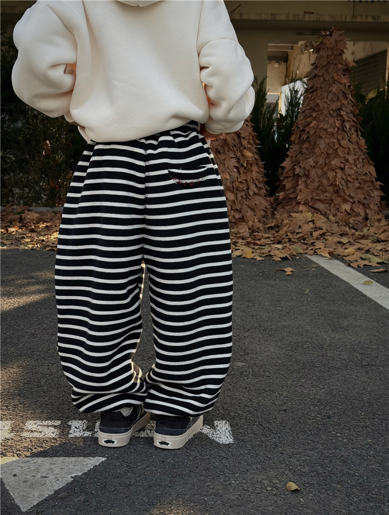 Baoduo 아동복 소년 바지 겨울 새로운 기모 느슨한 어린이 바지 람스울 두껍게 한국식 스포츠 바지