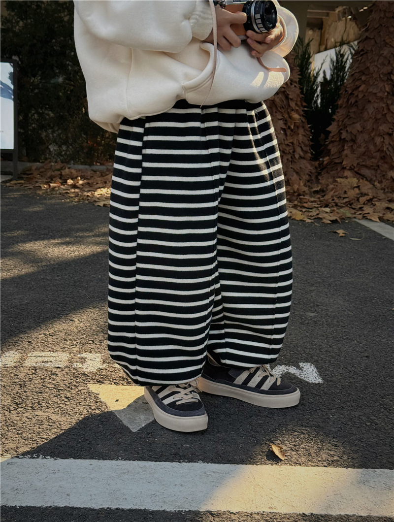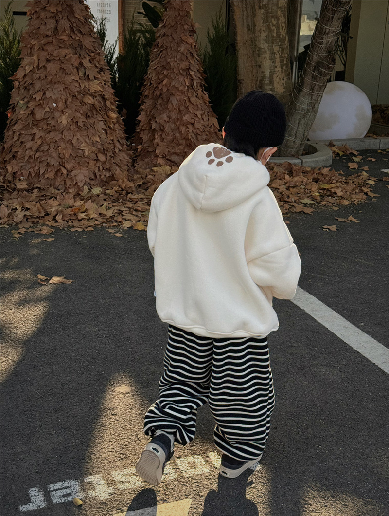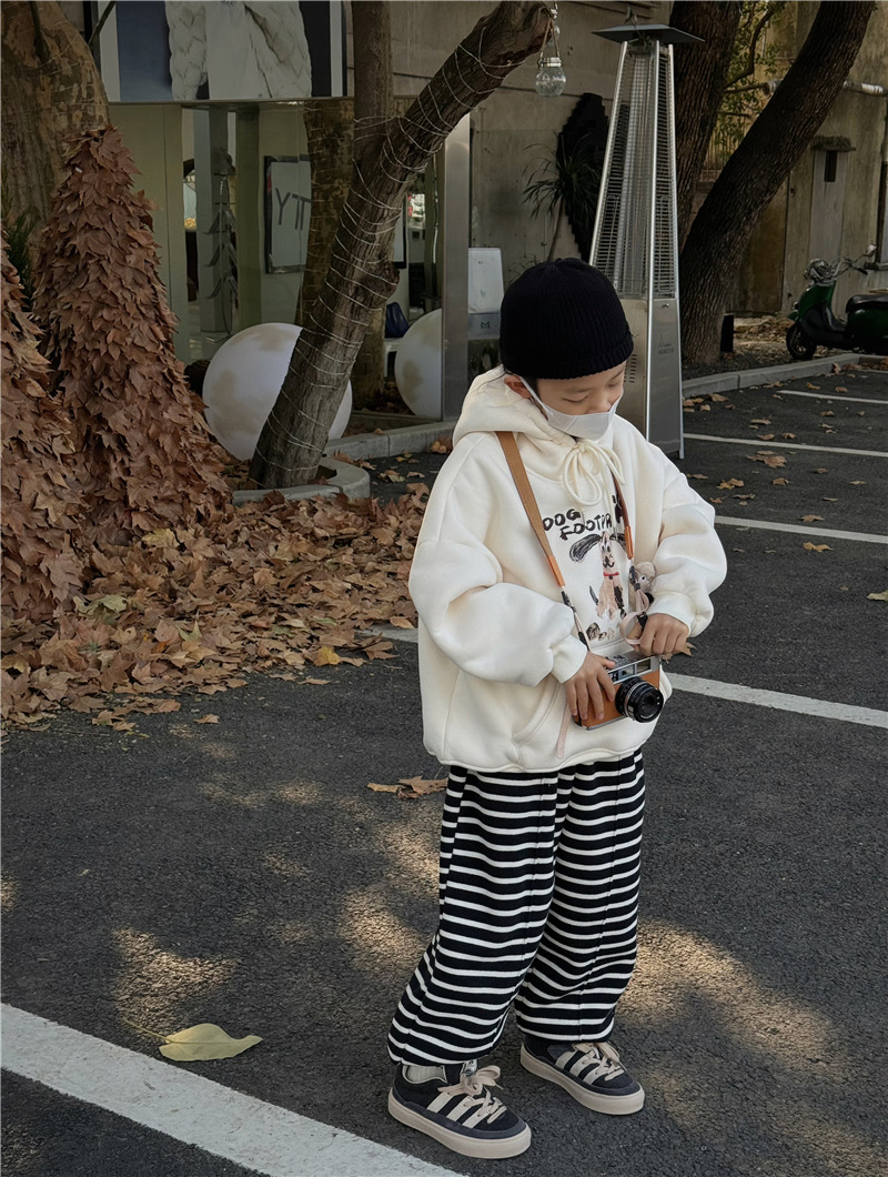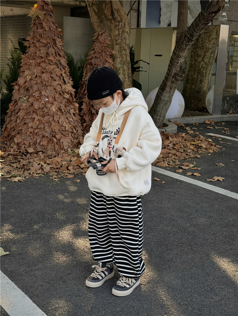 Baoduo 아동복 소년 바지 겨울 새로운 기모 느슨한 어린이 바지 람스울 두껍게 한국식 스포츠 바지