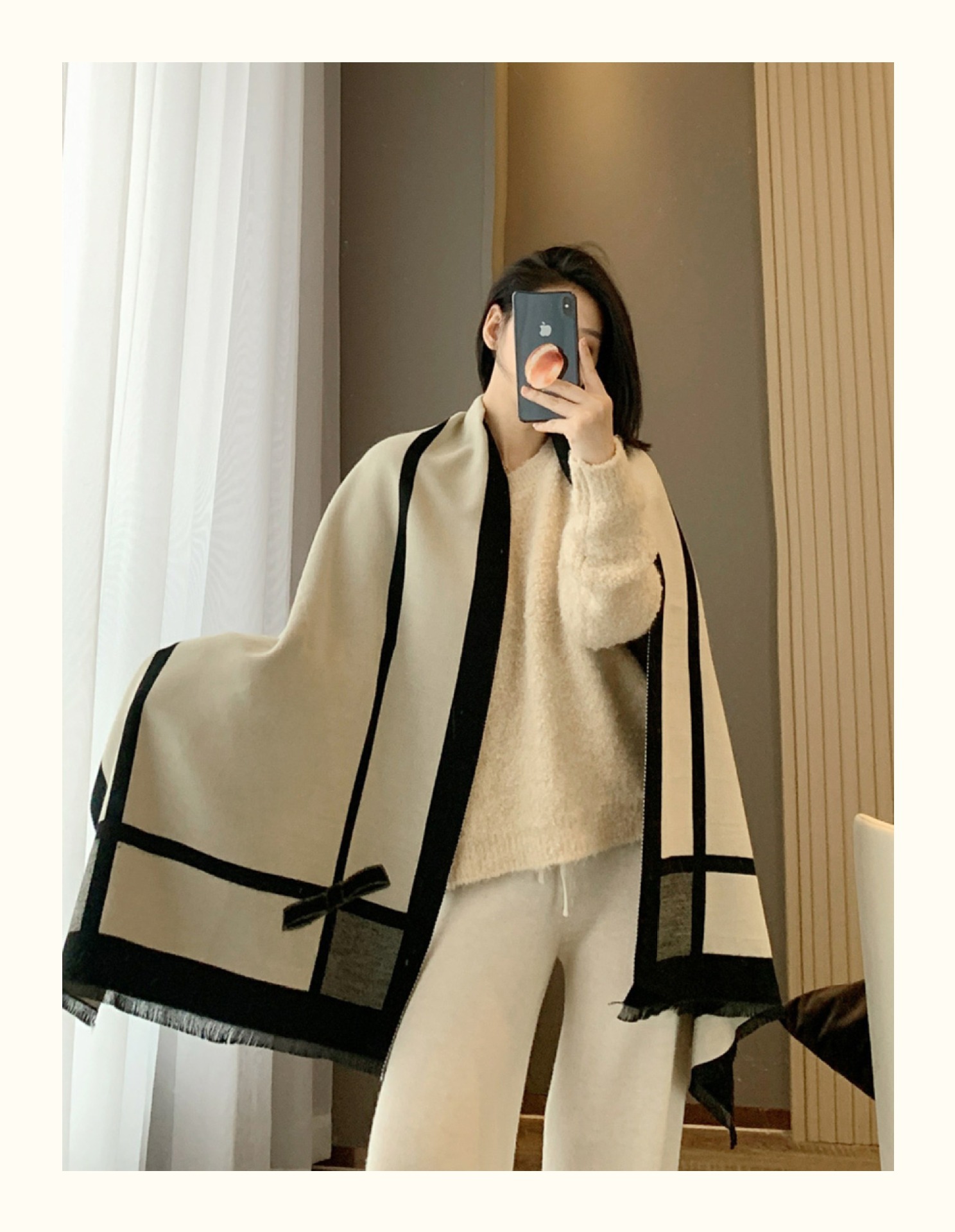 气质蝴蝶结围巾女冬季披肩两用韩版百搭仿羊绒双面加厚长款围脖
