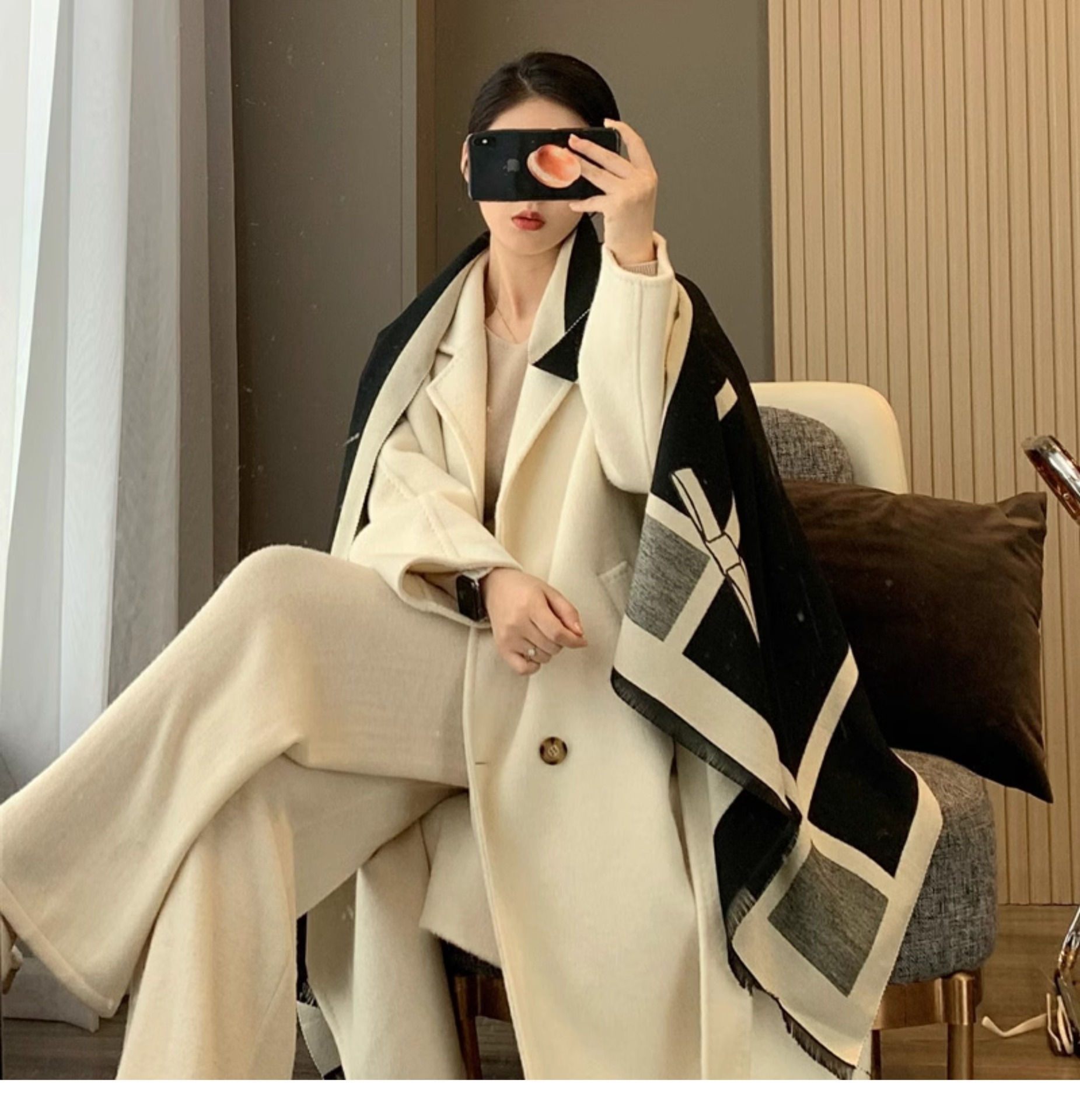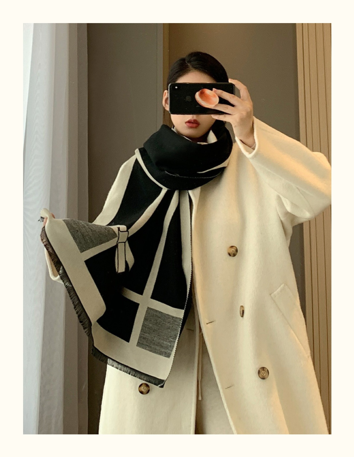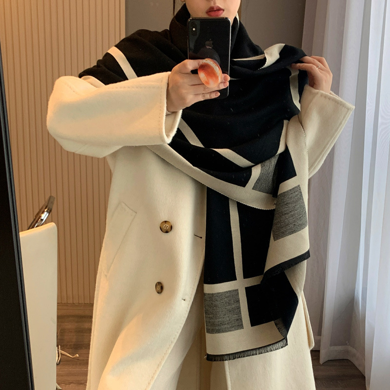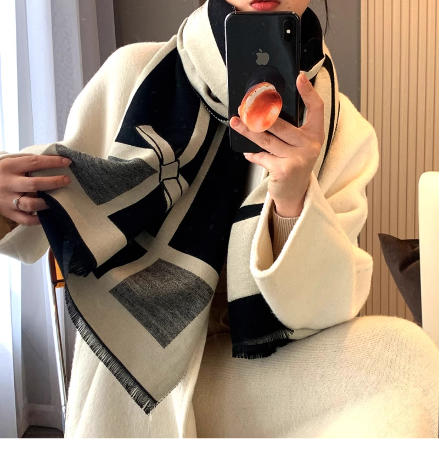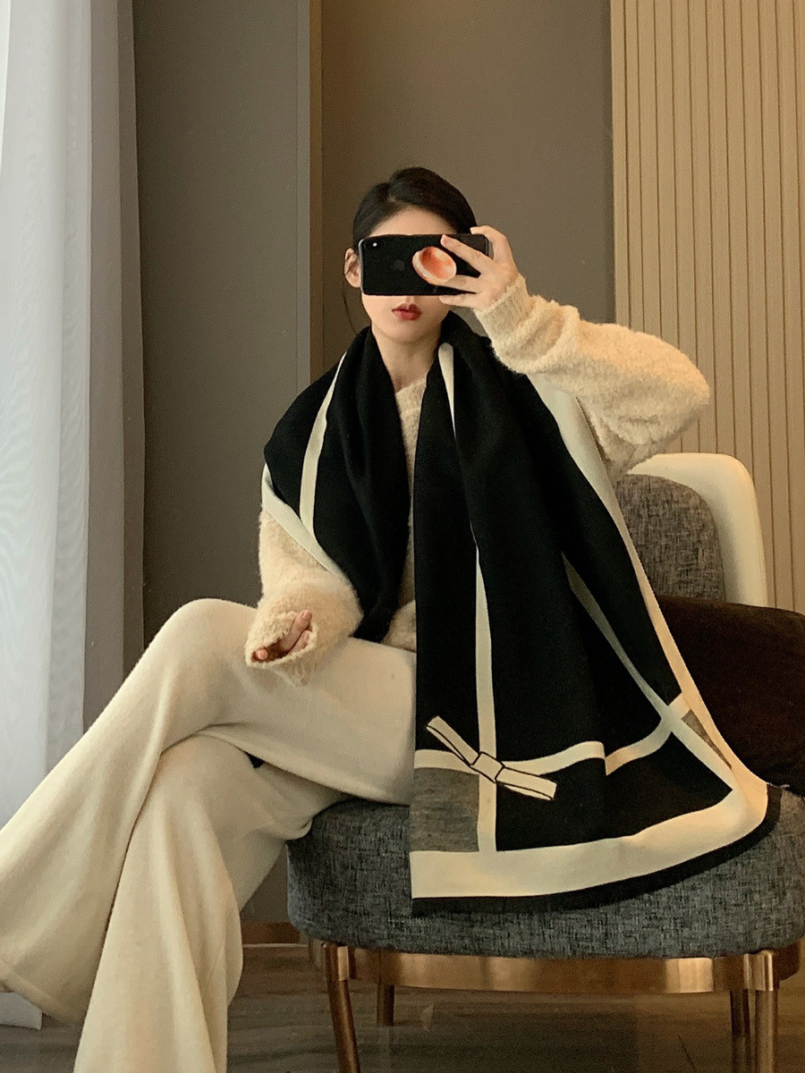 우아한 활 스카프 여자 겨울 목도리 듀얼 사용 한국식 올매치 캐시미어 양면 두꺼운 긴 스카프스토어 가기