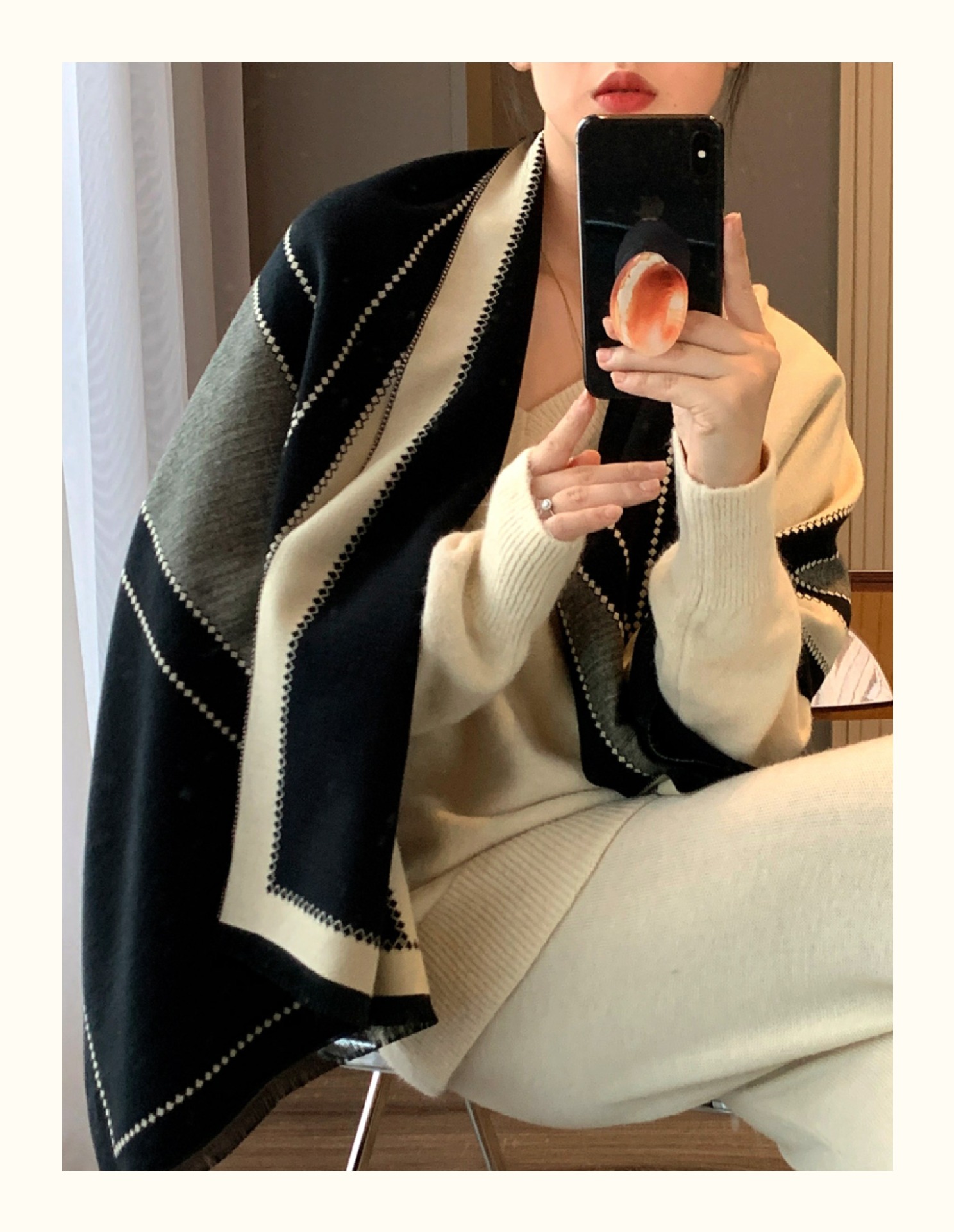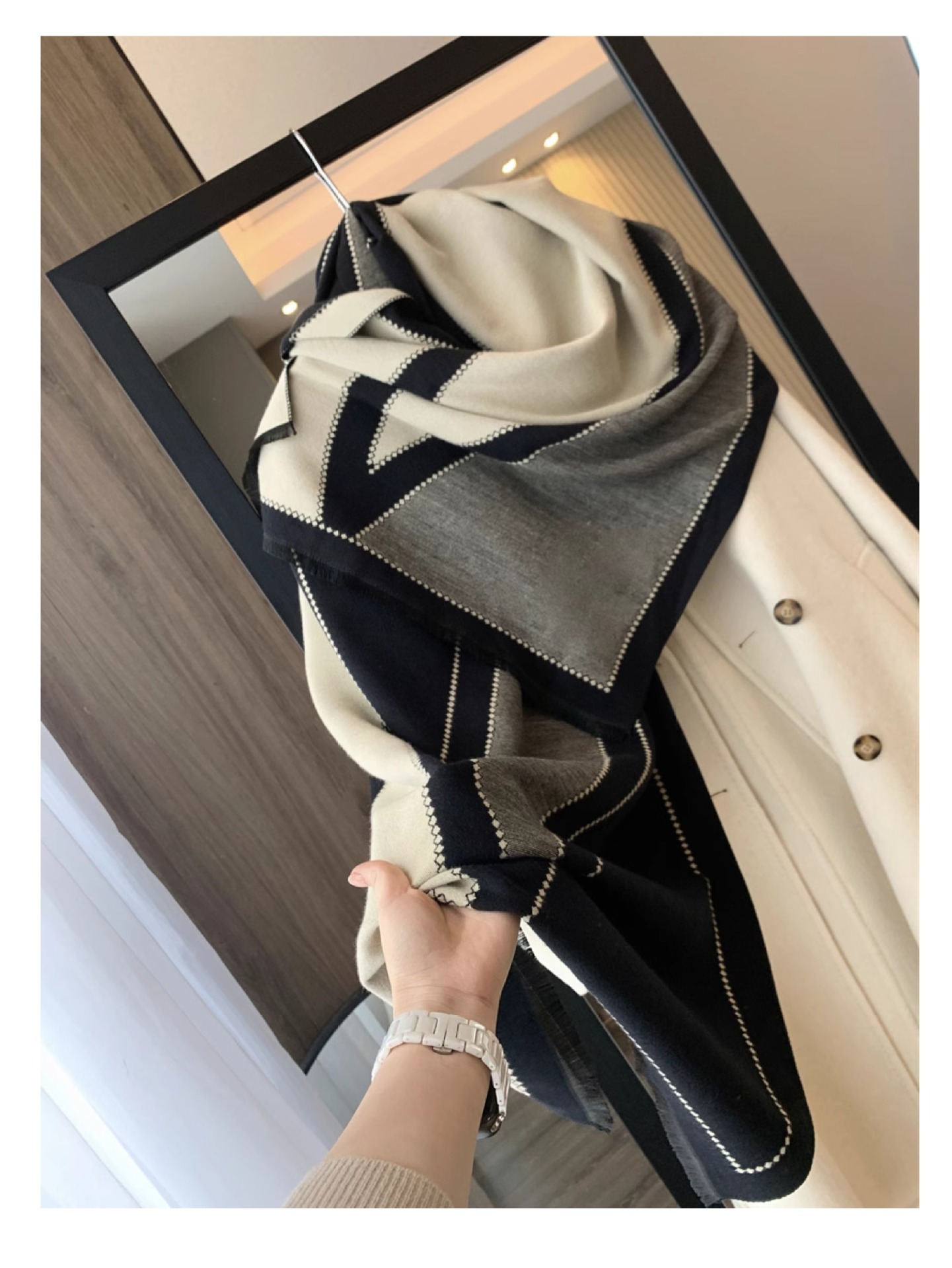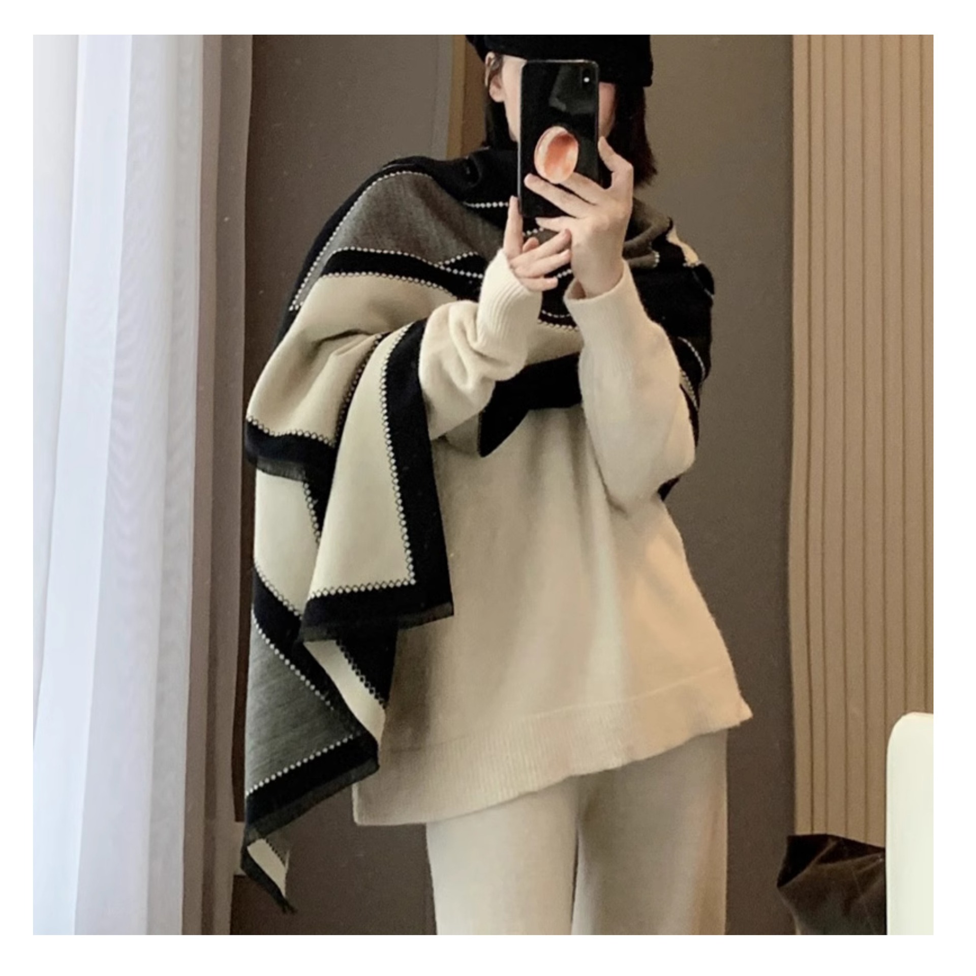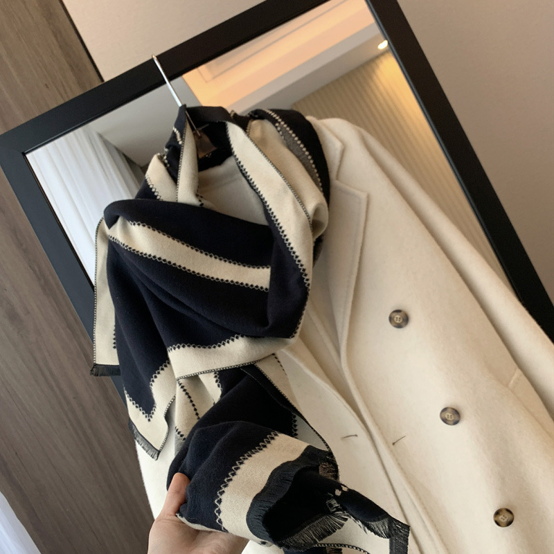 우아한 활 스카프 여자 겨울 목도리 듀얼 사용 한국식 올매치 캐시미어 양면 두꺼운 긴 스카프스토어 가기