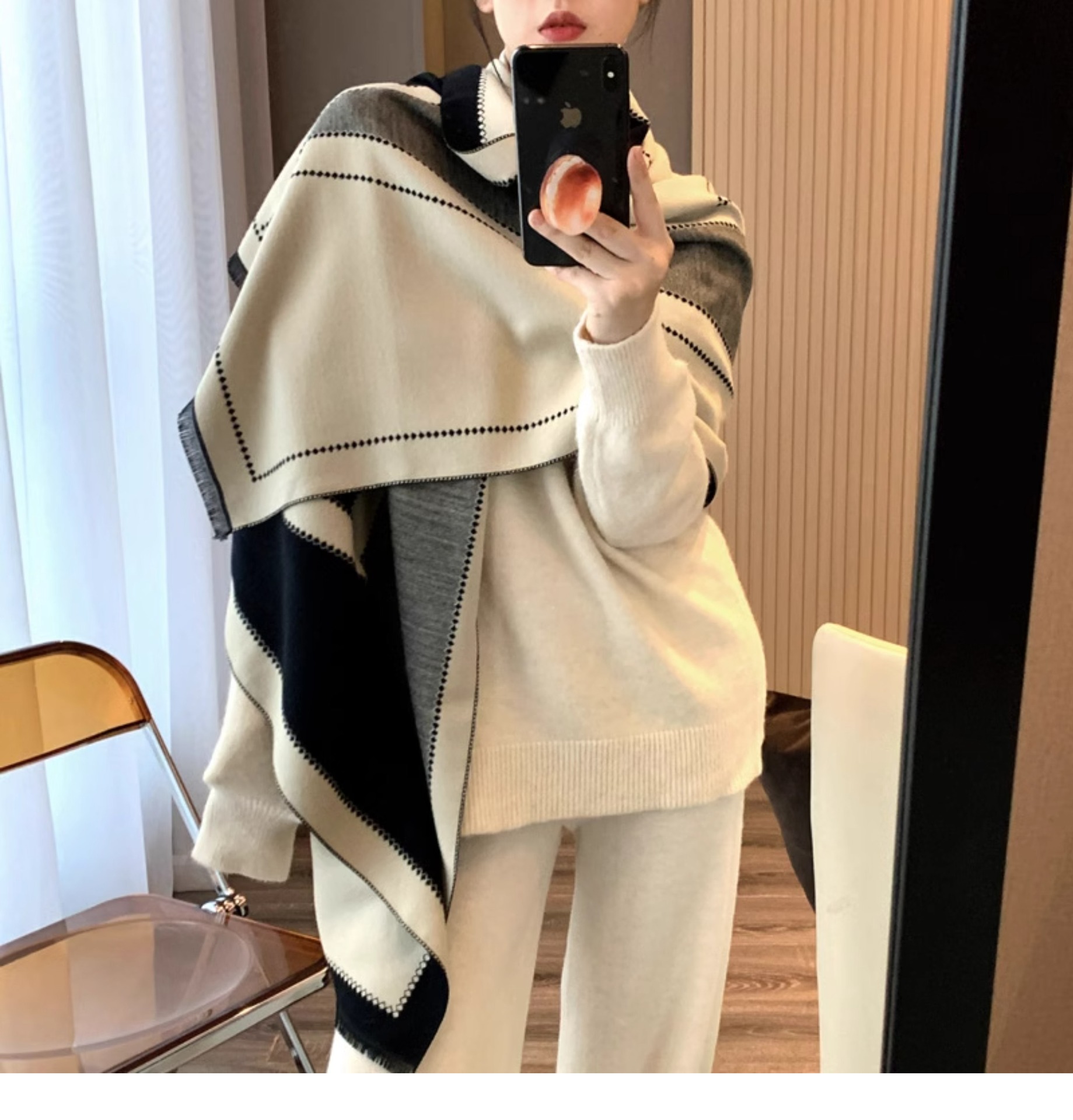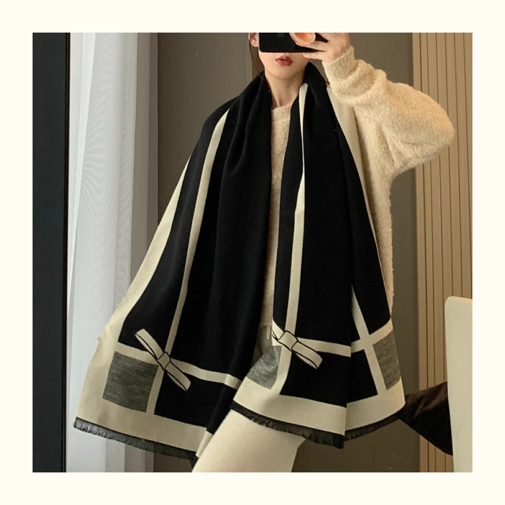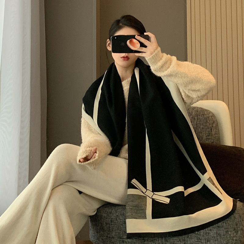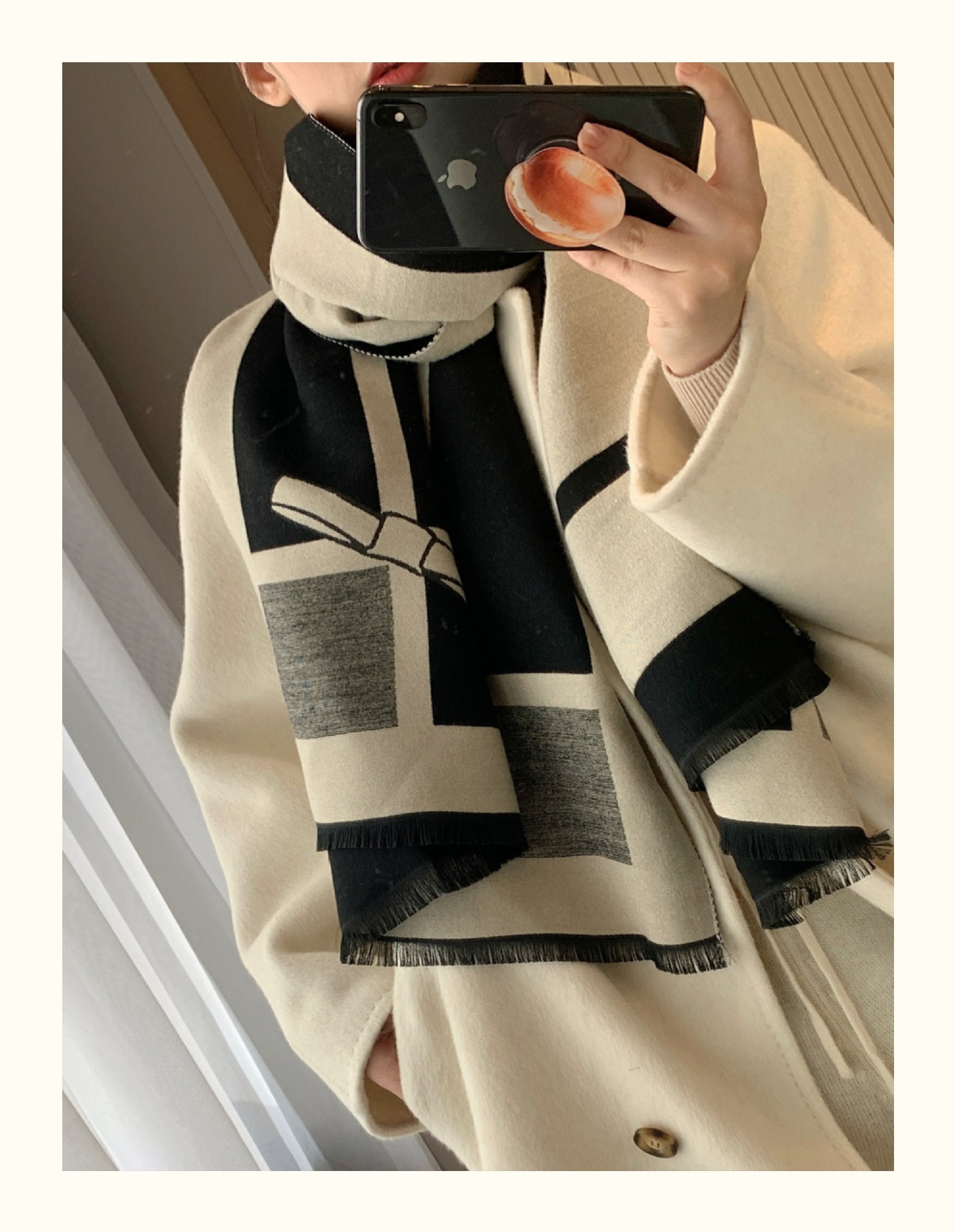 우아한 활 스카프 여자 겨울 목도리 듀얼 사용 한국식 올매치 캐시미어 양면 두꺼운 긴 스카프
