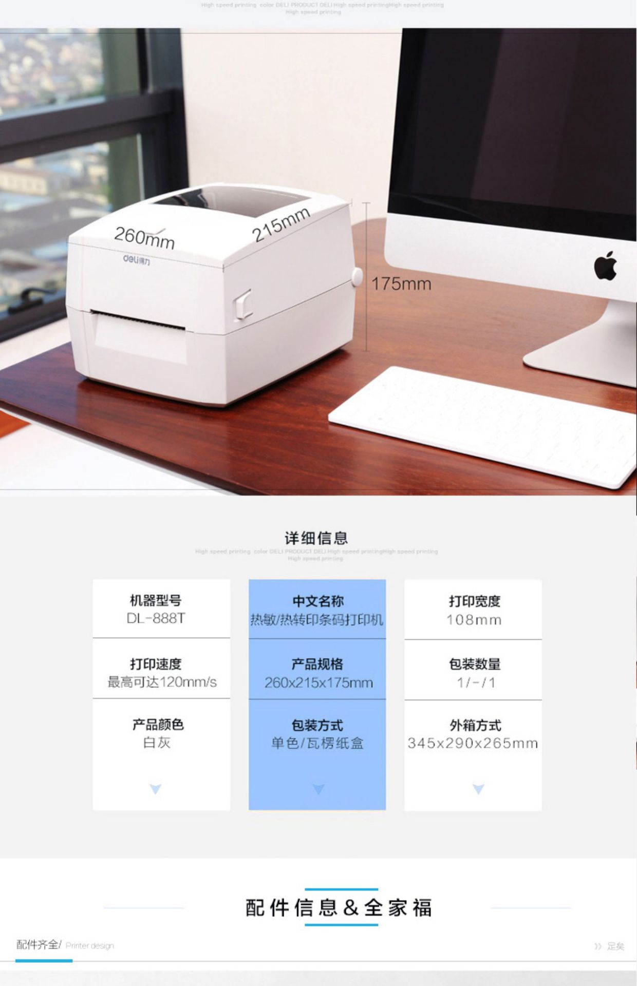 델리 DL-888T 바코드 프린터 자체 접착 구리 라벨 종이 eyoubao 국제 물류 전자 표면스토어 가기