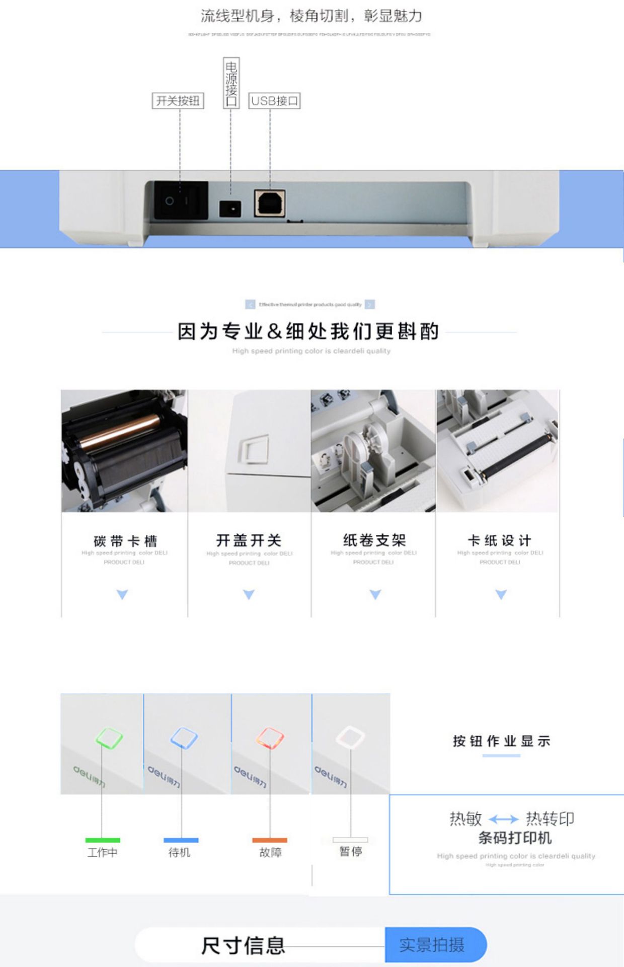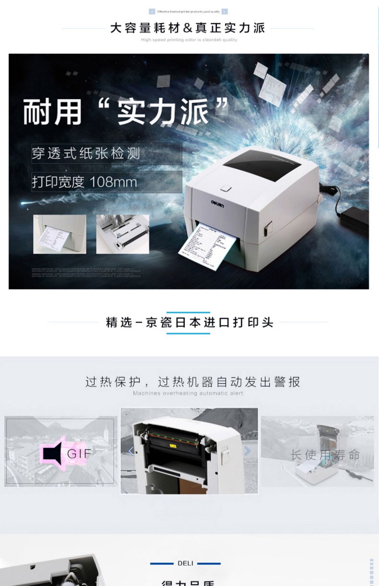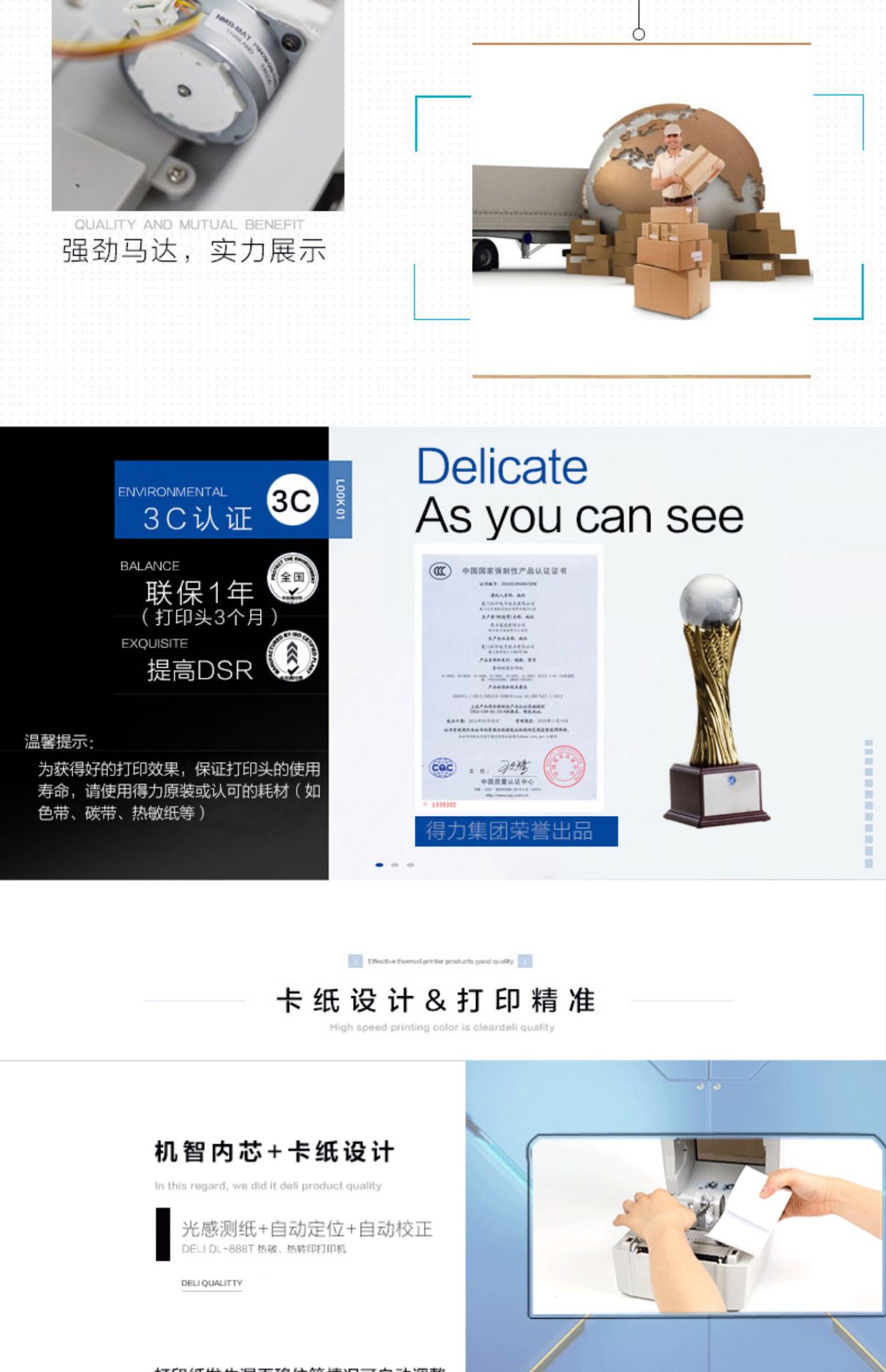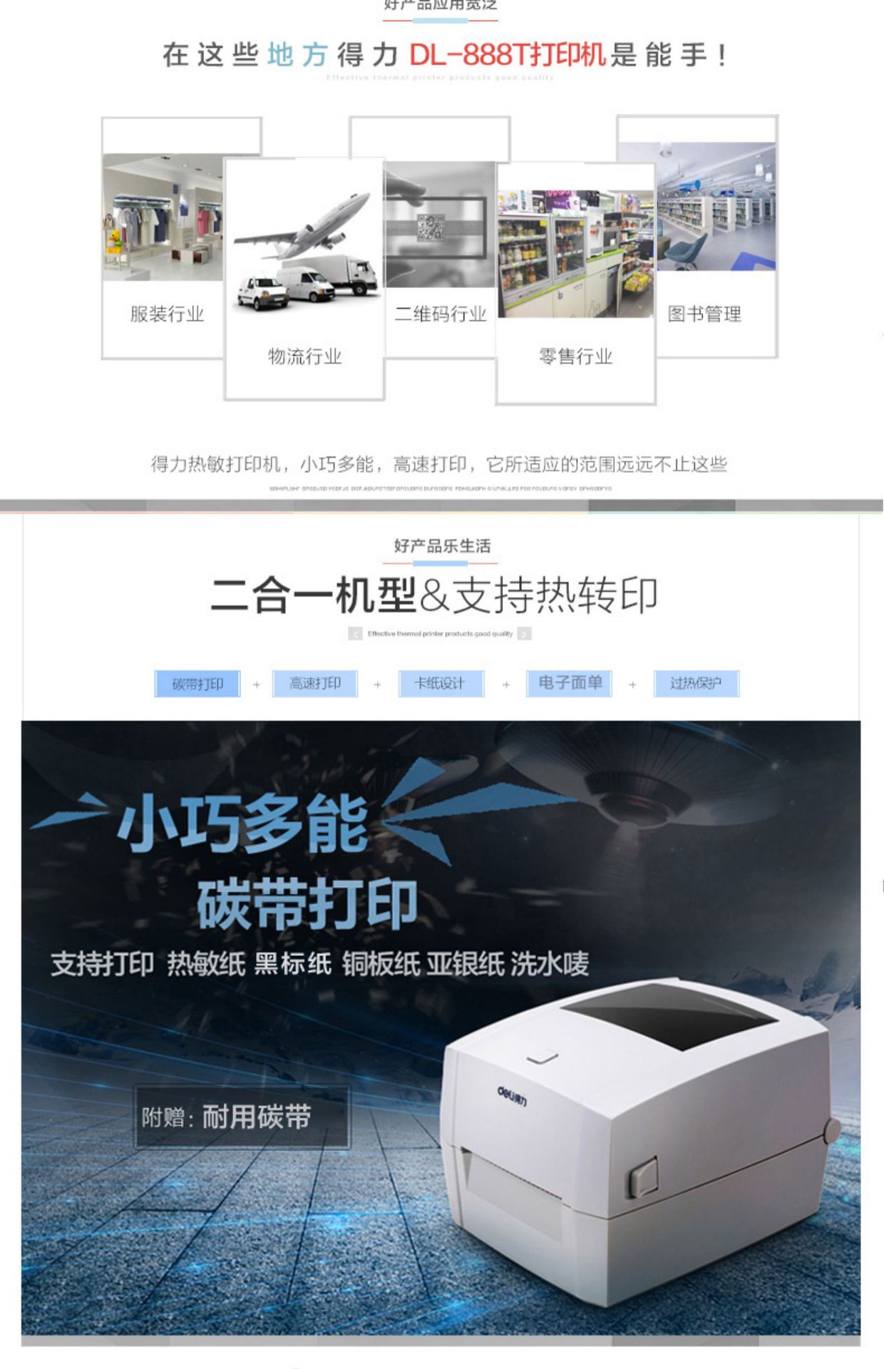 델리 DL-888T 바코드 프린터 자체 접착 구리 라벨 종이 eyoubao 국제 물류 전자 표면
