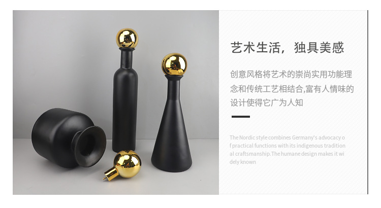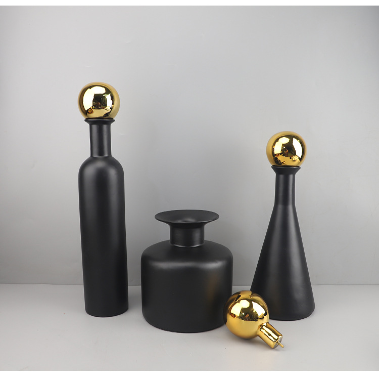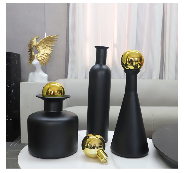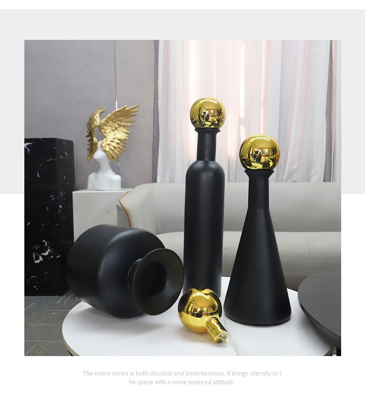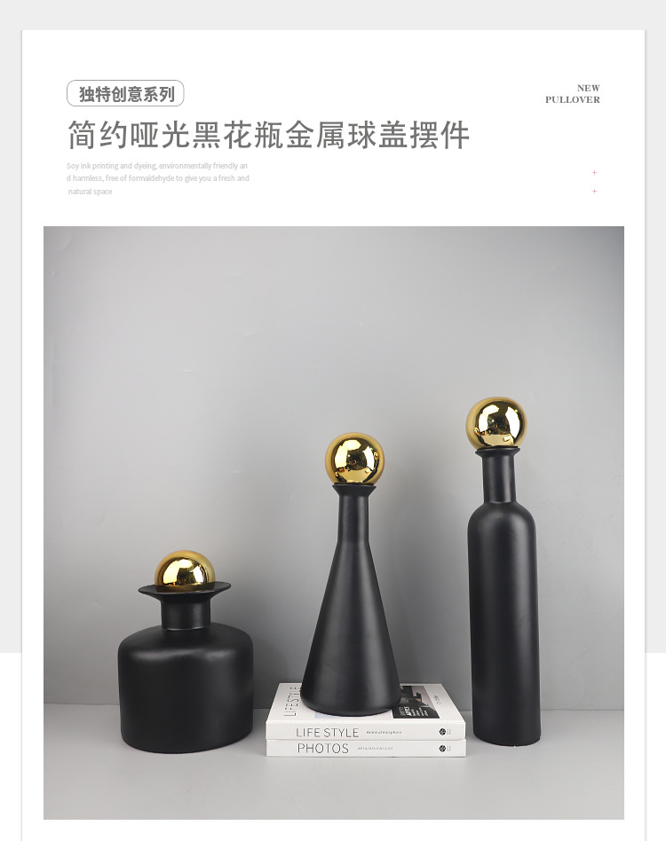 북유럽 간단한 매트 블랙 꽃병 금속 공 커버 장식 거실 침실 복도 호텔 연구 가정 장식