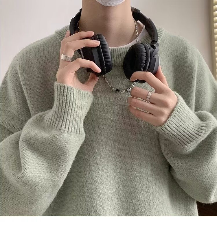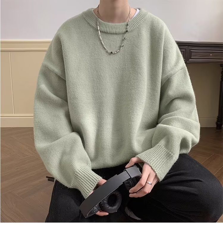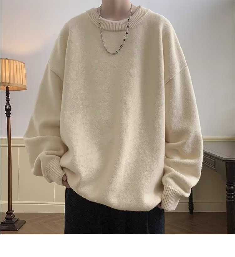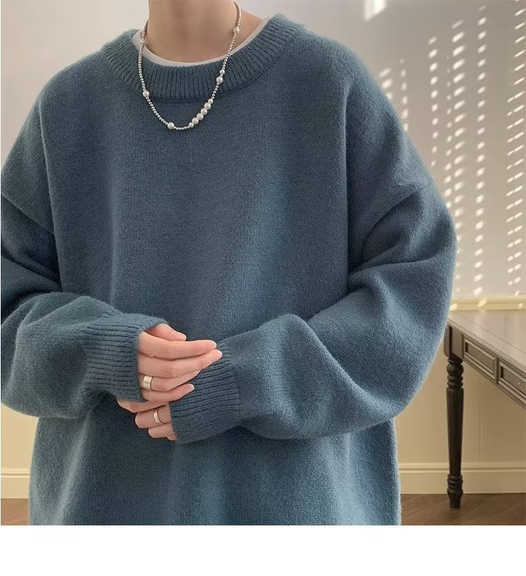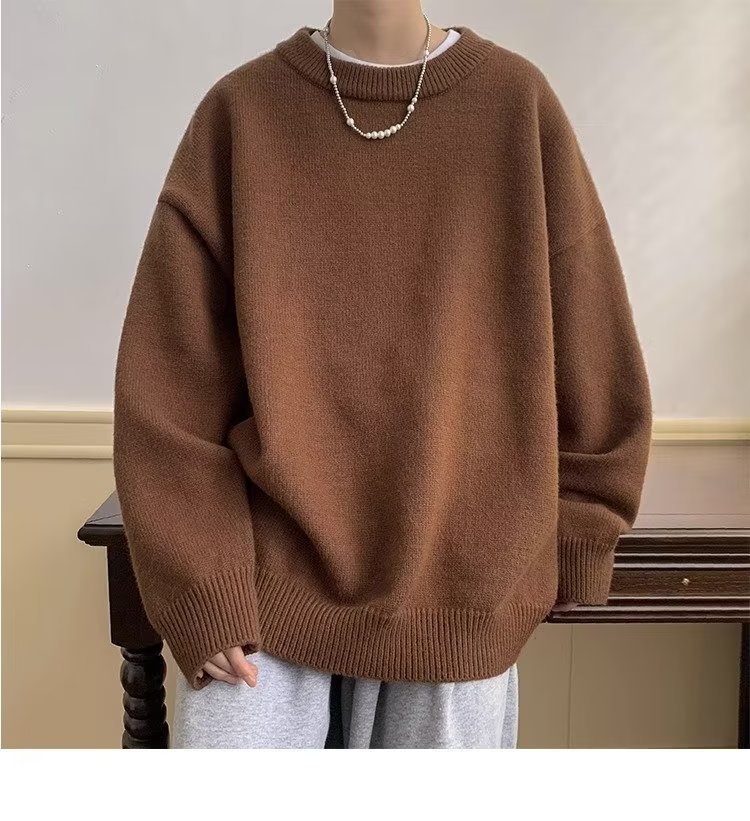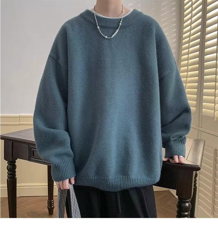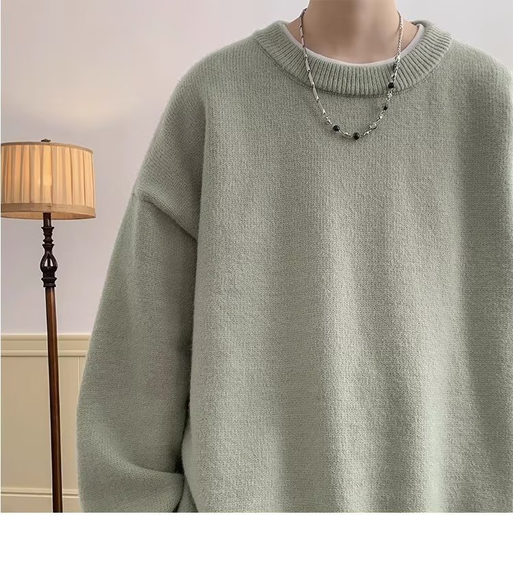 일본식 복고풍 기모 두꺼운 바닥 스웨터 트렌디 한 브랜드 스웨터 남성 가을과 겨울 느슨한 게으른 스타일 하이 엔드