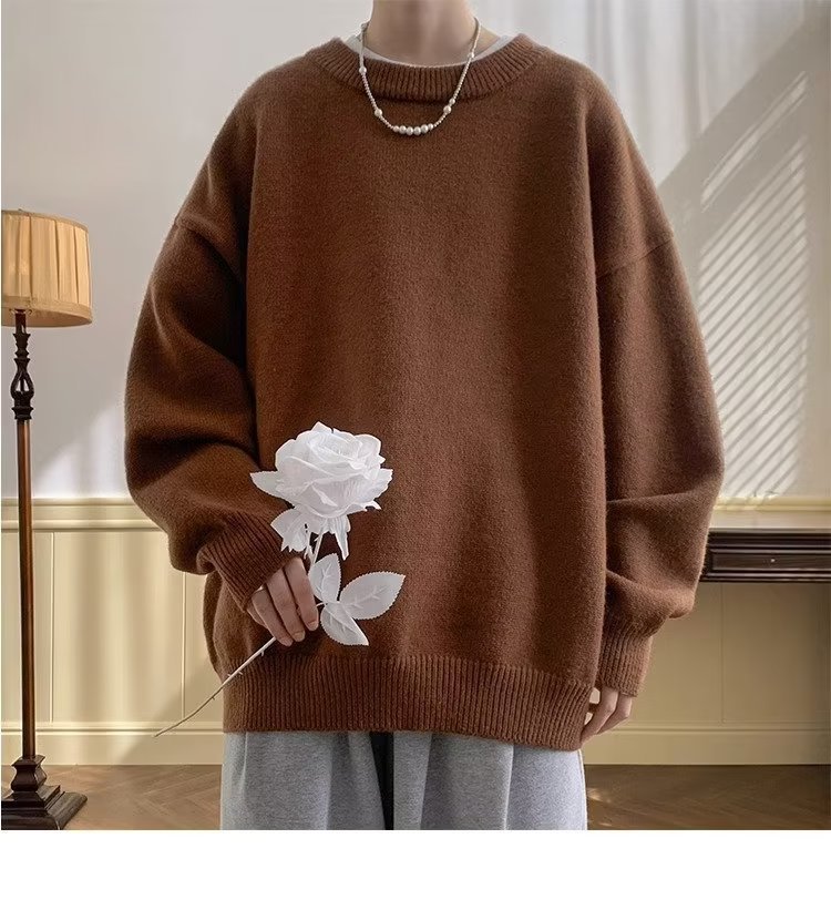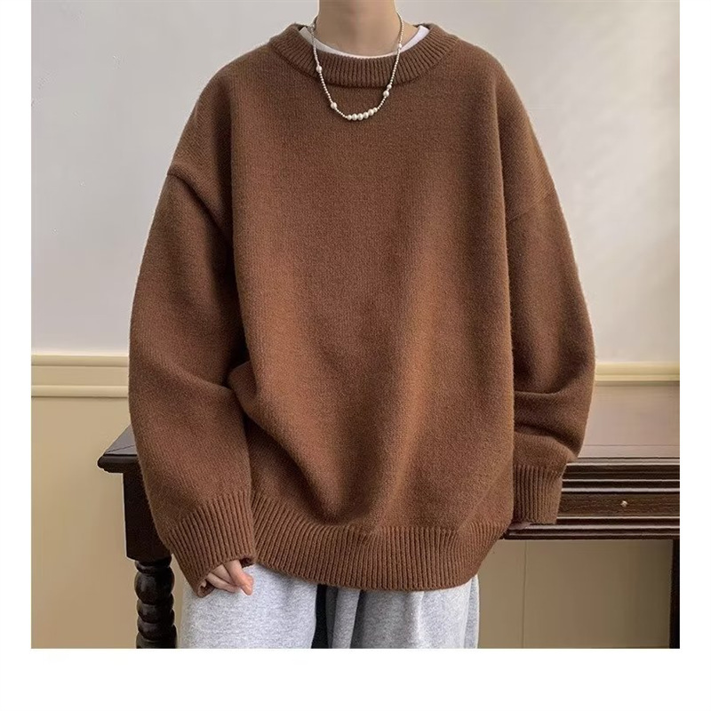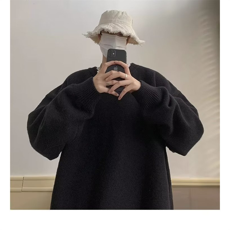 일본식 복고풍 기모 두꺼운 바닥 스웨터 트렌디 한 브랜드 스웨터 남성 가을과 겨울 느슨한 게으른 스타일 하이 엔드스토어 가기
