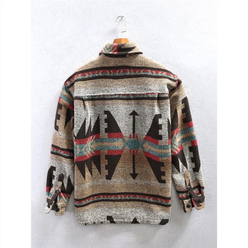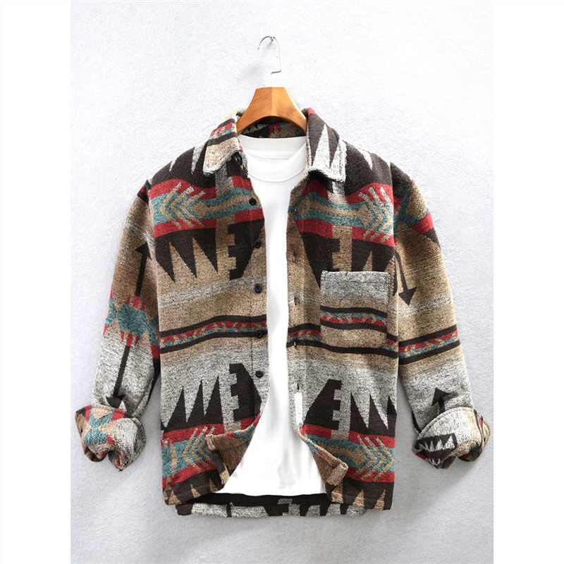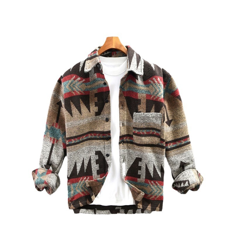 Ameikaji 미국식 인쇄 칫솔질 긴팔 모직 셔츠 남성용 겨울 느슨하게 두꺼운 따뜻한 꽃 셔츠 재킷