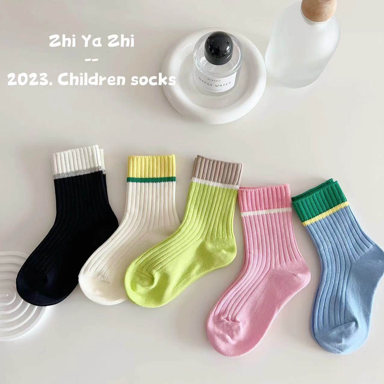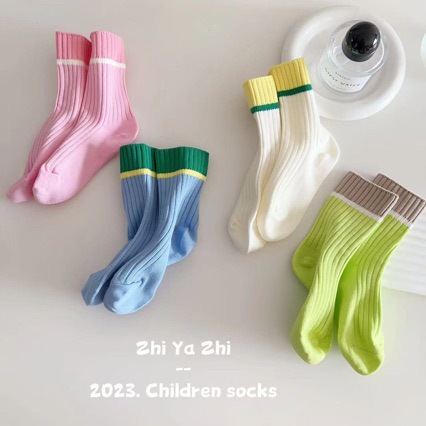 도파민 컬러 어린이 양말 더블 바늘 가을과 겨울 새로운 높은 허리 한국 스타일 어린이 양말 대비 색상 안티-필링 비 페이딩