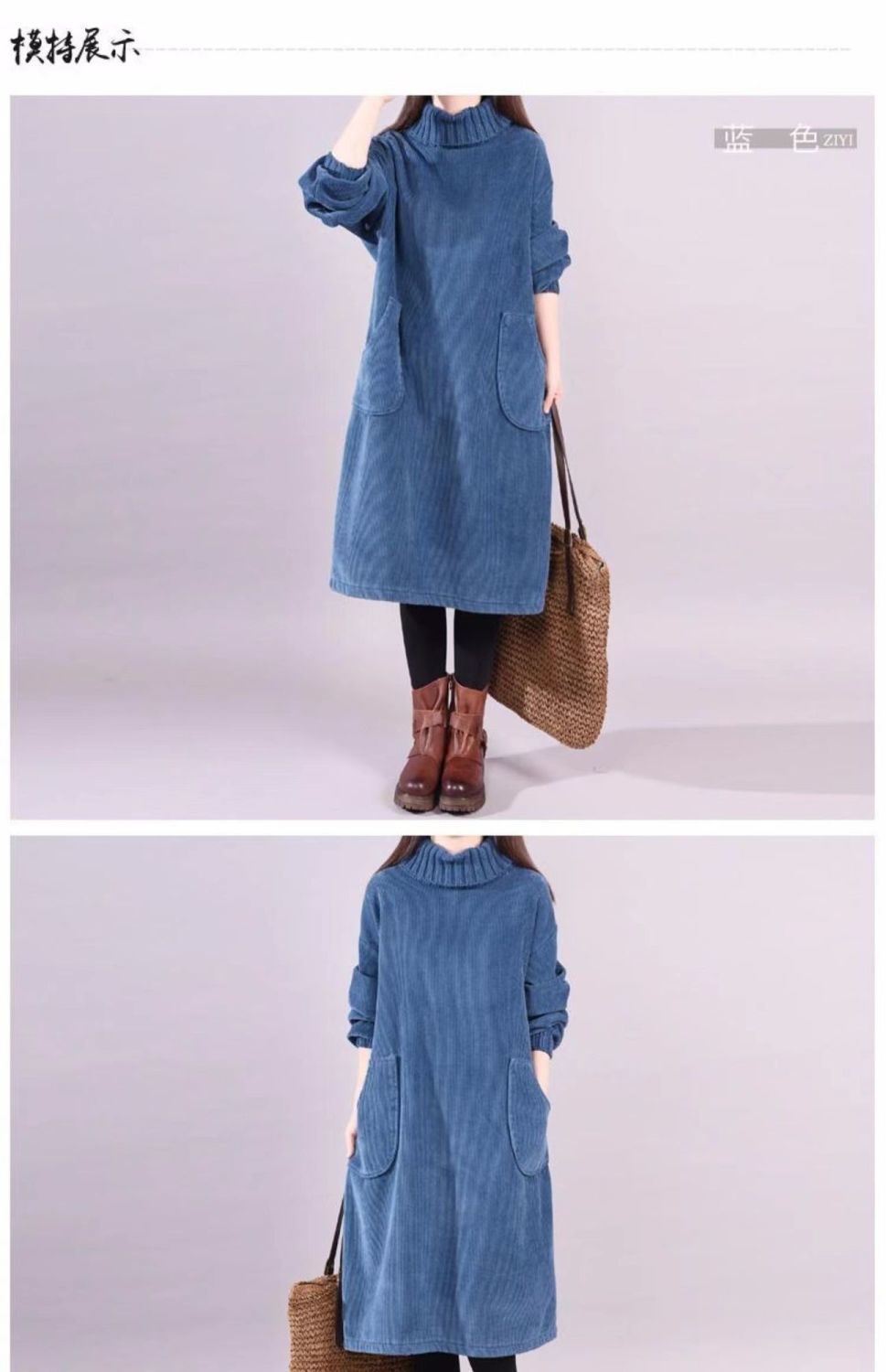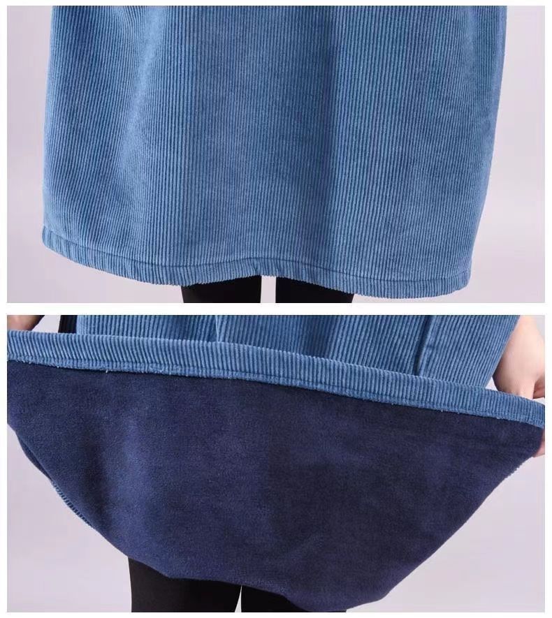 초대형 300kg 높은 칼라 벨벳 플러스 벨벳 패딩 긴 코듀로이 원피스스토어 가기